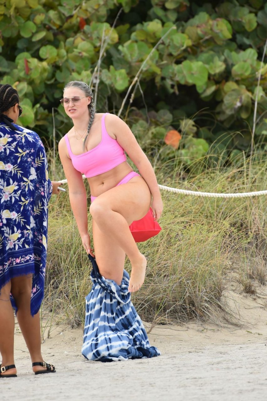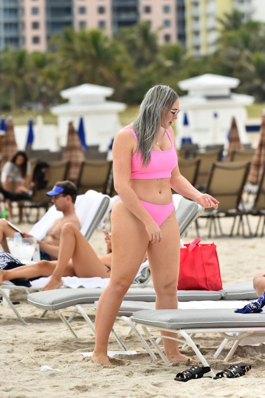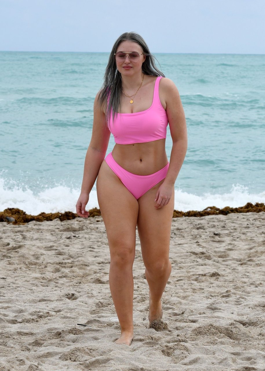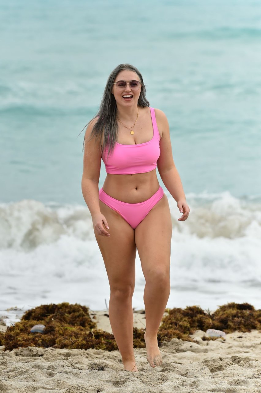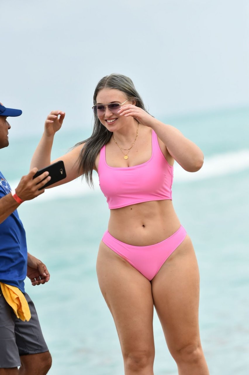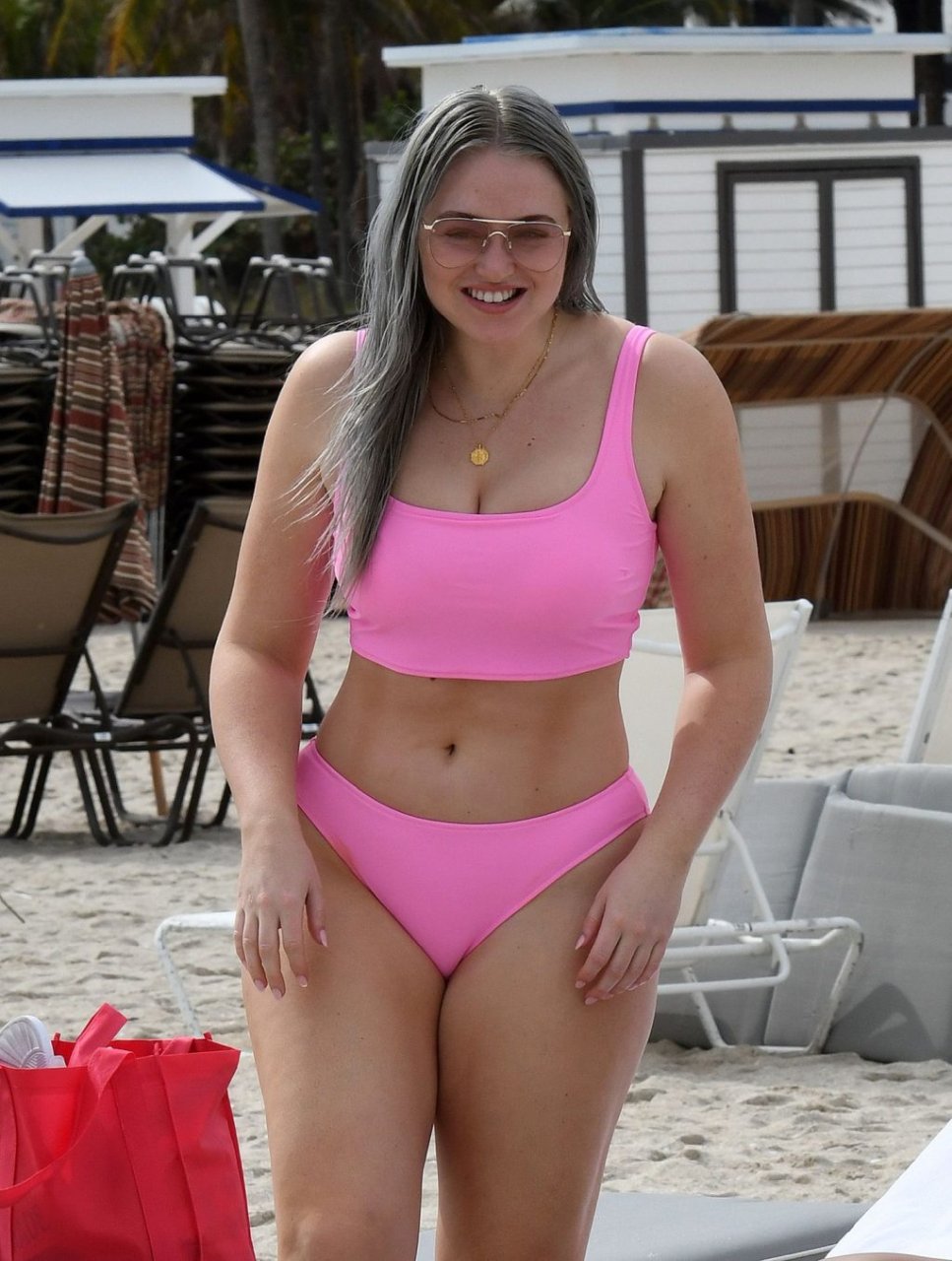 Mostrando sus curvas con un bikini rosa bebé de Aerie y su nuevo cabello plateado, Iskra intentó comer una galleta en la playa, sin saber que enfrentaría la furia de una hambrienta bandada de gaviotas. Afortunadamente, la modelo la comió rápidamente y pudo reírse de ello y disfrutar el resto de su día en la playa.