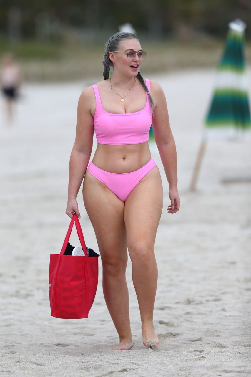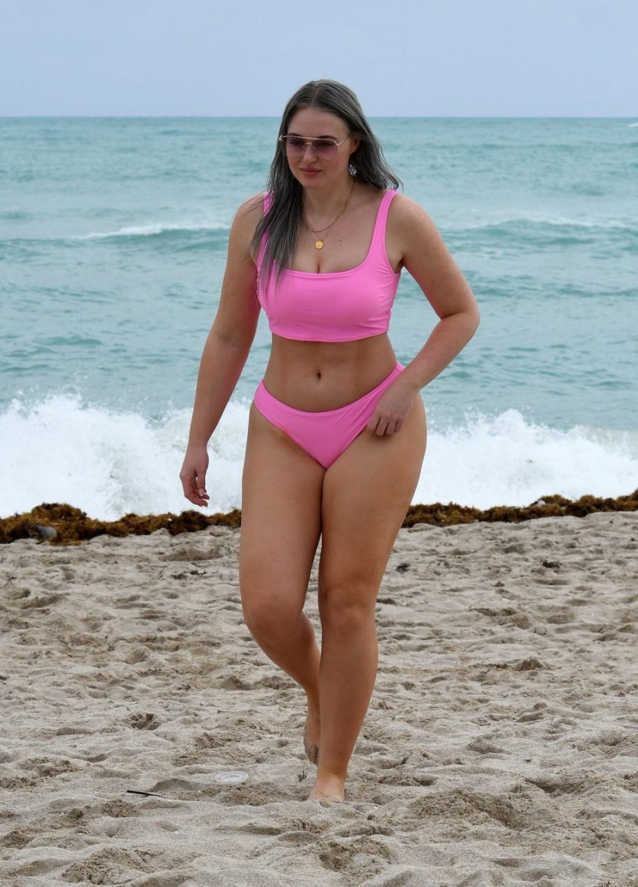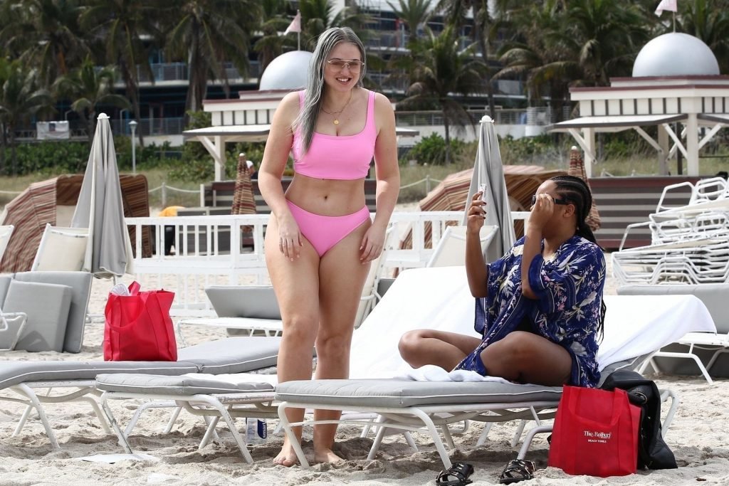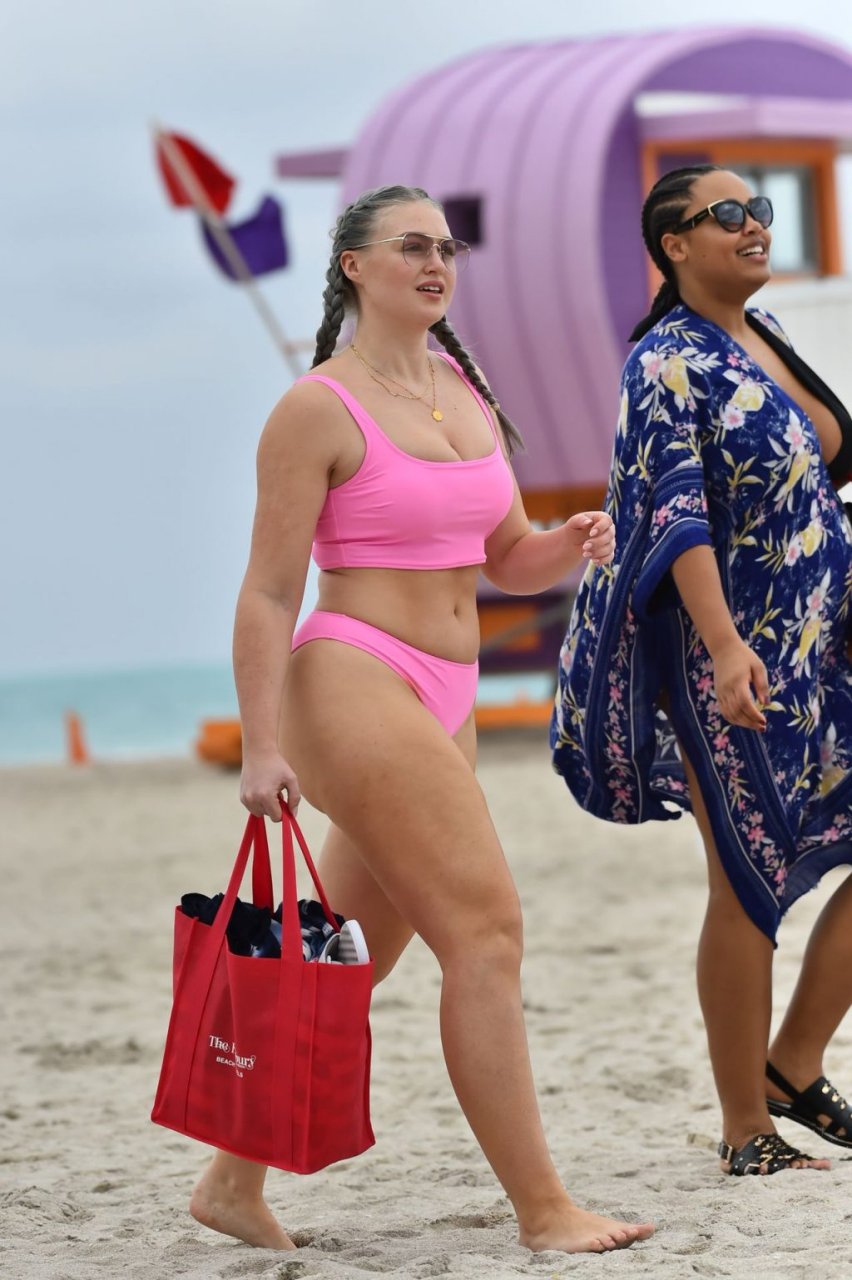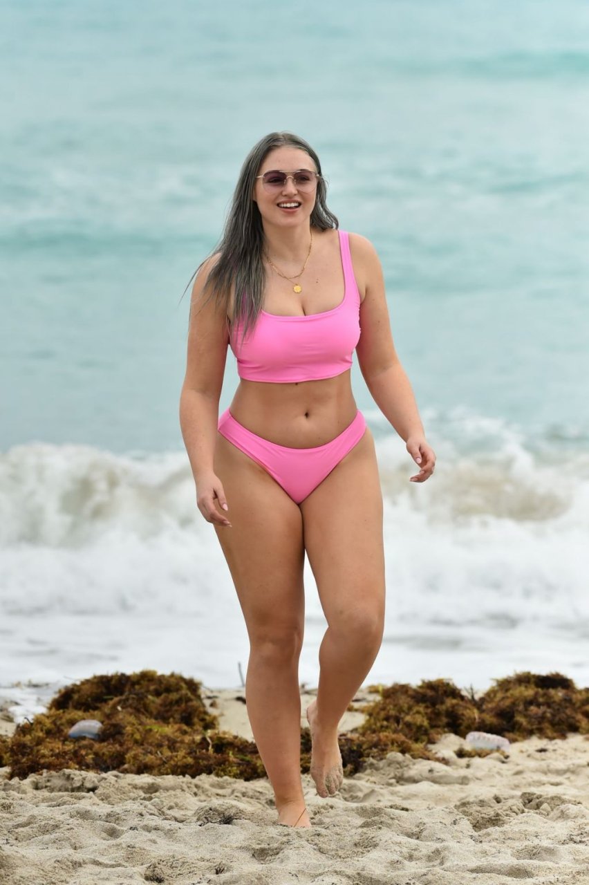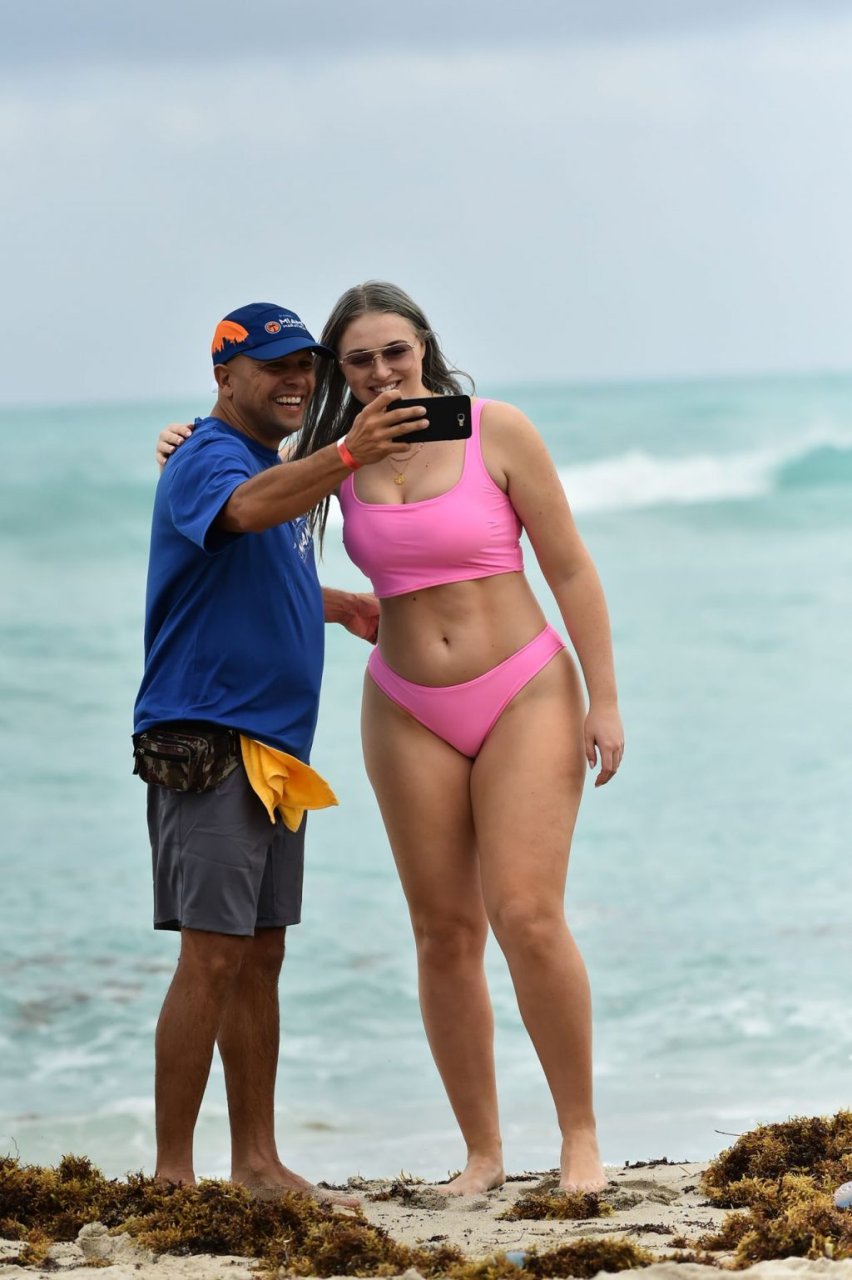 Mostrando sus curvas con un bikini rosa bebé de Aerie y su nuevo cabello plateado, Iskra intentó comer una galleta en la playa, sin saber que enfrentaría la furia de una hambrienta bandada de gaviotas. Afortunadamente, la modelo la comió rápidamente y pudo reírse de ello y disfrutar el resto de su día en la playa.