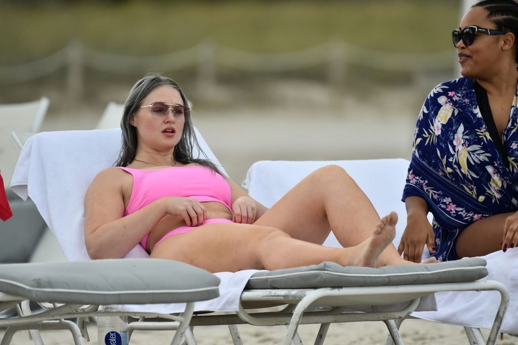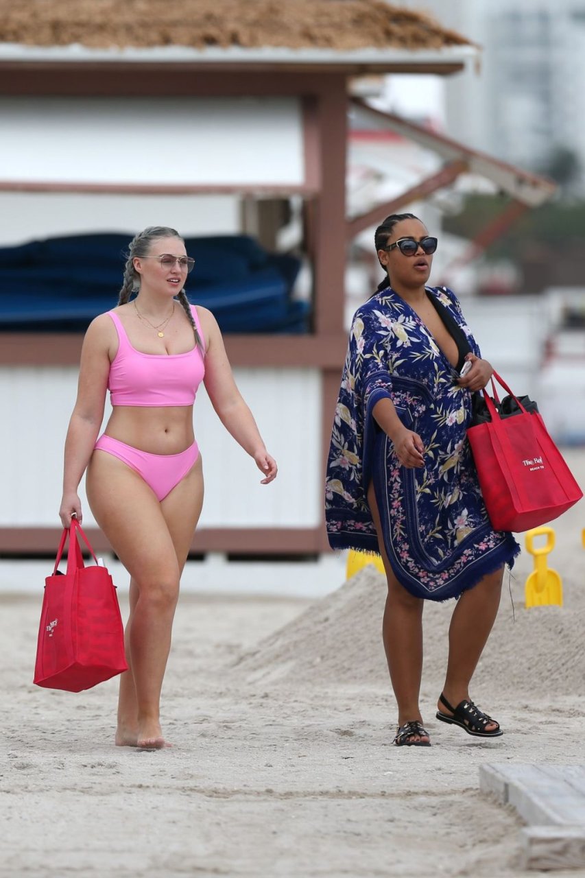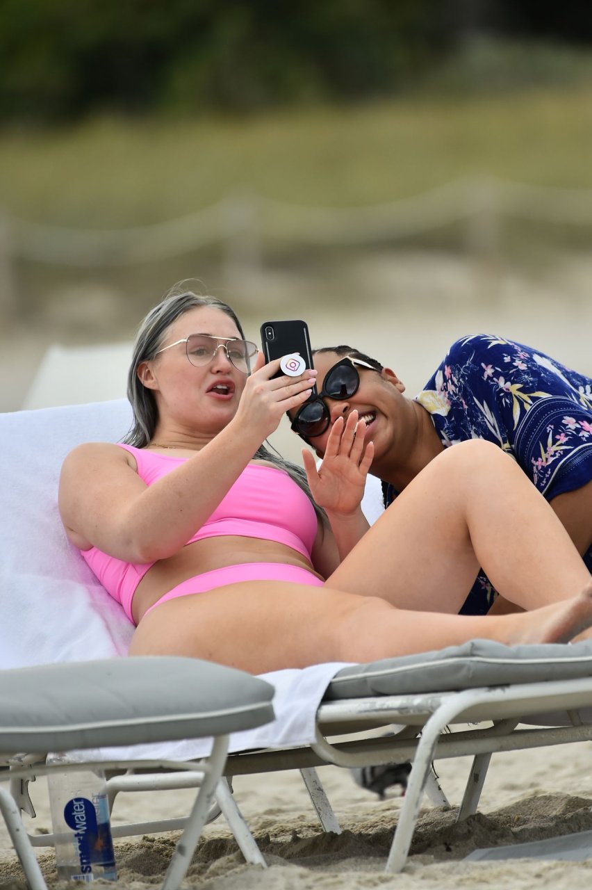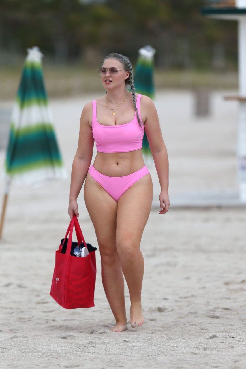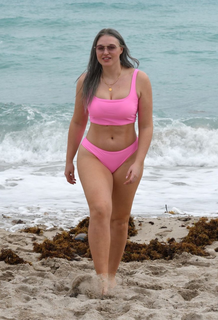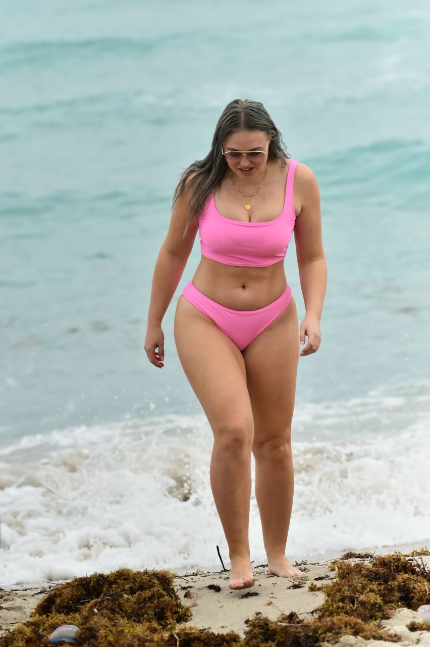 Mostrando sus curvas con un bikini rosa bebé de Aerie y su nuevo cabello plateado, Iskra intentó comer una galleta en la playa, sin saber que enfrentaría la furia de una hambrienta bandada de gaviotas. Afortunadamente, la modelo la comió rápidamente y pudo reírse de ello y disfrutar el resto de su día en la playa.