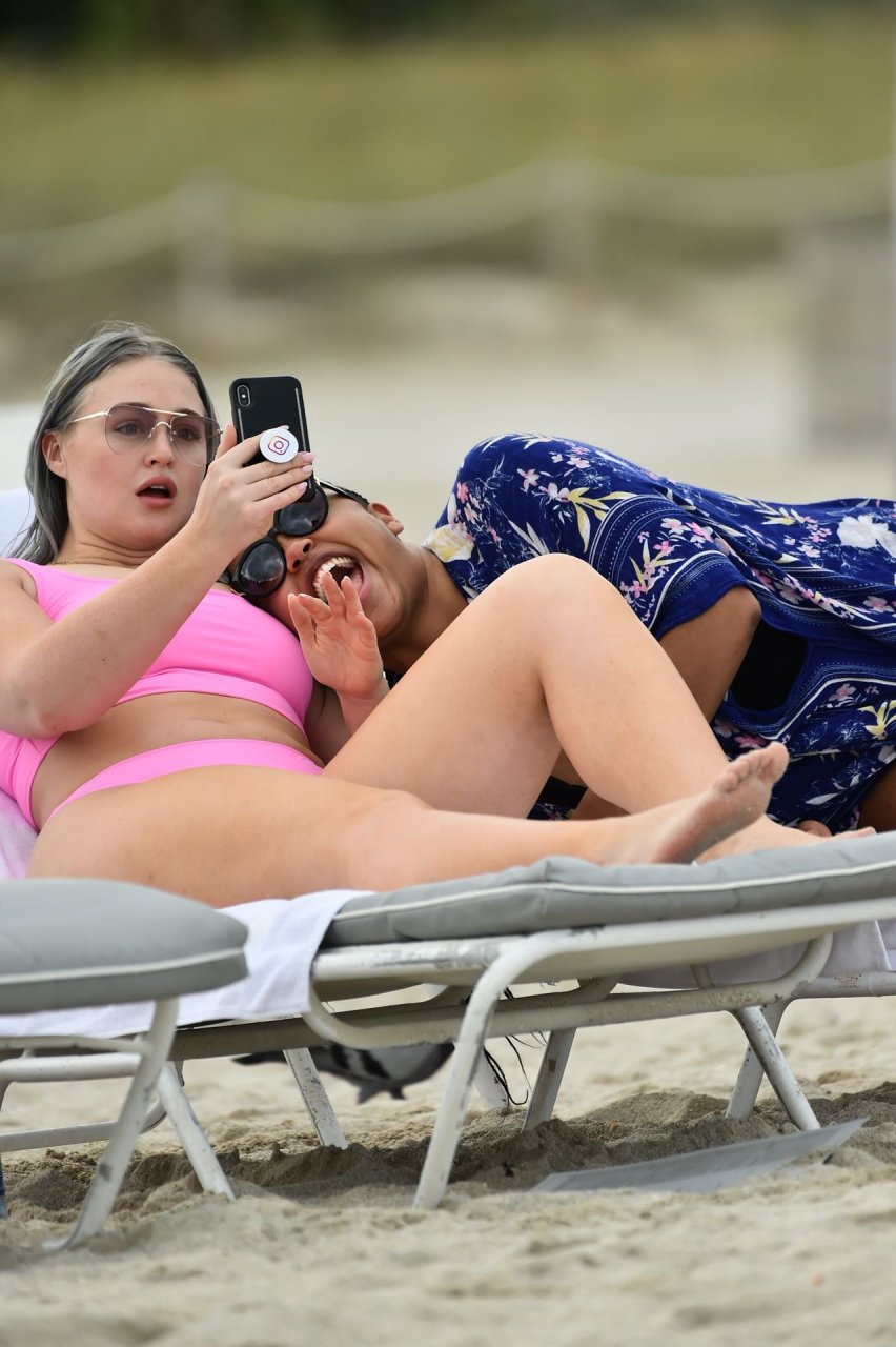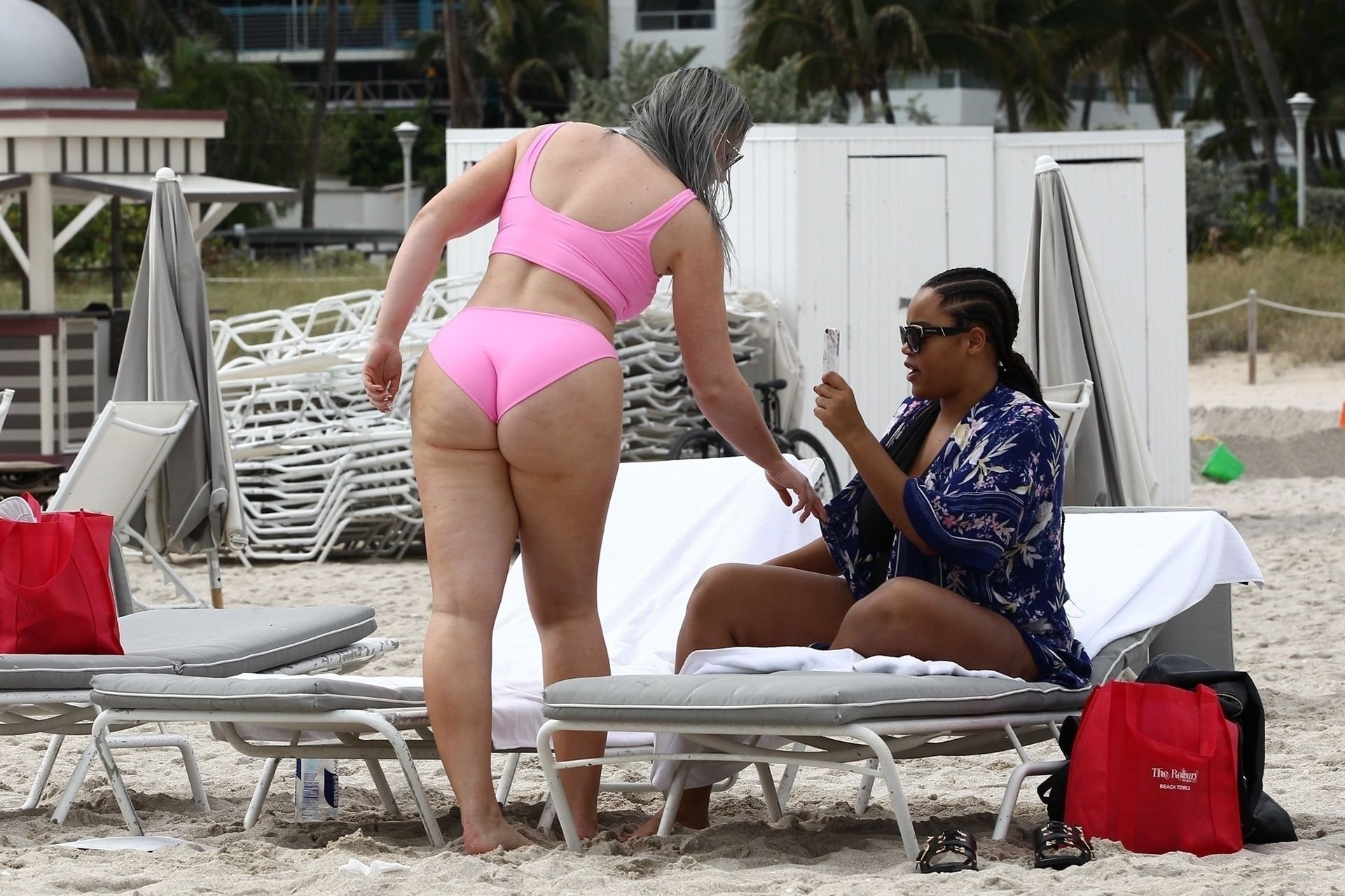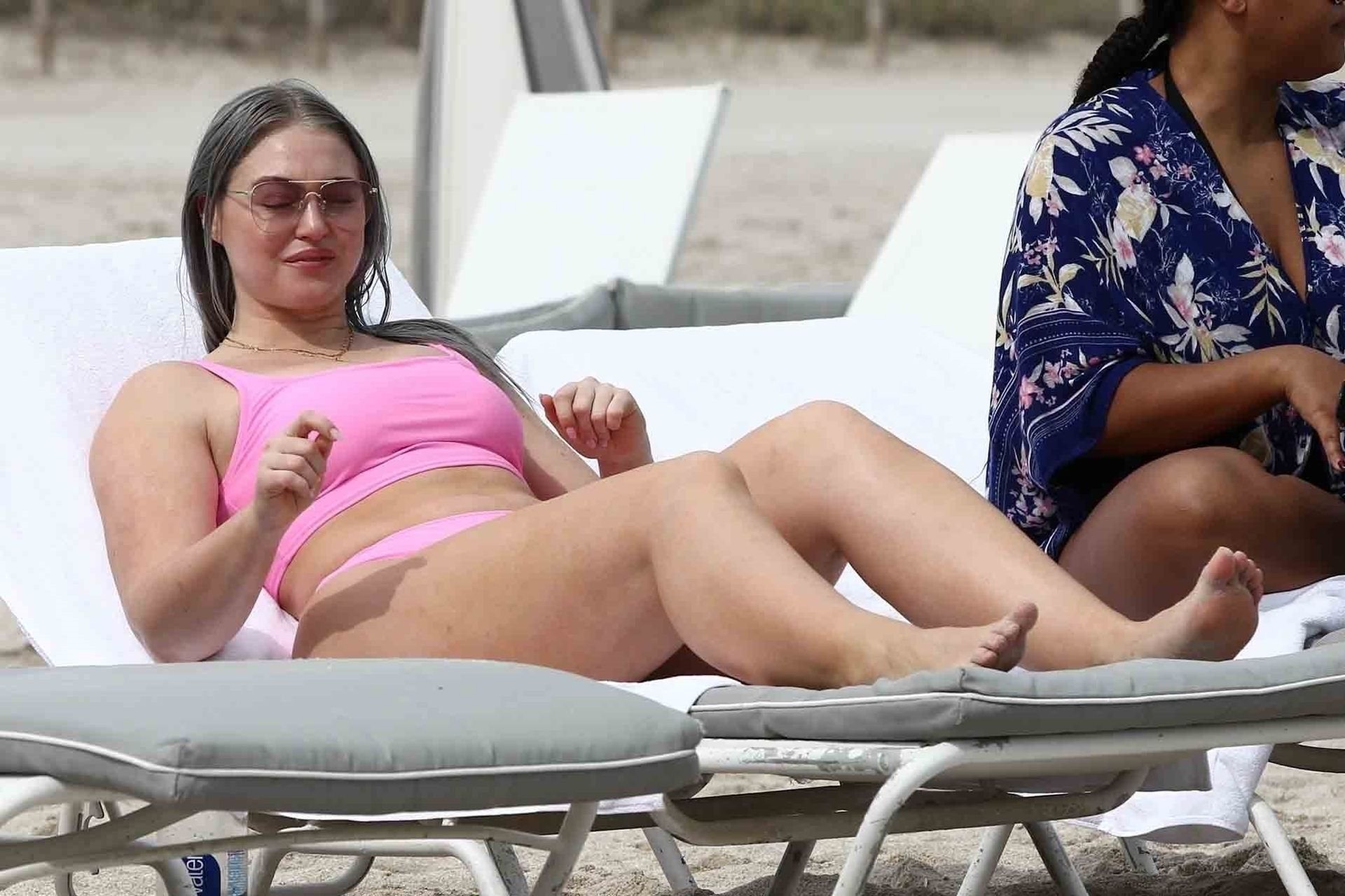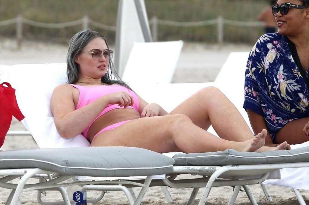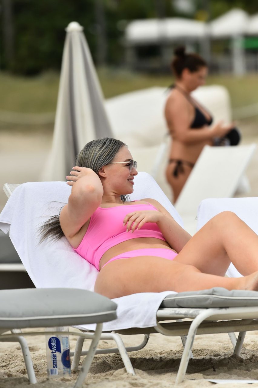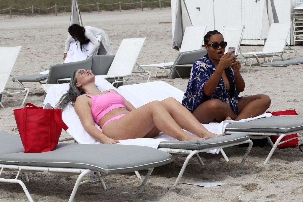 Mostrando sus curvas con un bikini rosa bebé de Aerie y su nuevo cabello plateado, Iskra intentó comer una galleta en la playa, sin saber que enfrentaría la furia de una hambrienta bandada de gaviotas. Afortunadamente, la modelo la comió rápidamente y pudo reírse de ello y disfrutar el resto de su día en la playa.