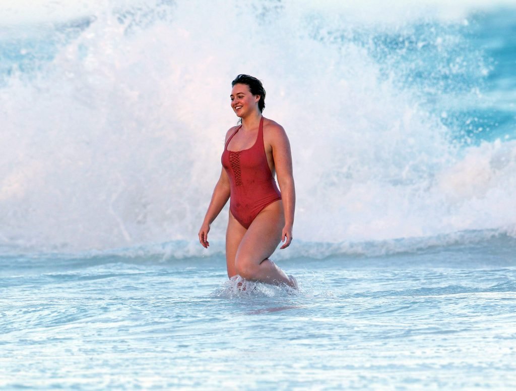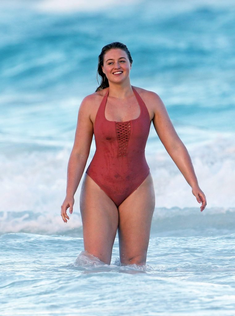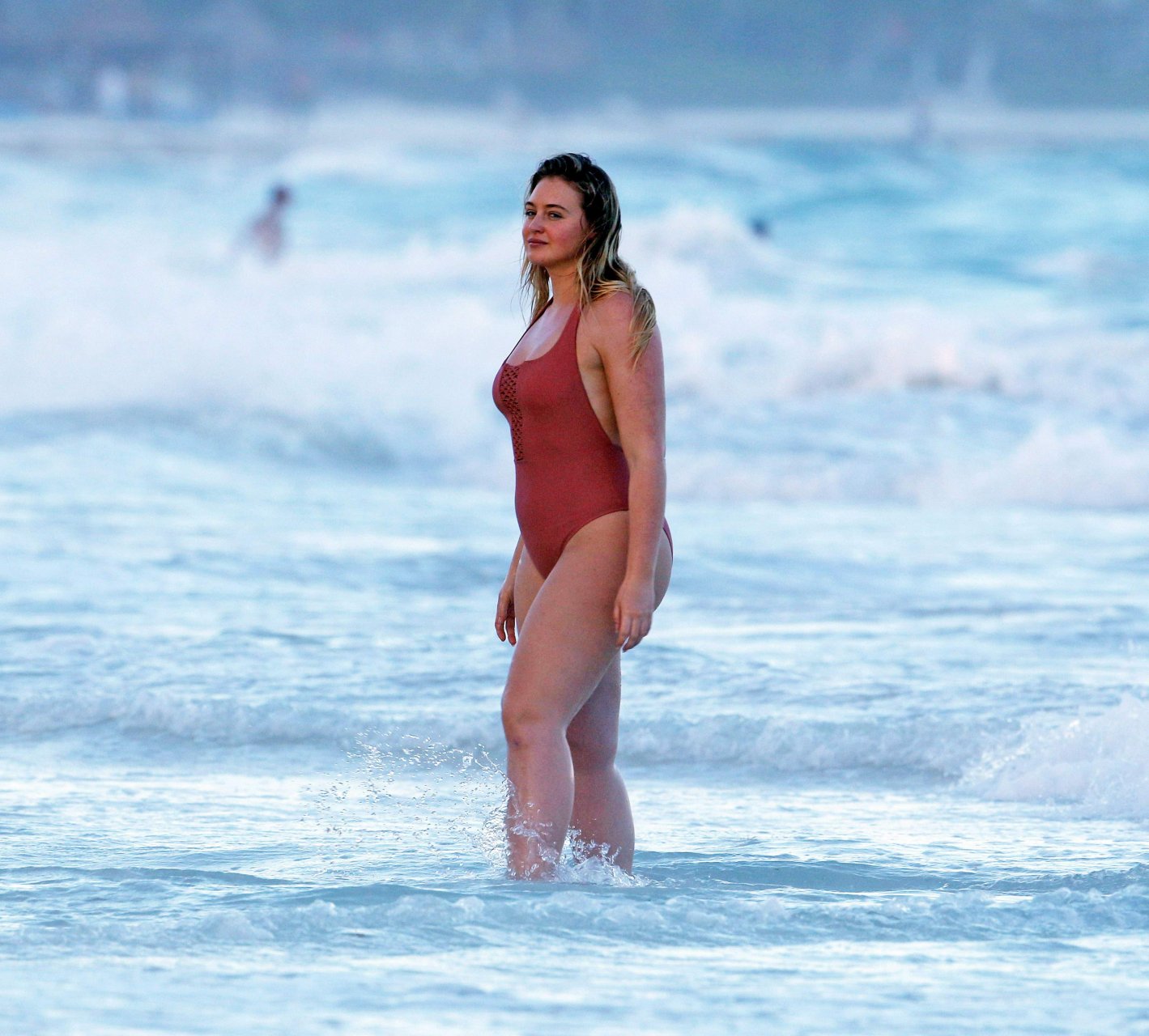 Model Iskra Lawrence lleva un traje de baño mientras disfruta de sus vacaciones en la playa de Tulum, 21/02/2018.