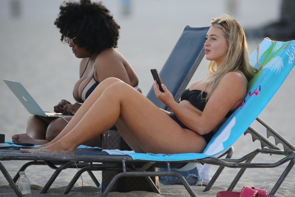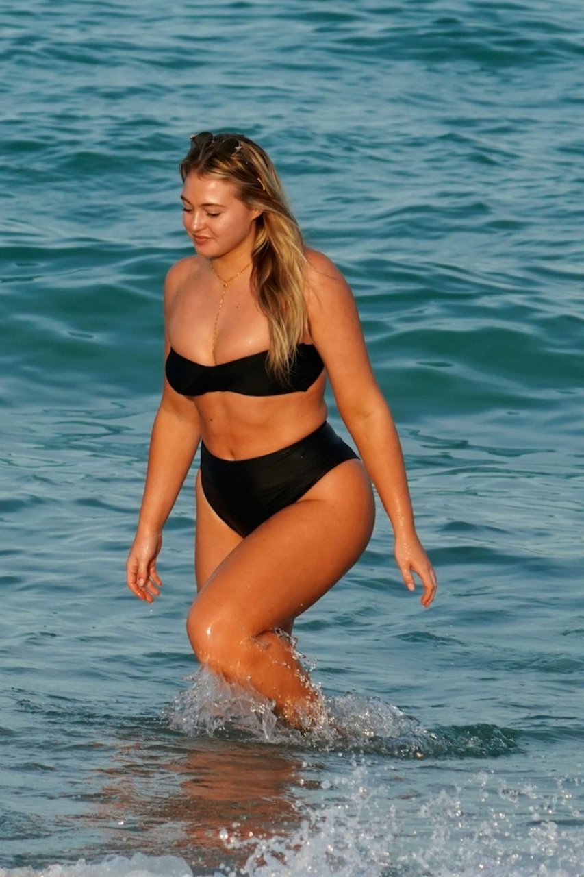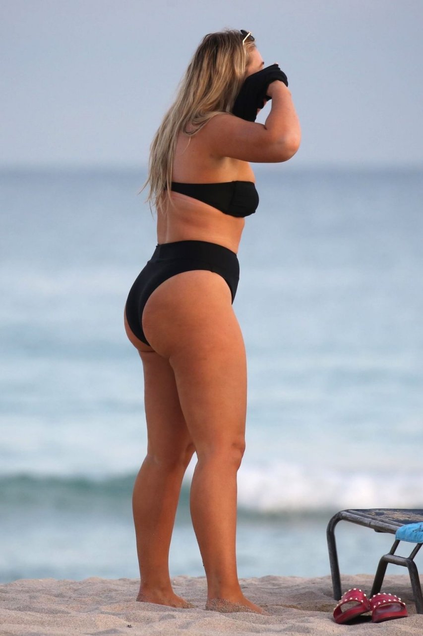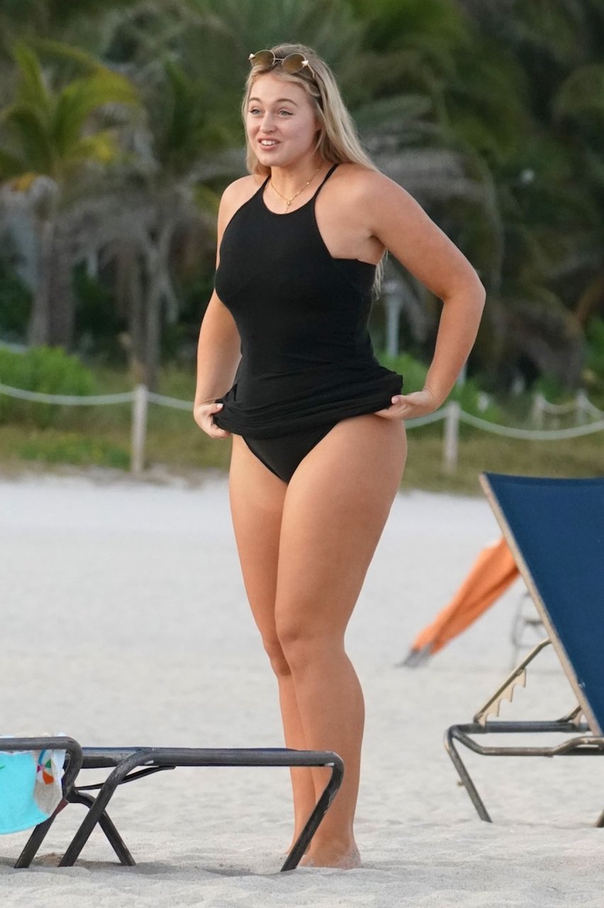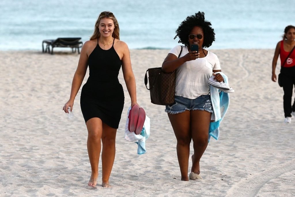 Iskra Lawrence muestra su figura mientras disfruta de otro día en la playa en Miami, 12/09/2018. La modelo de talla grande fue vista con amigos mientras se cubría después del día en la playa y se dirigía de regreso a su hotel.
