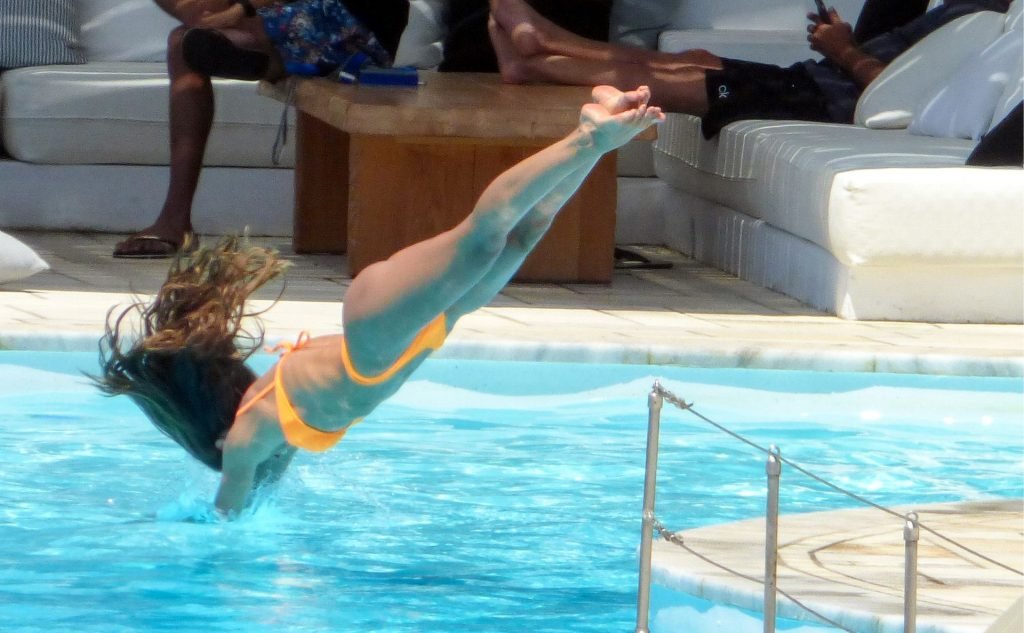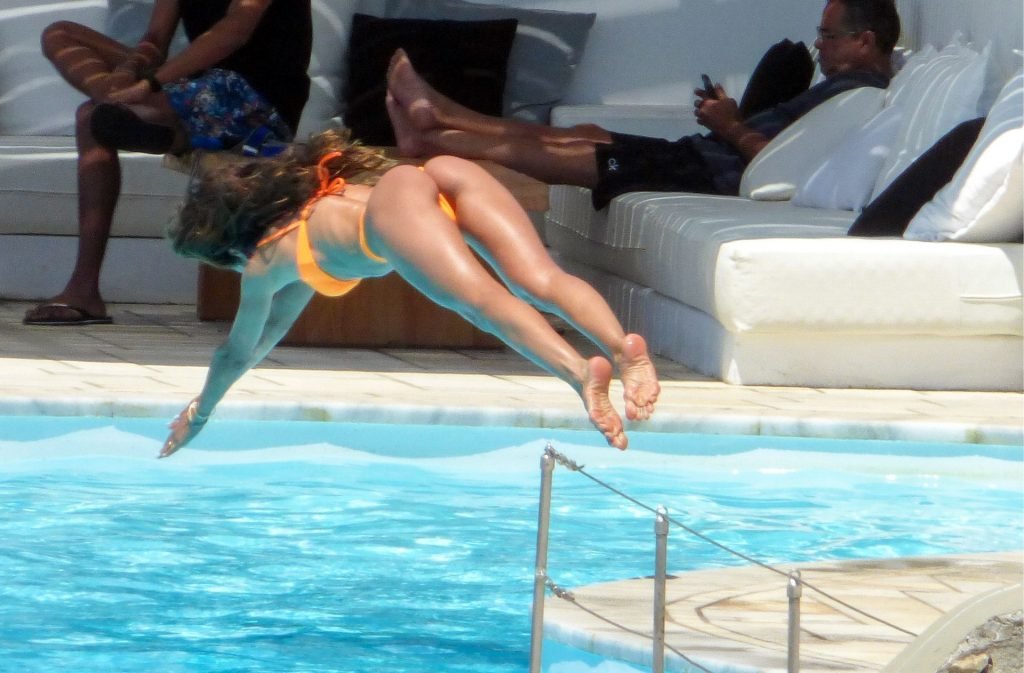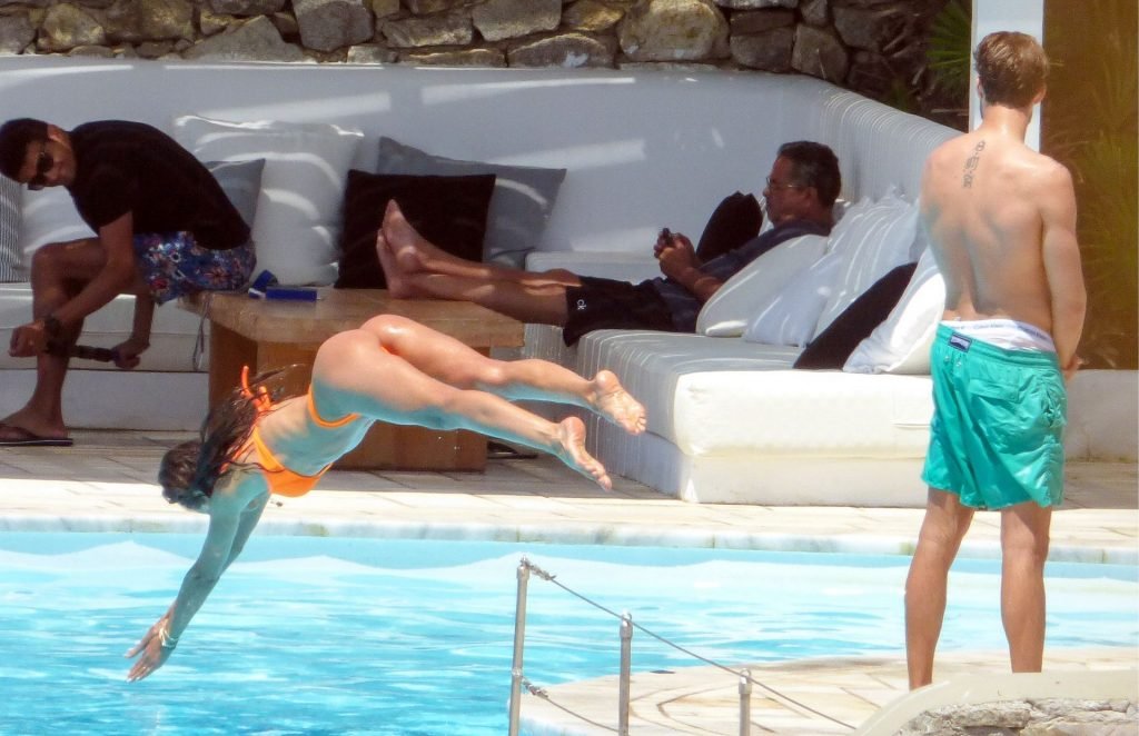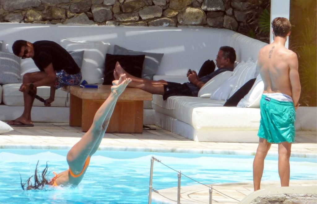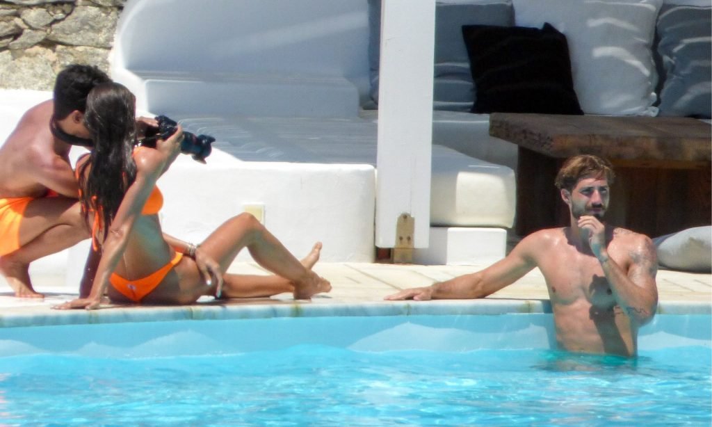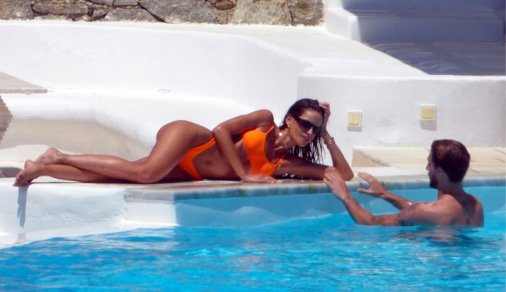 Kevin Trapp e Izabel Goulart se divierten en la piscina en la isla de Mykonos, Grecia, 29/06/2019. La estrella alemana del fútbol del PSG, Trapp, de 28 años, y su prometida supermodelo brasileña, de 34, parecían estar aprovechando al máximo sus vacaciones llenas de diversión.