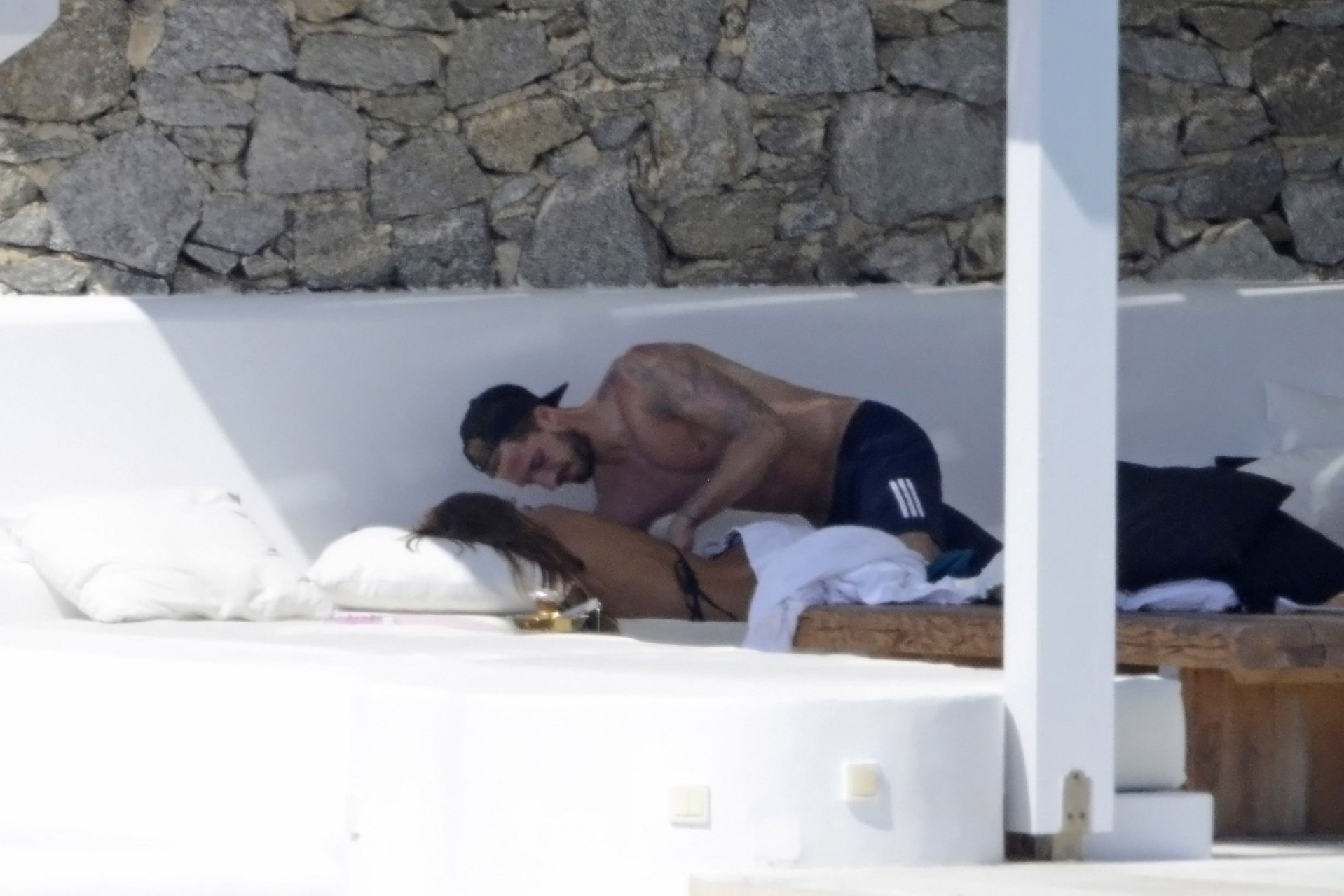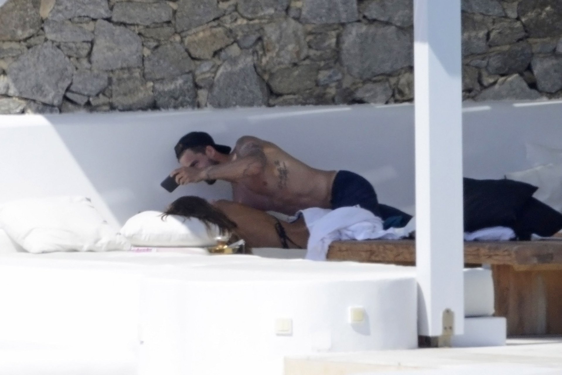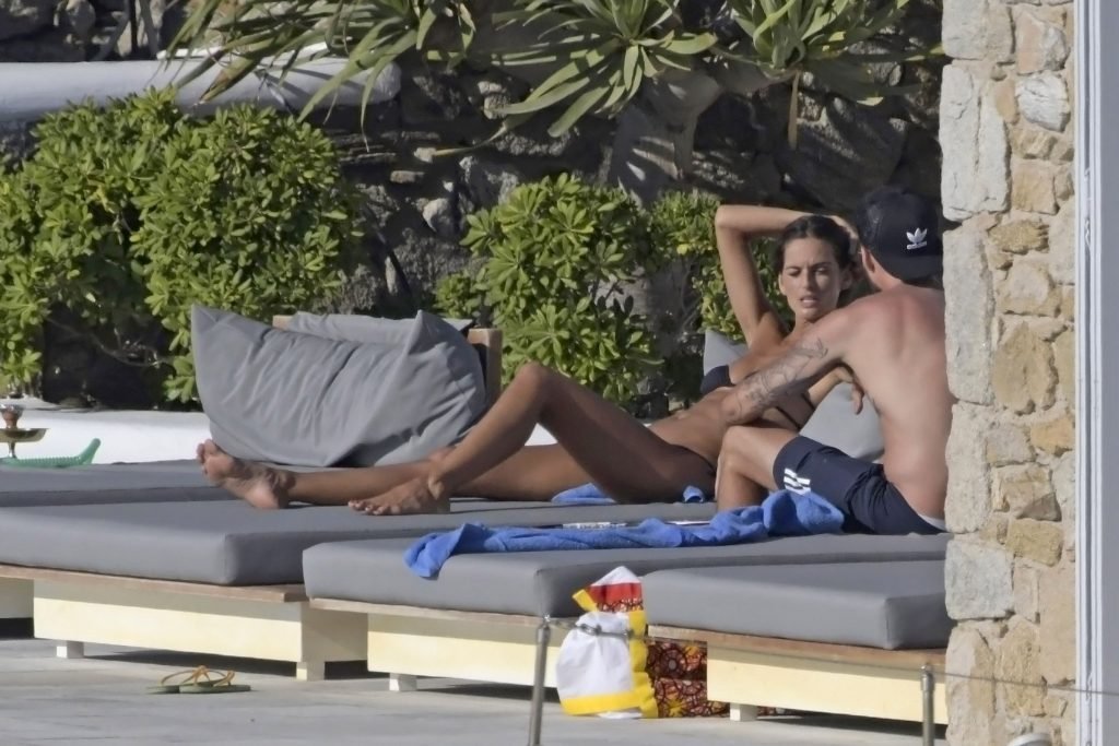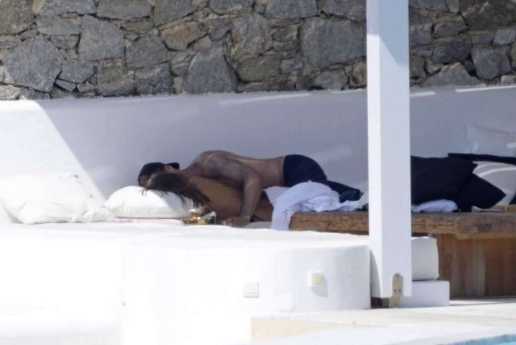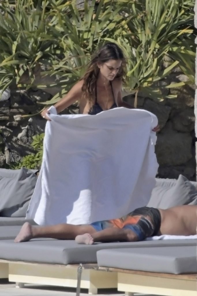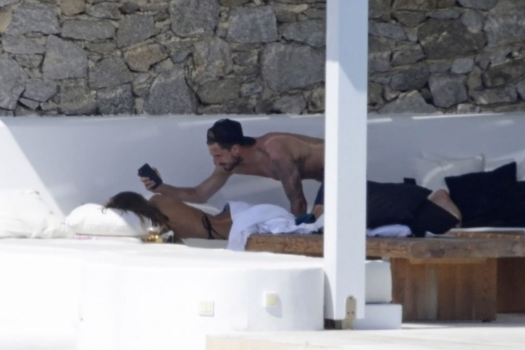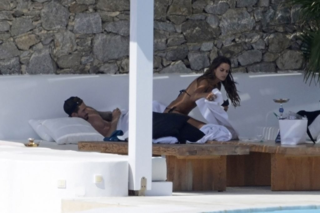 La modelo Izabel Goulart y su novio Kevin Trapp están de vacaciones de verano en la isla de Mykonos, donde alquilaron una gran villa de lujo, 11/07/2018. La pareja disfrutó de momentos románticos, e Izabel estaba grabando videos con su móvil, mostrando su cuerpo delgado con un pequeño bikini negro.