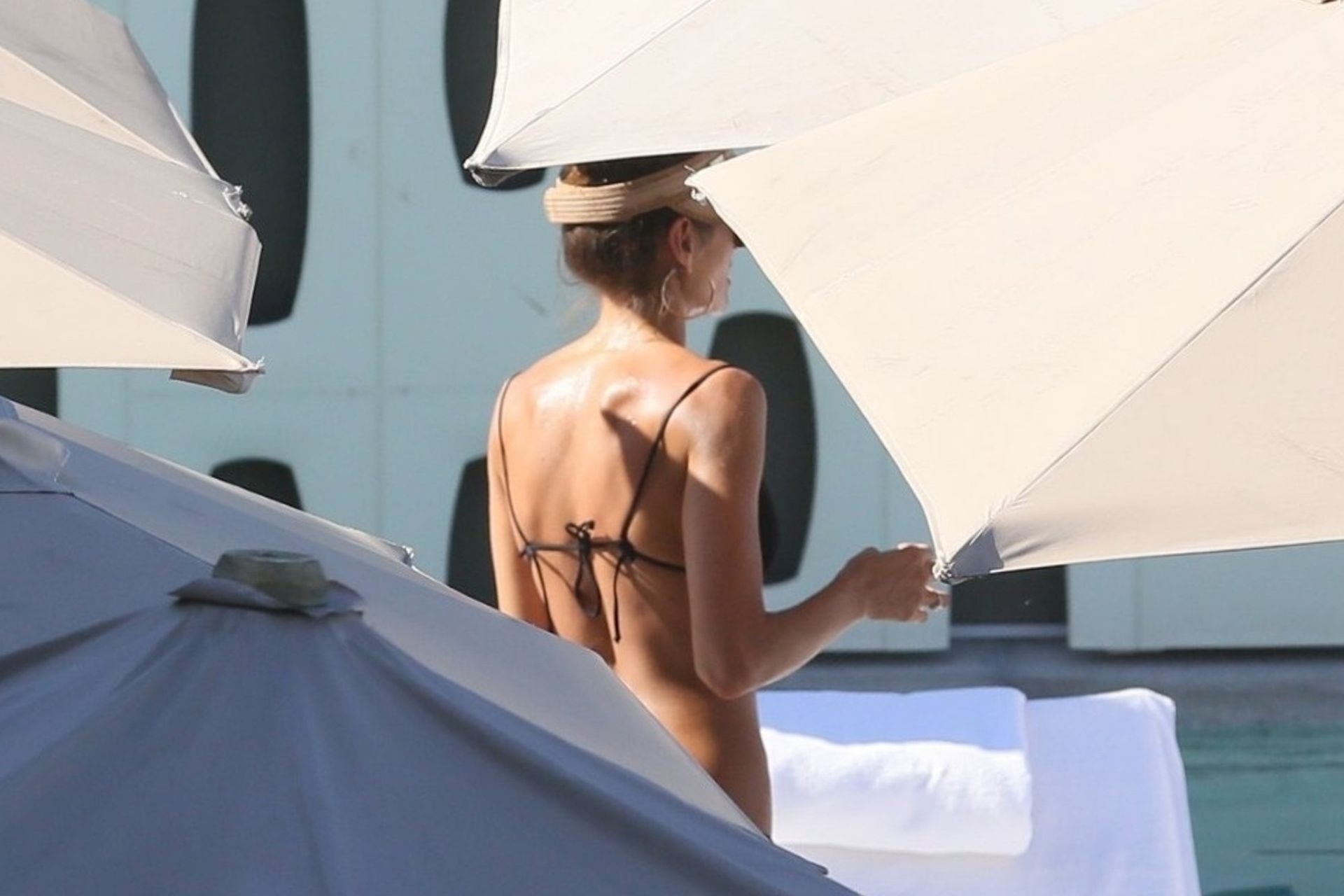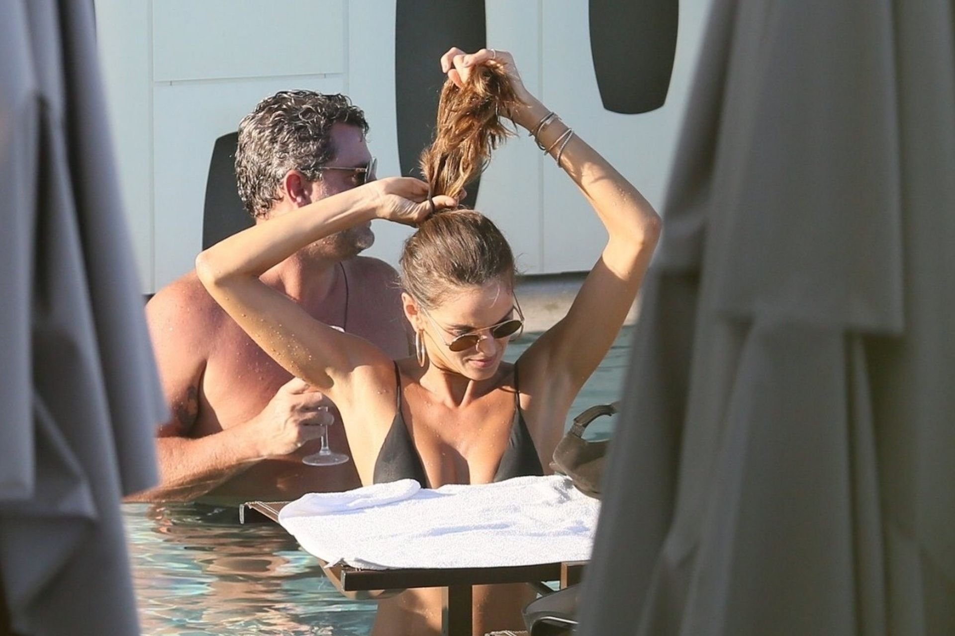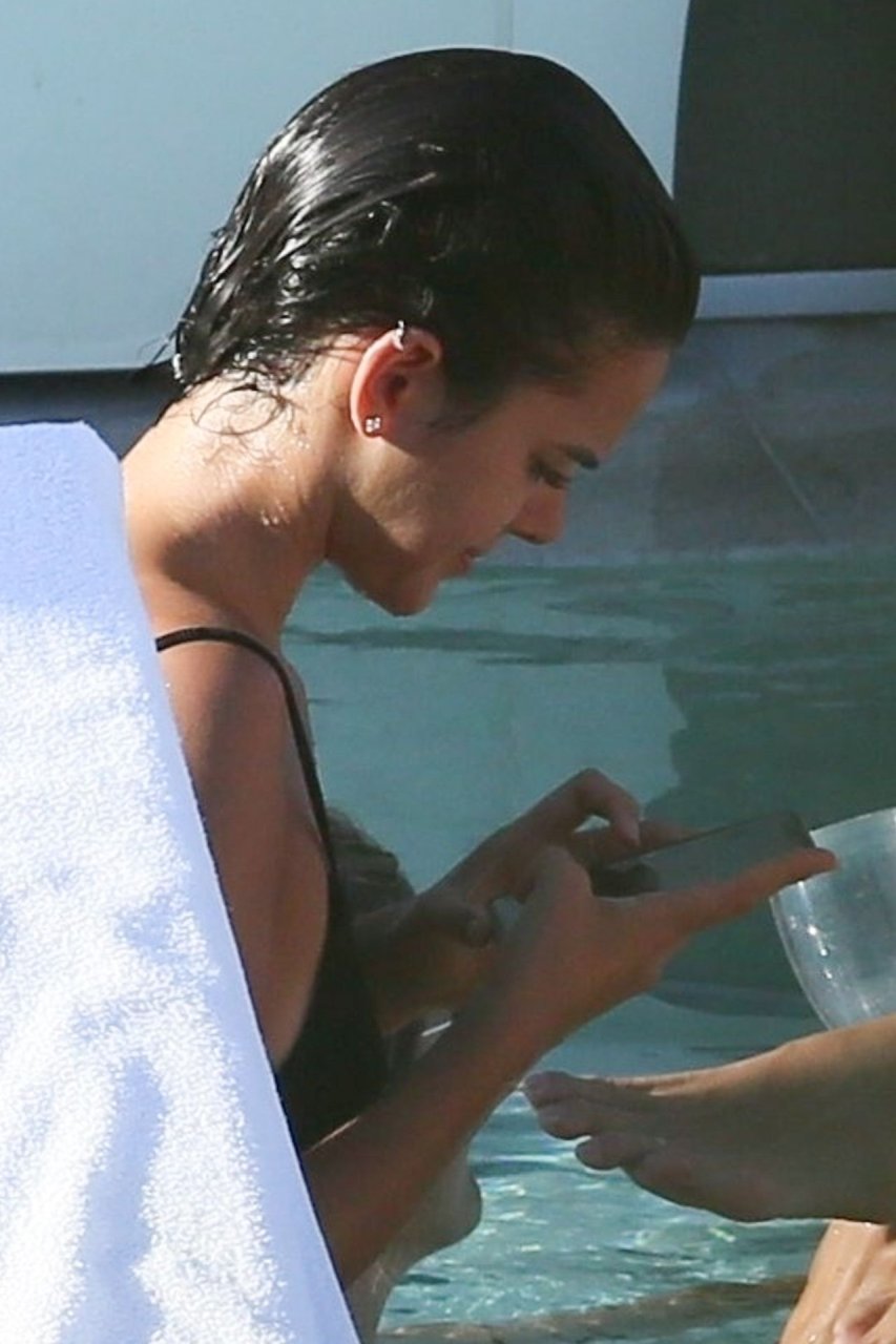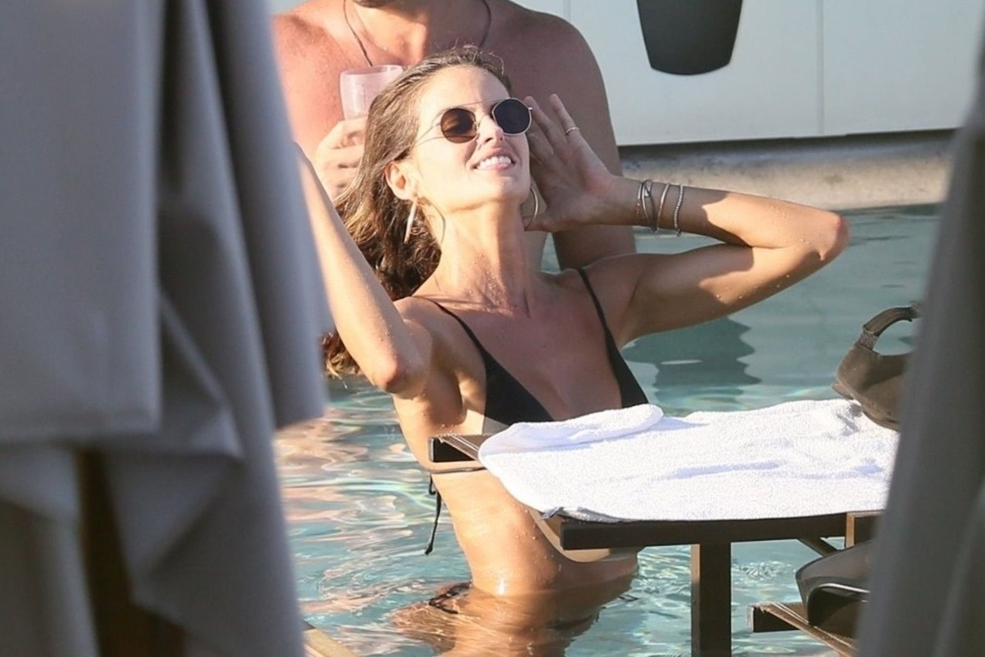 La modelo Izabel Goulart disfruta de un tiempo de descanso después de festejar durante las festividades de Carnaval en Río, 08/03/2019. La delgada y atractiva mostró su dulce y pequeña cola en la piscina con amigos.