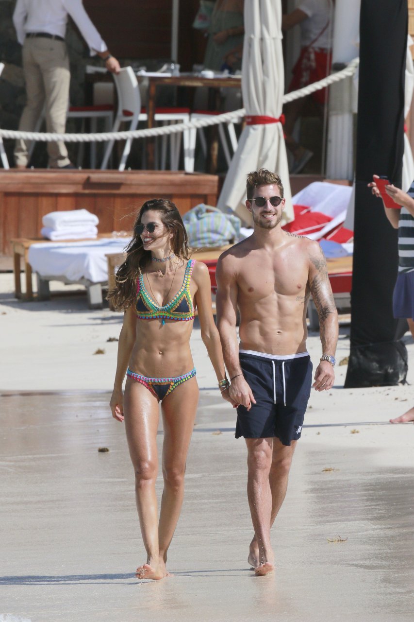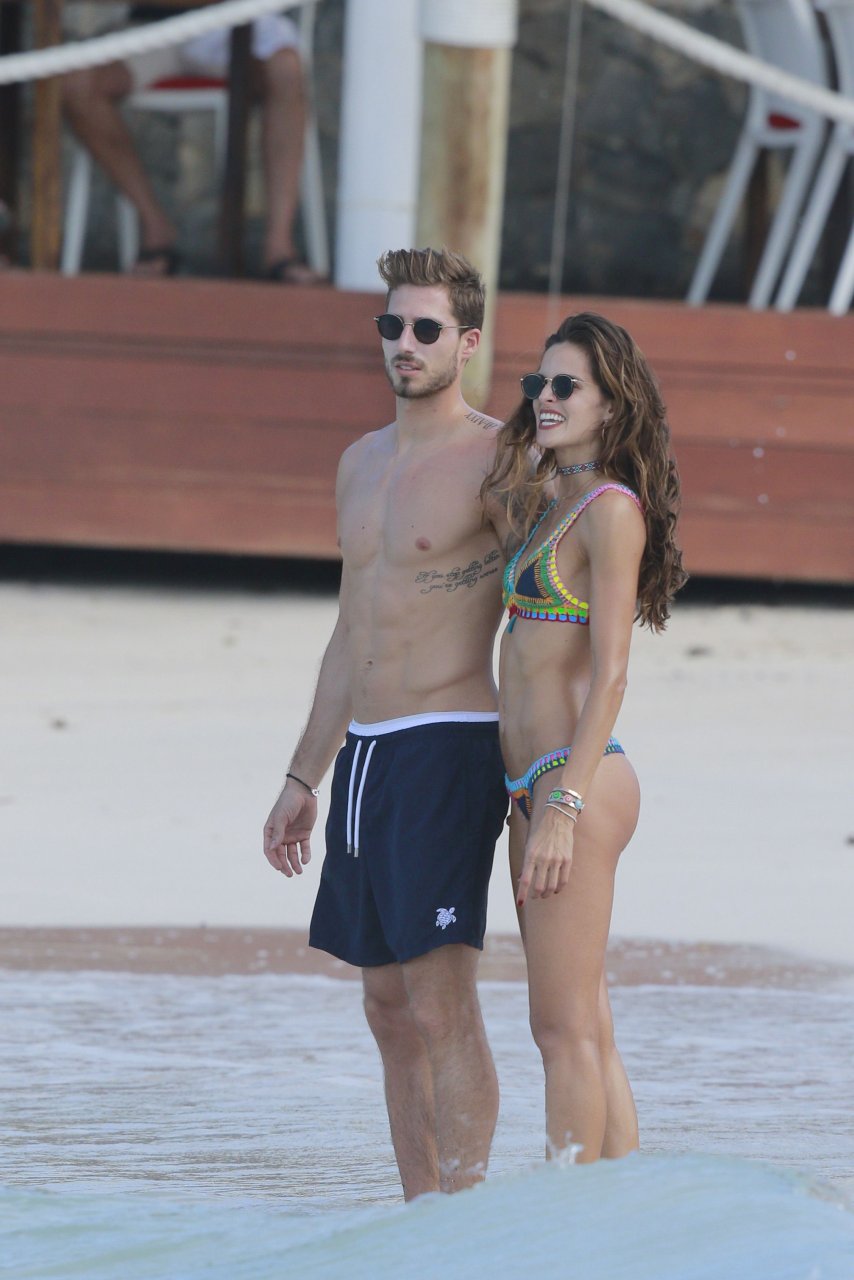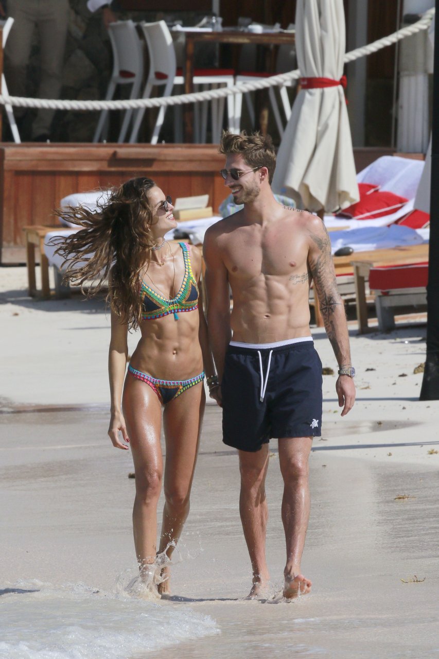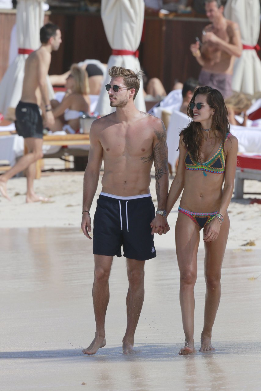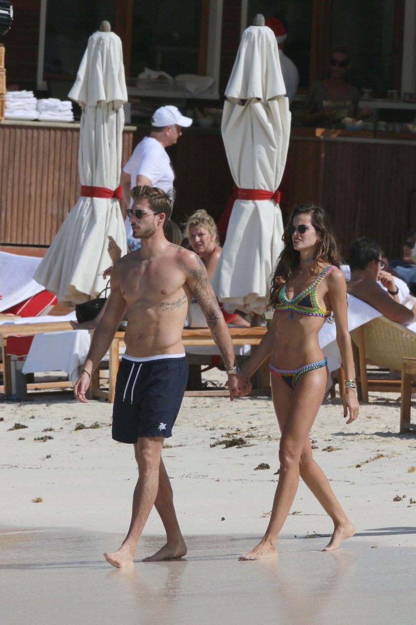 Izabel Goulart muestra su cuerpo delgado con un bikini tanga junto a su novio en la playa de St. Barts, 25/12/2016. Izabel Goulart es una modelo brasileña. Edad: 32 (23 de octubre de 1984). Altura: 177 cm.
