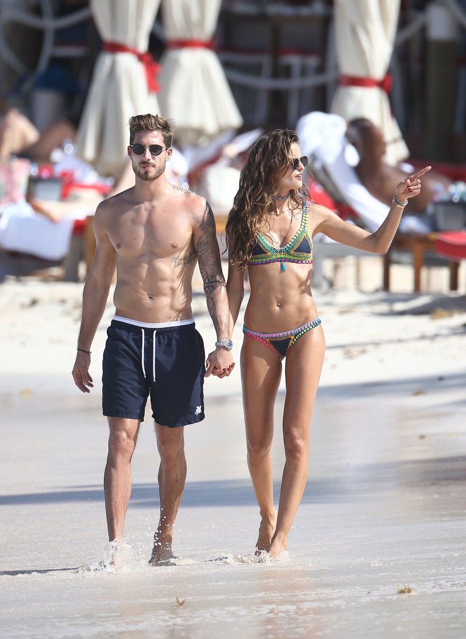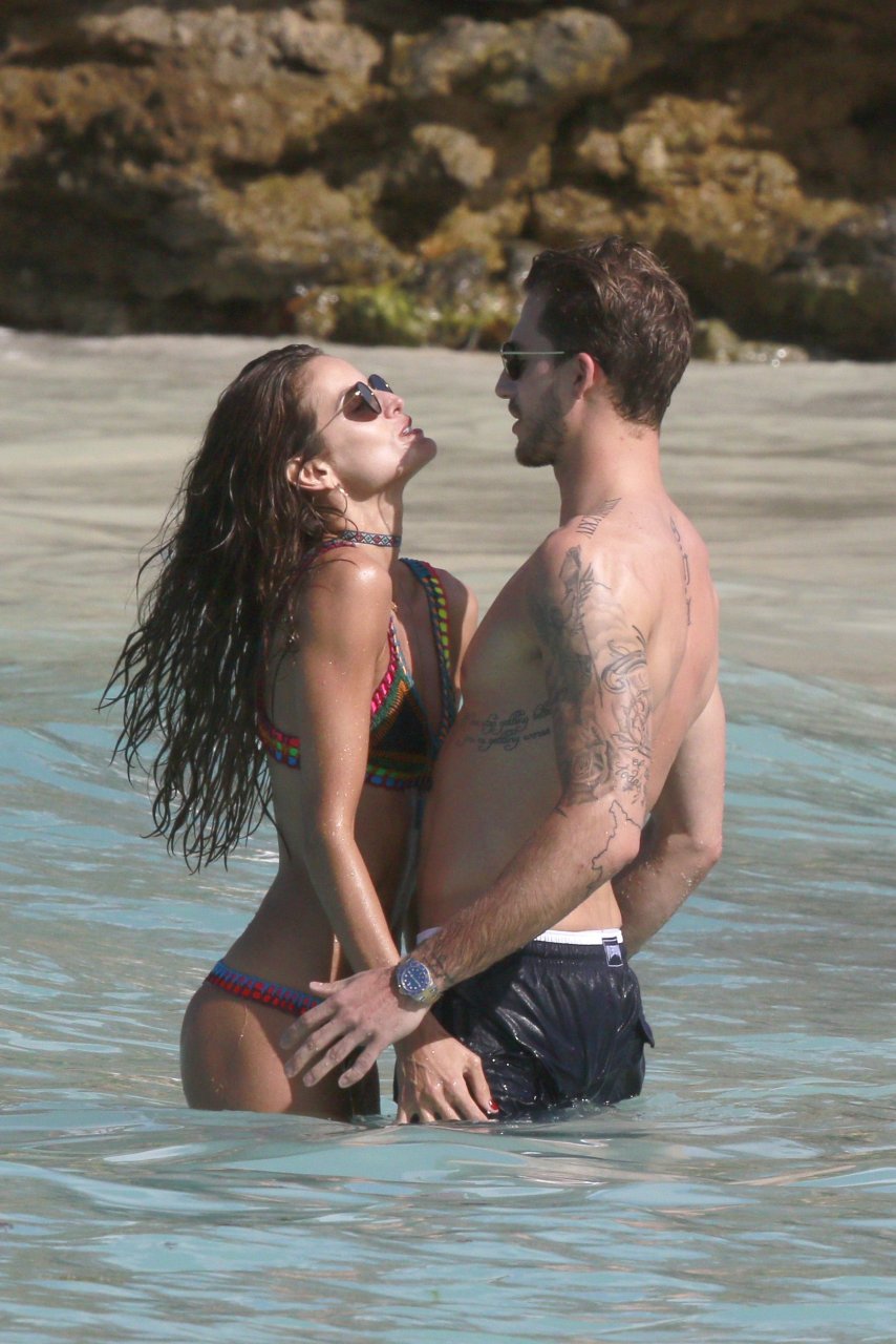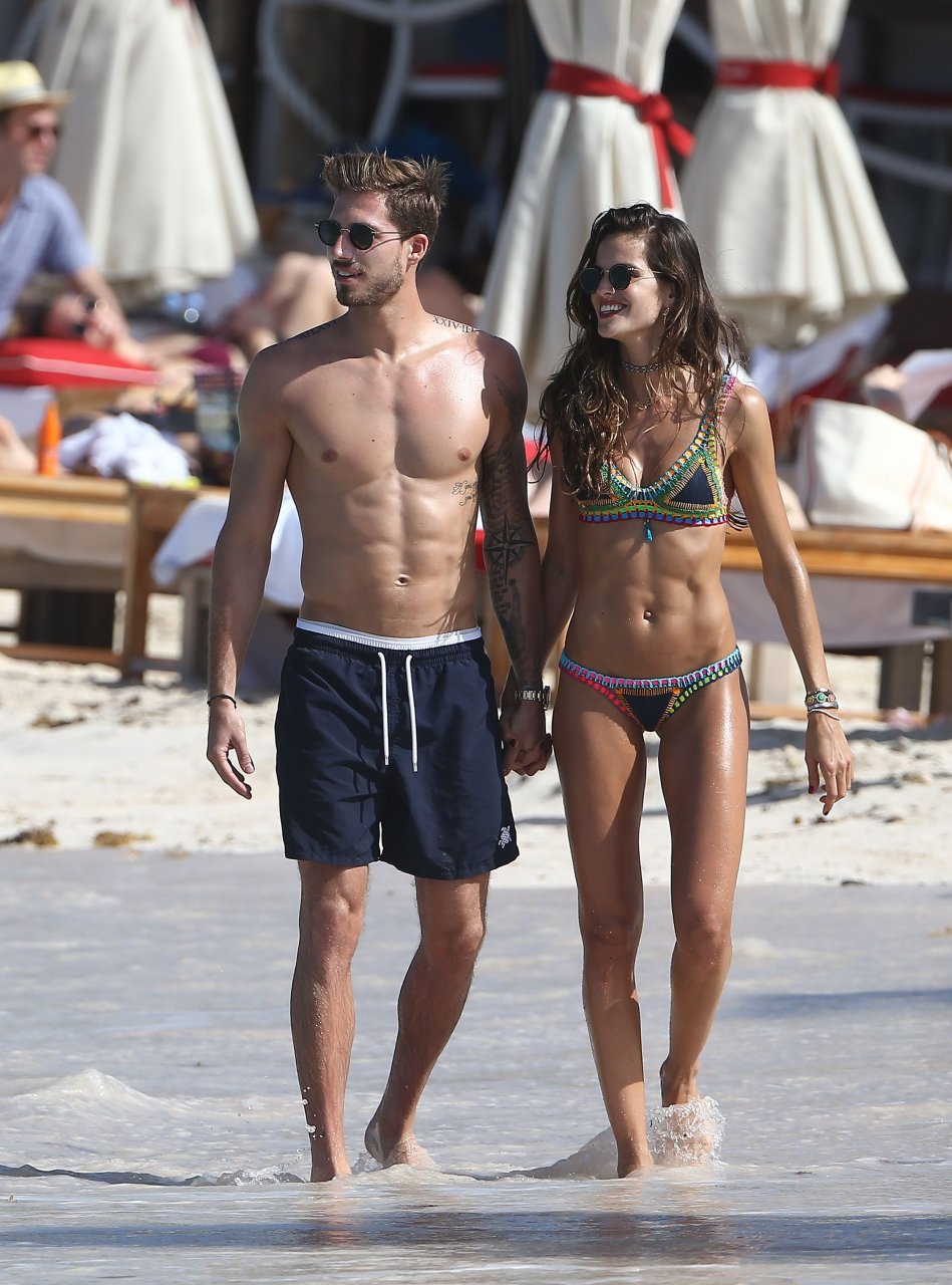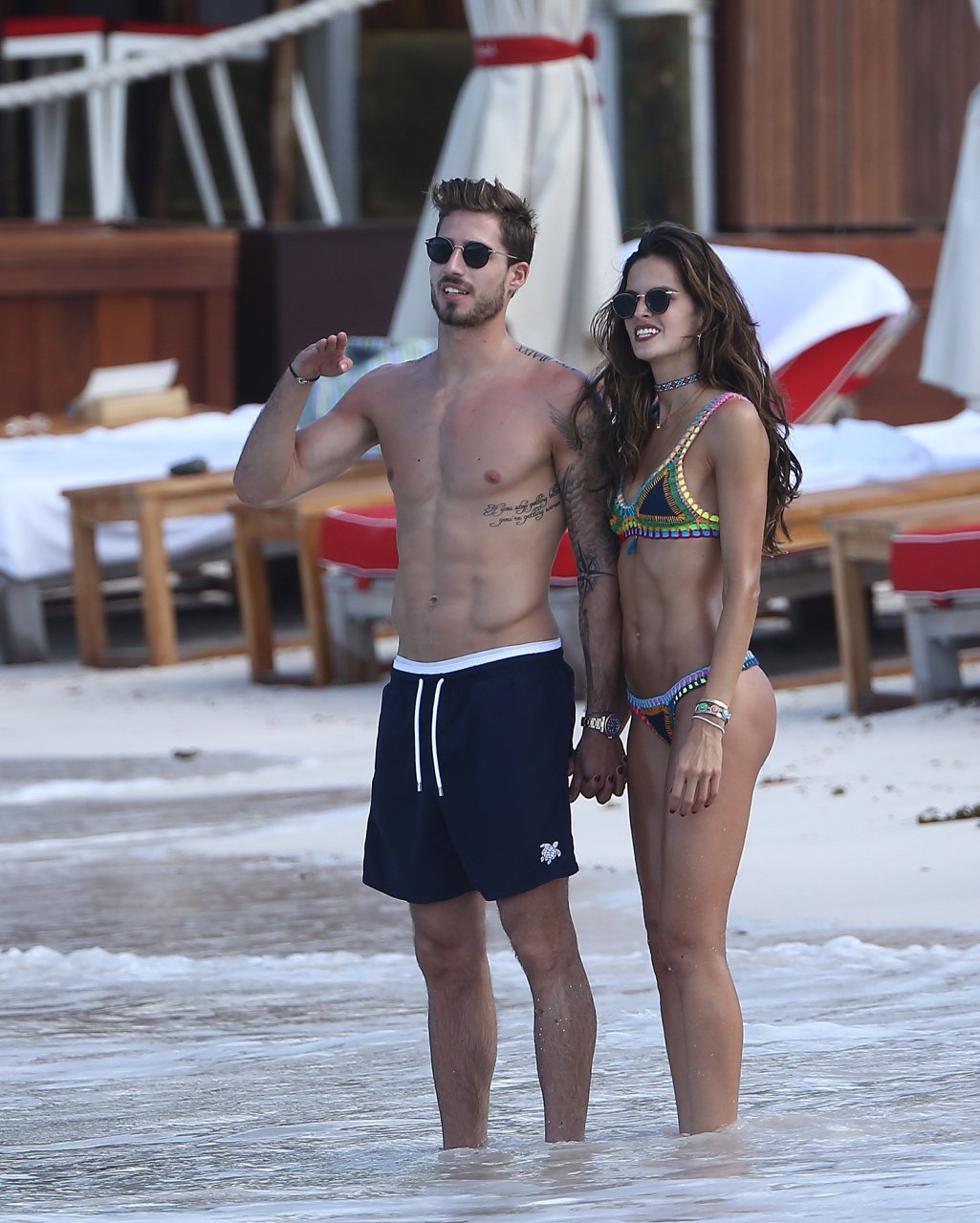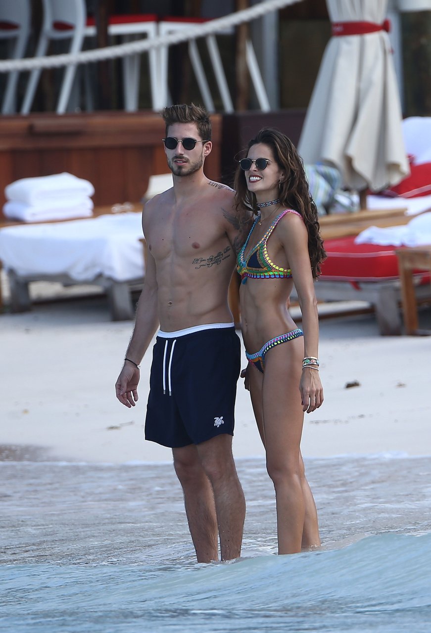 Izabel Goulart muestra su cuerpo delgado con un bikini tanga junto a su novio en la playa de St. Barts, 25/12/2016. Izabel Goulart es una modelo brasileña. Edad: 32 (23 de octubre de 1984). Altura: 177 cm.