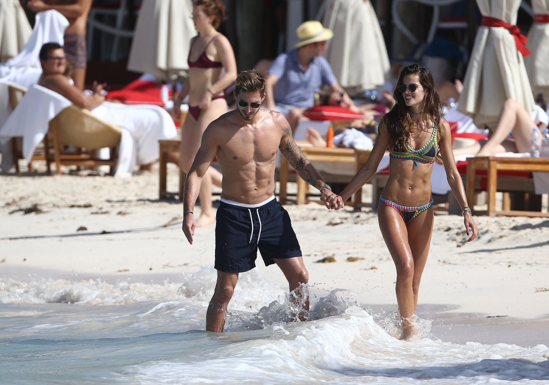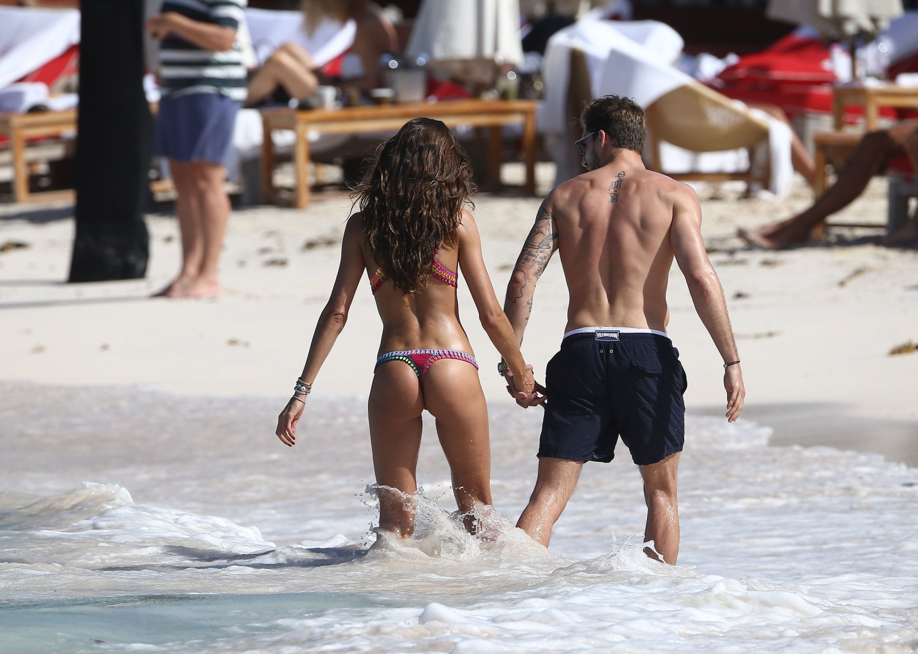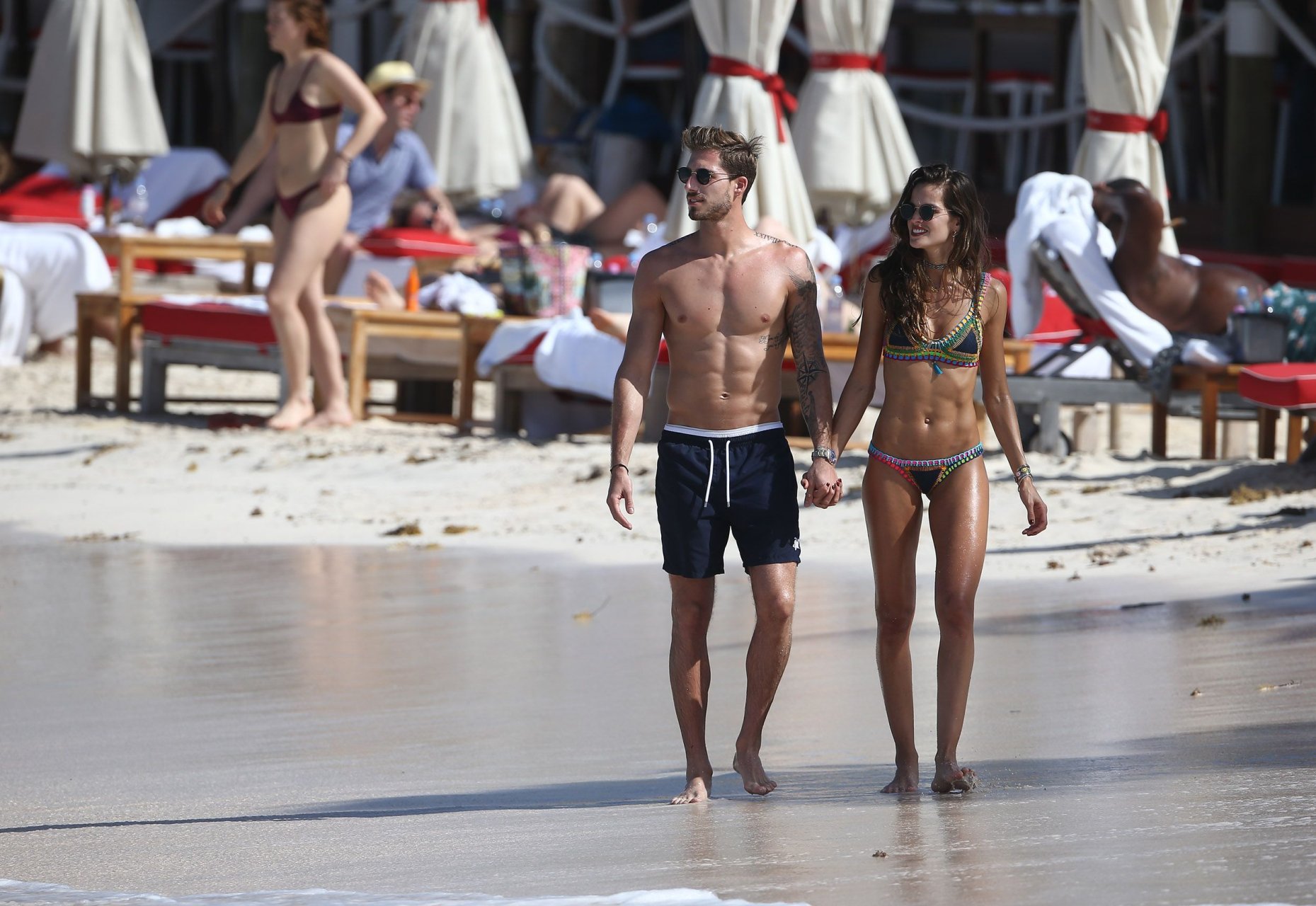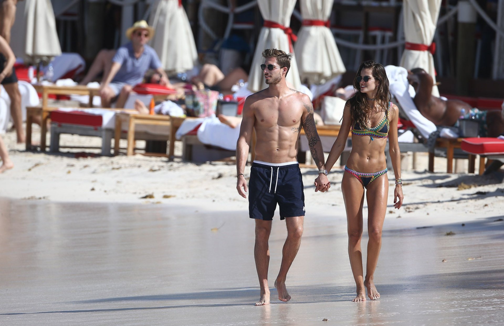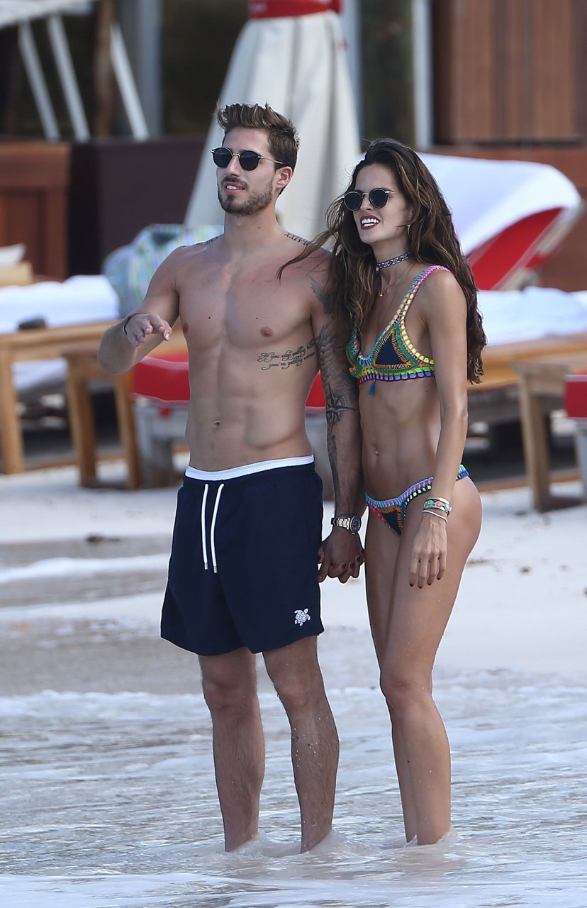 Izabel Goulart muestra su cuerpo delgado con un bikini tanga junto a su novio en la playa de St. Barts, 25/12/2016. Izabel Goulart es una modelo brasileña. Edad: 32 (23 de octubre de 1984). Altura: 177 cm.
