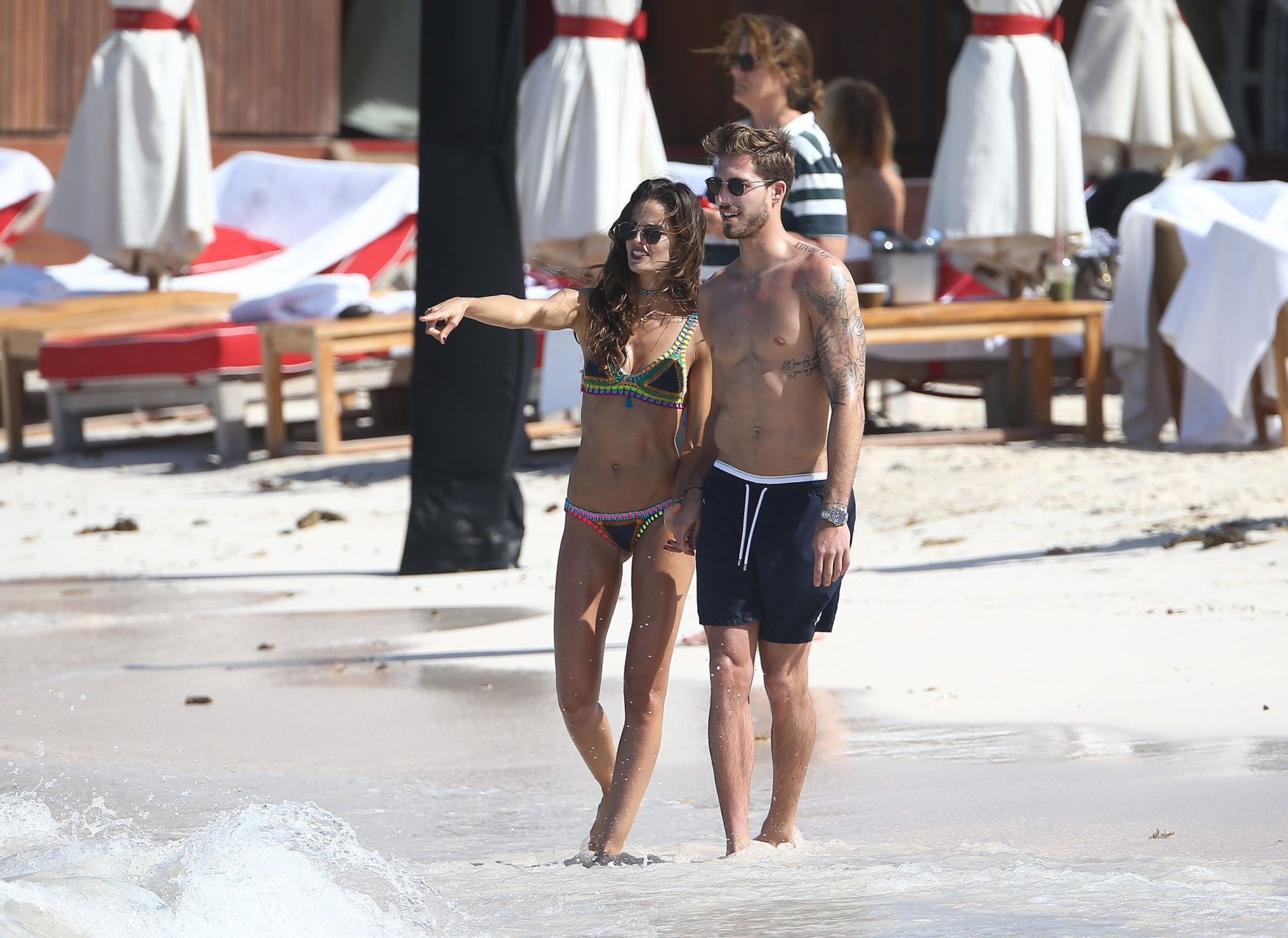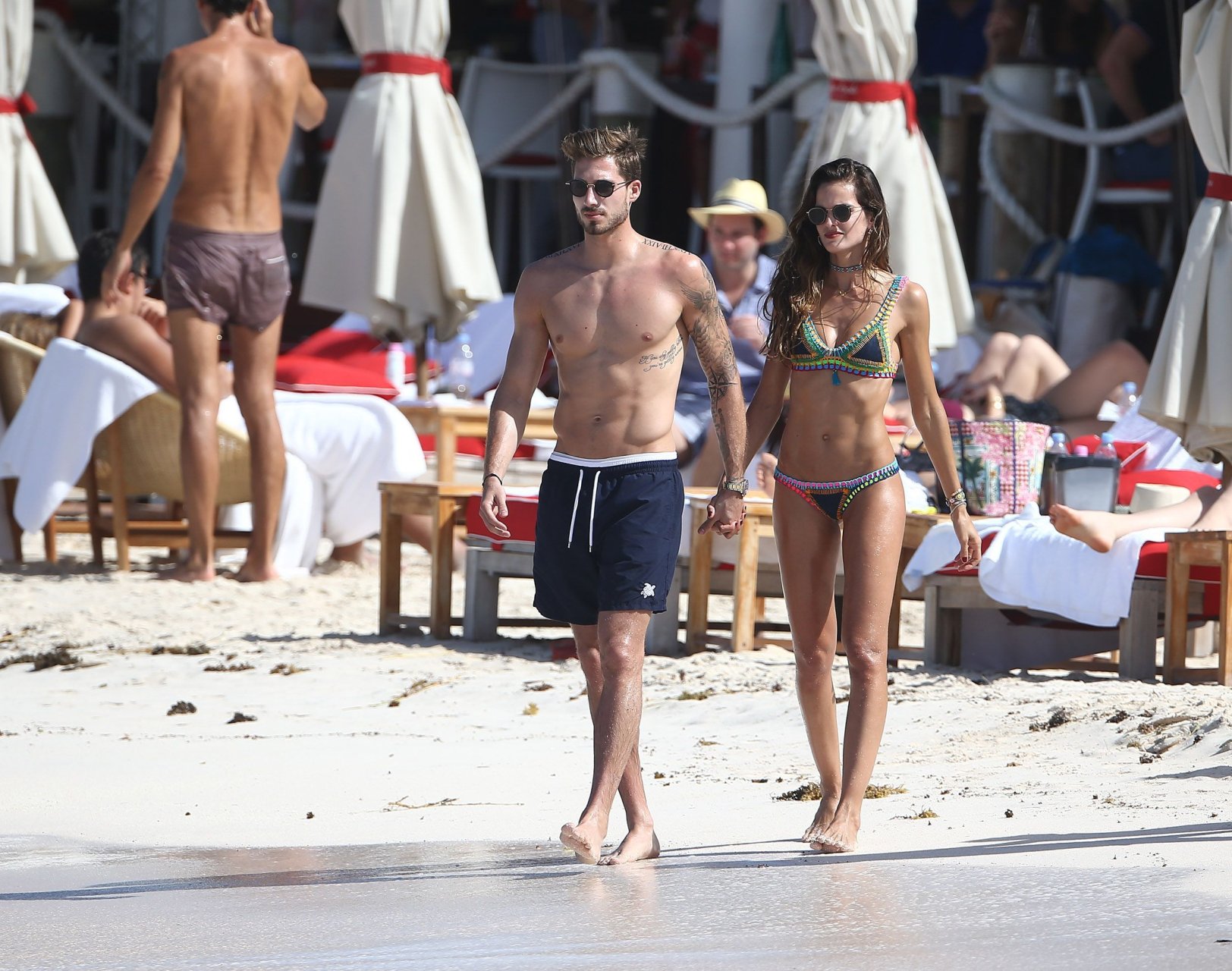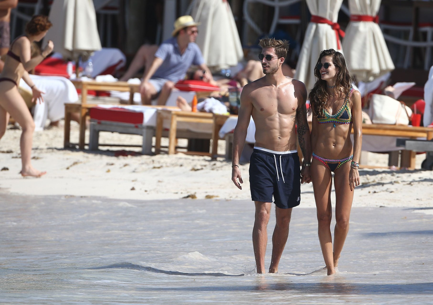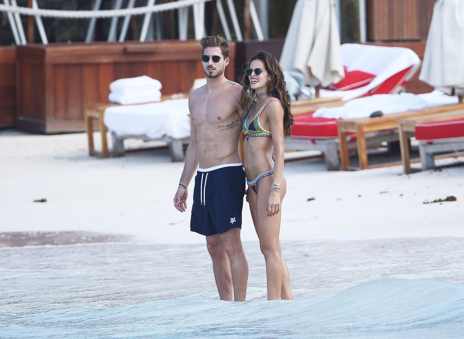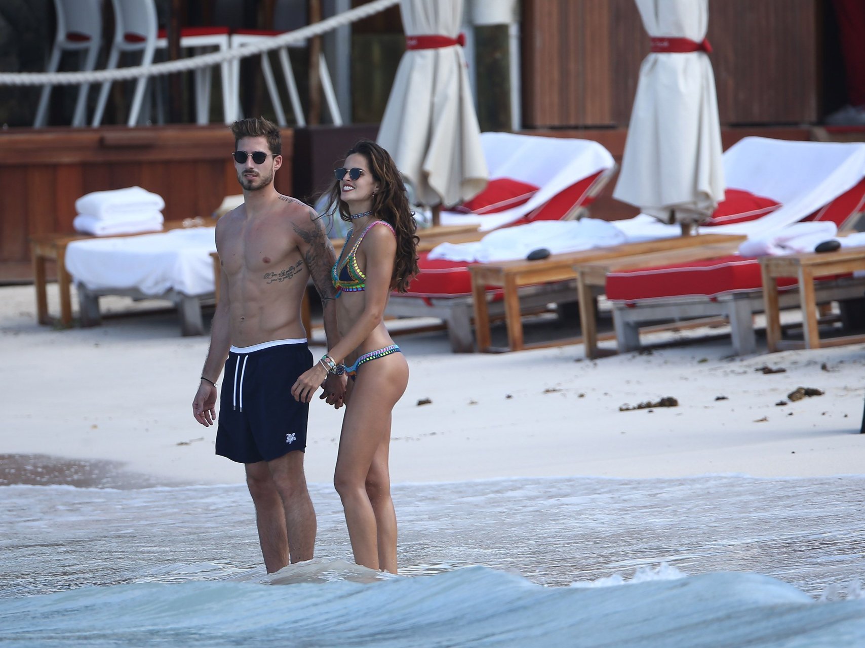 Izabel Goulart muestra su cuerpo delgado con un bikini tanga junto a su novio en la playa de St. Barts, 25/12/2016. Izabel Goulart es una modelo brasileña. Edad: 32 (23 de octubre de 1984). Altura: 177 cm.