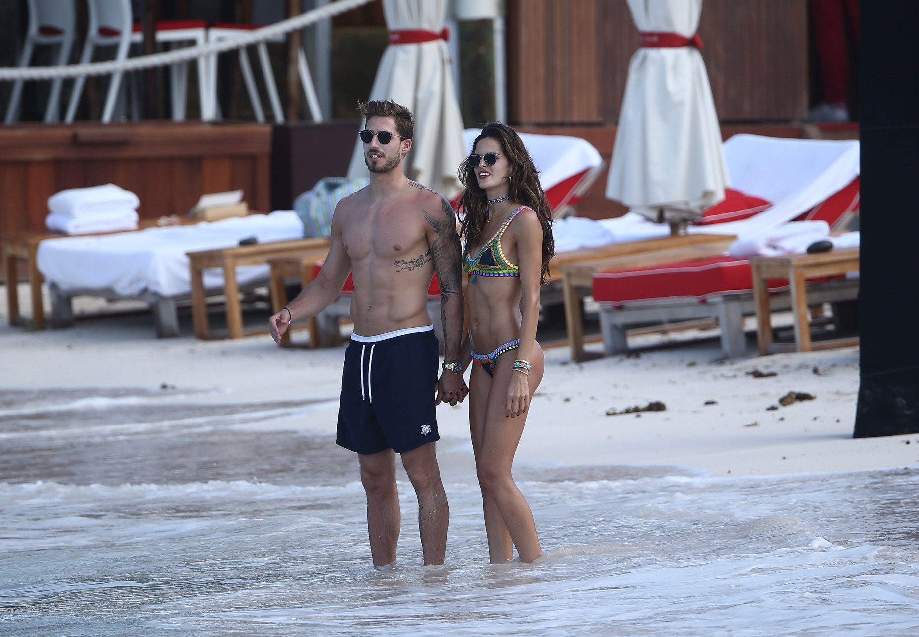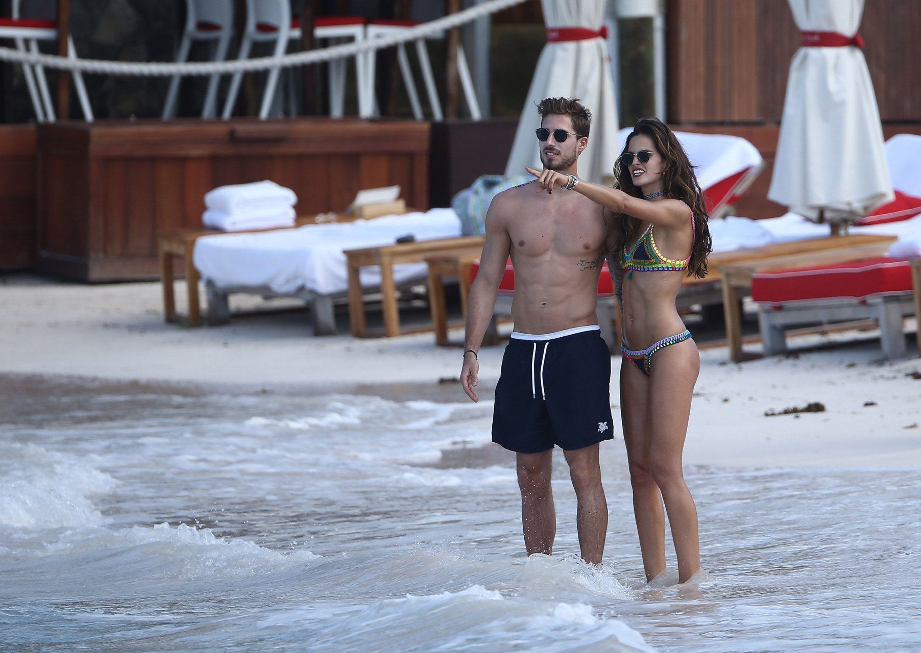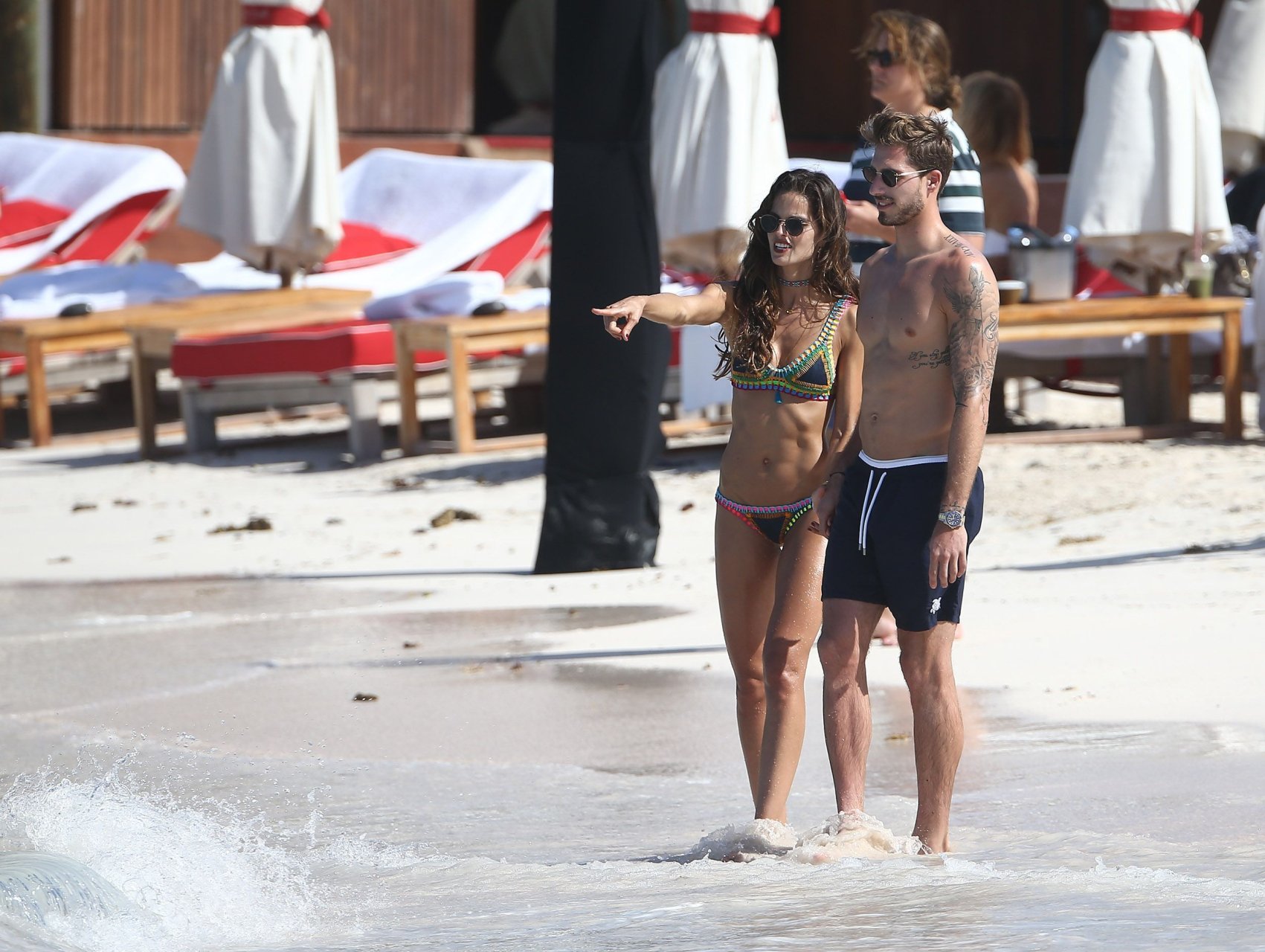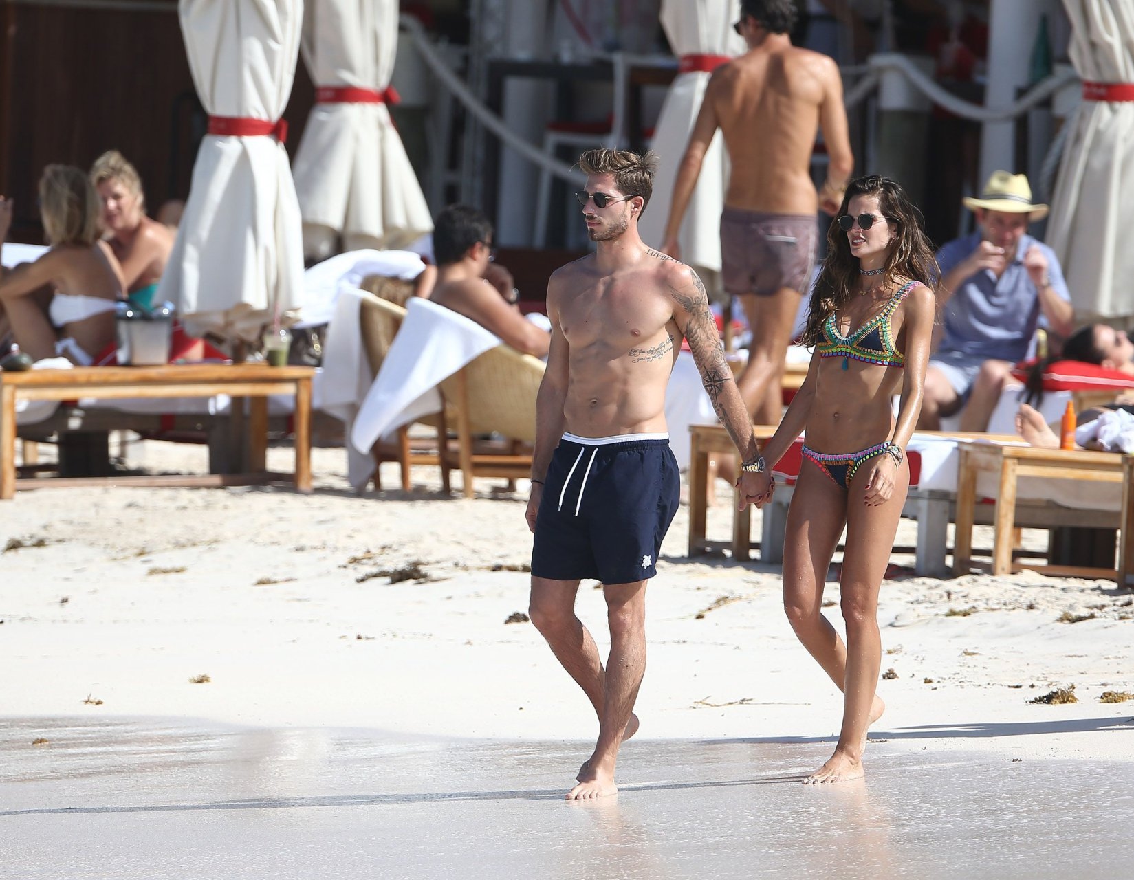 Izabel Goulart muestra su cuerpo delgado con un bikini tanga junto a su novio en la playa de St. Barts, 25/12/2016. Izabel Goulart es una modelo brasileña. Edad: 32 (23 de octubre de 1984). Altura: 177 cm.