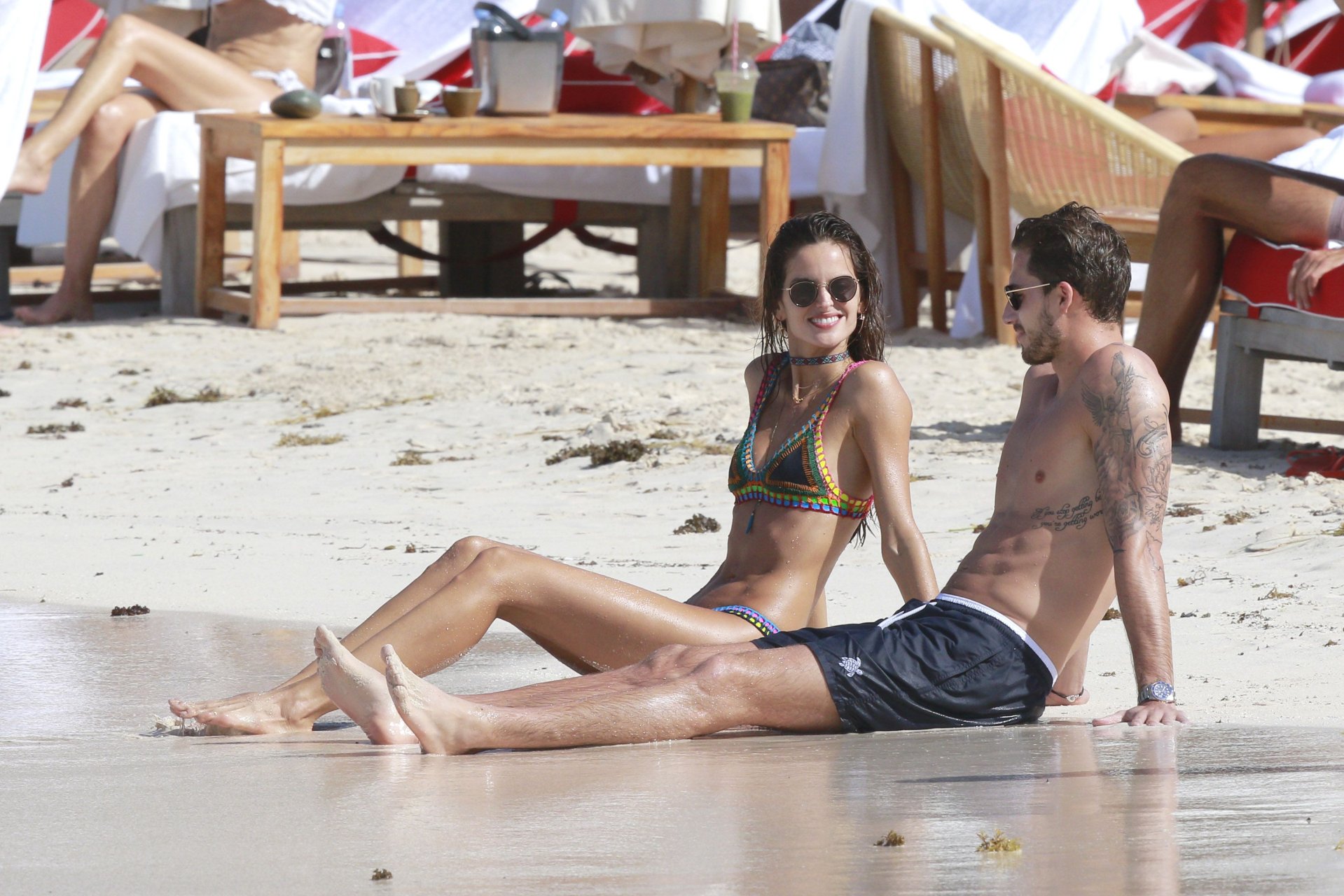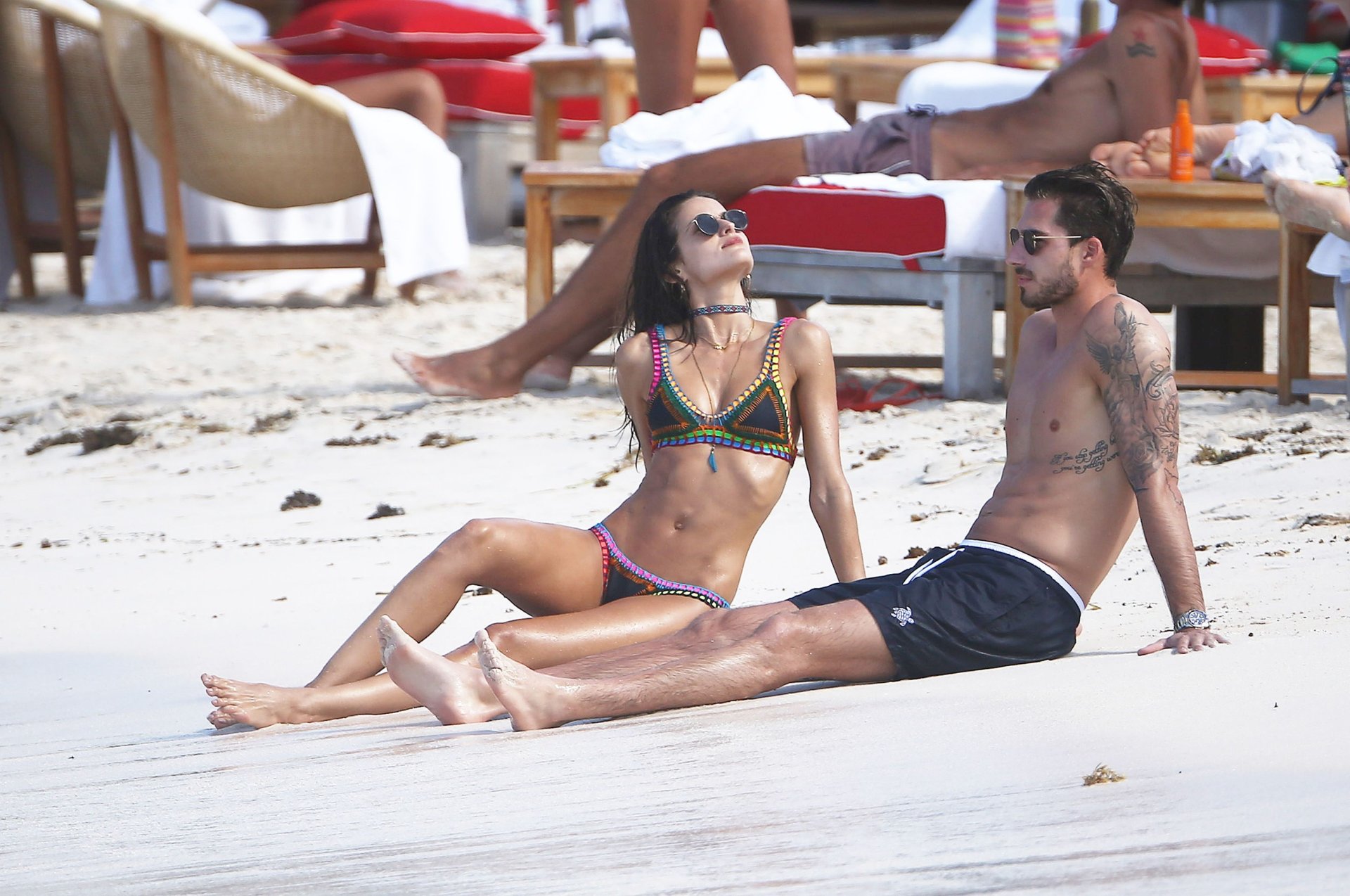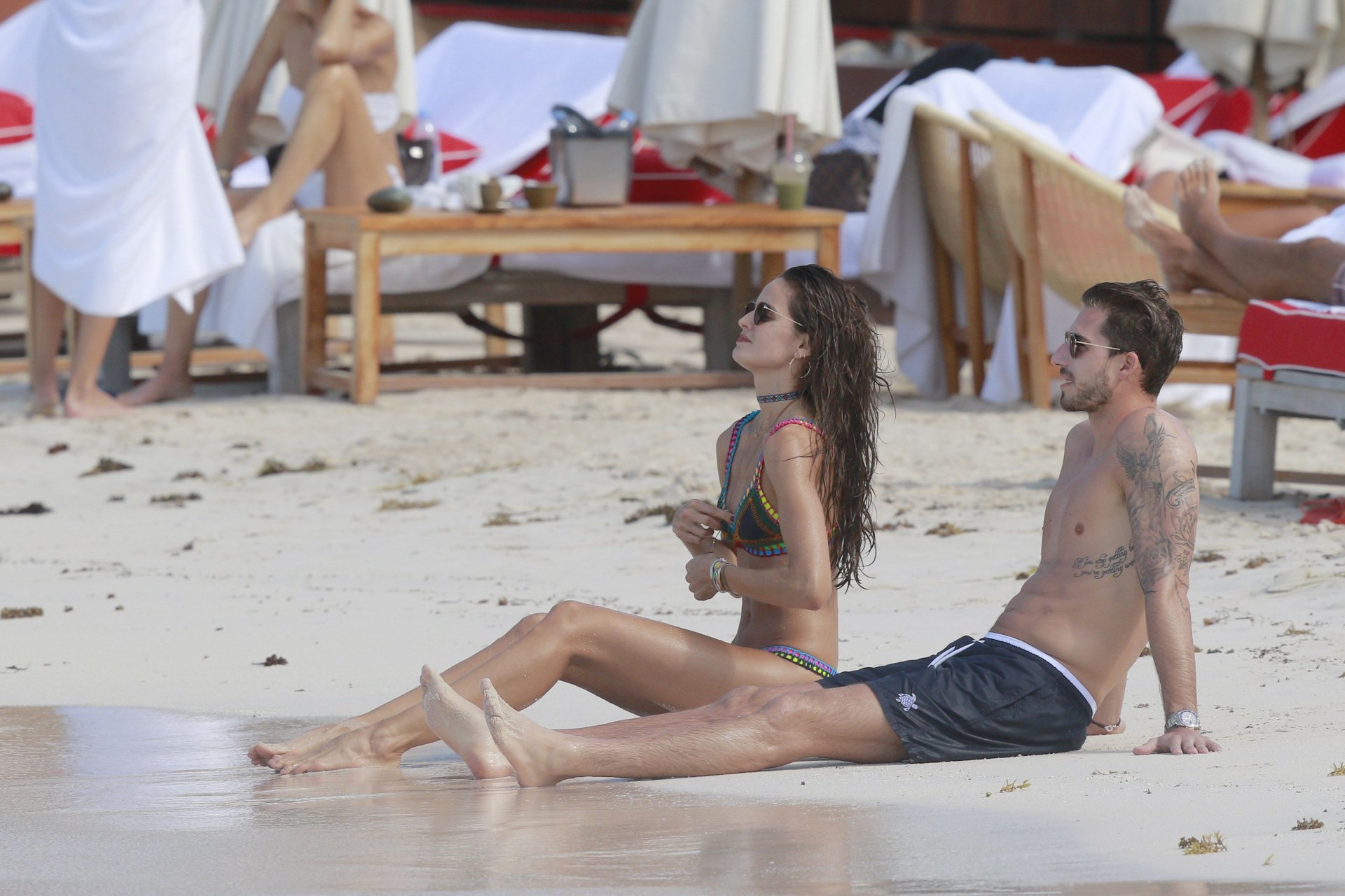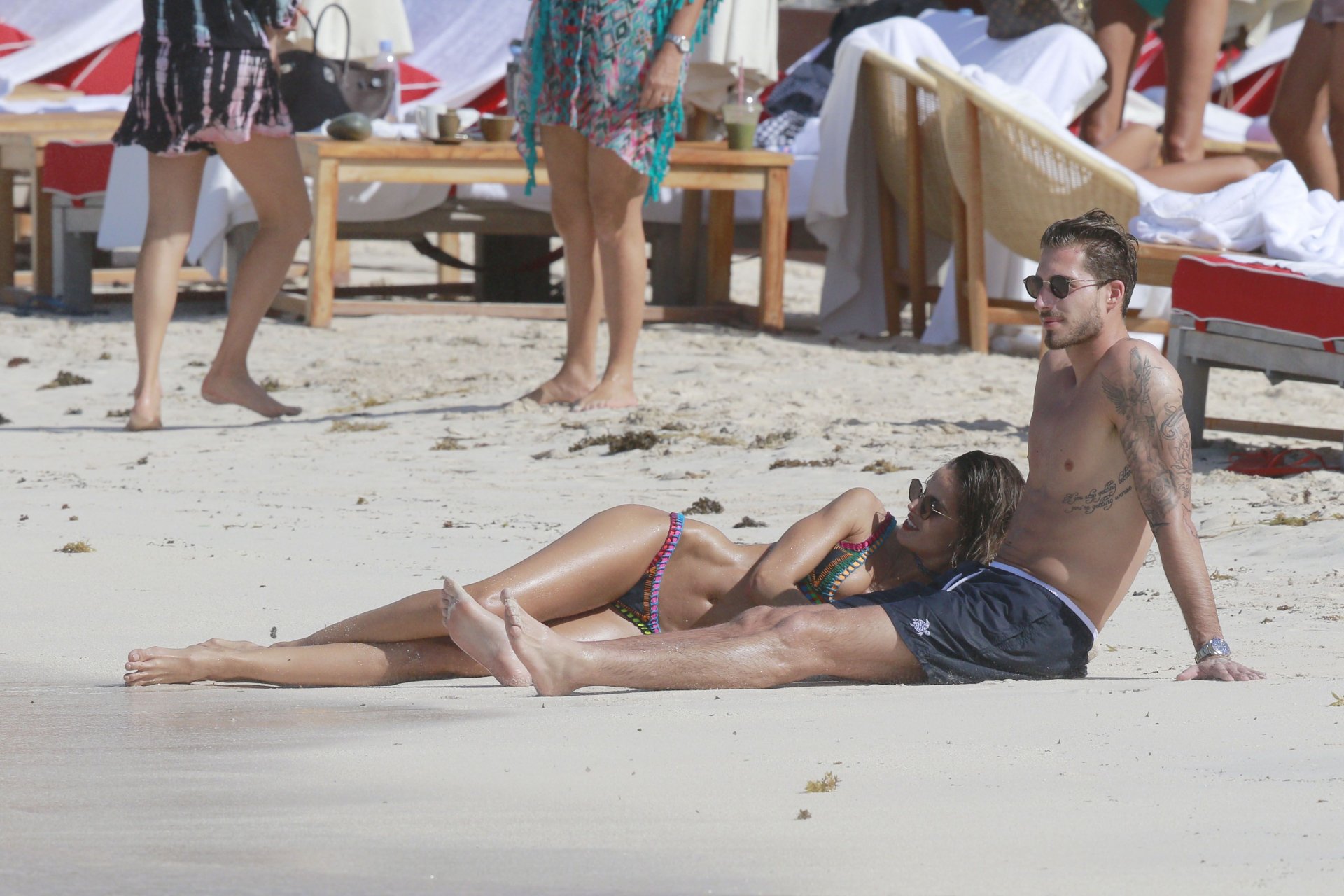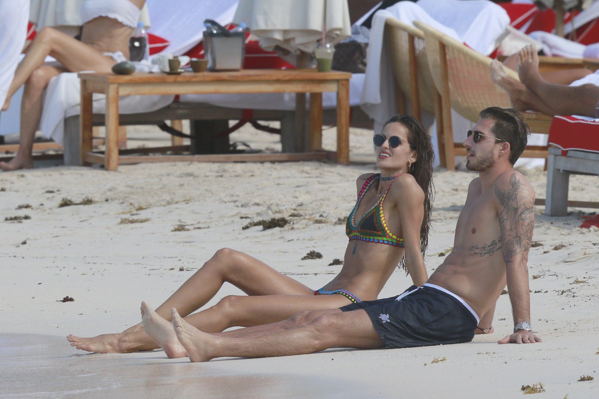 Izabel Goulart muestra su cuerpo delgado con un bikini tanga junto a su novio en la playa de St. Barts, 25/12/2016. Izabel Goulart es una modelo brasileña. Edad: 32 (23 de octubre de 1984). Altura: 177 cm.