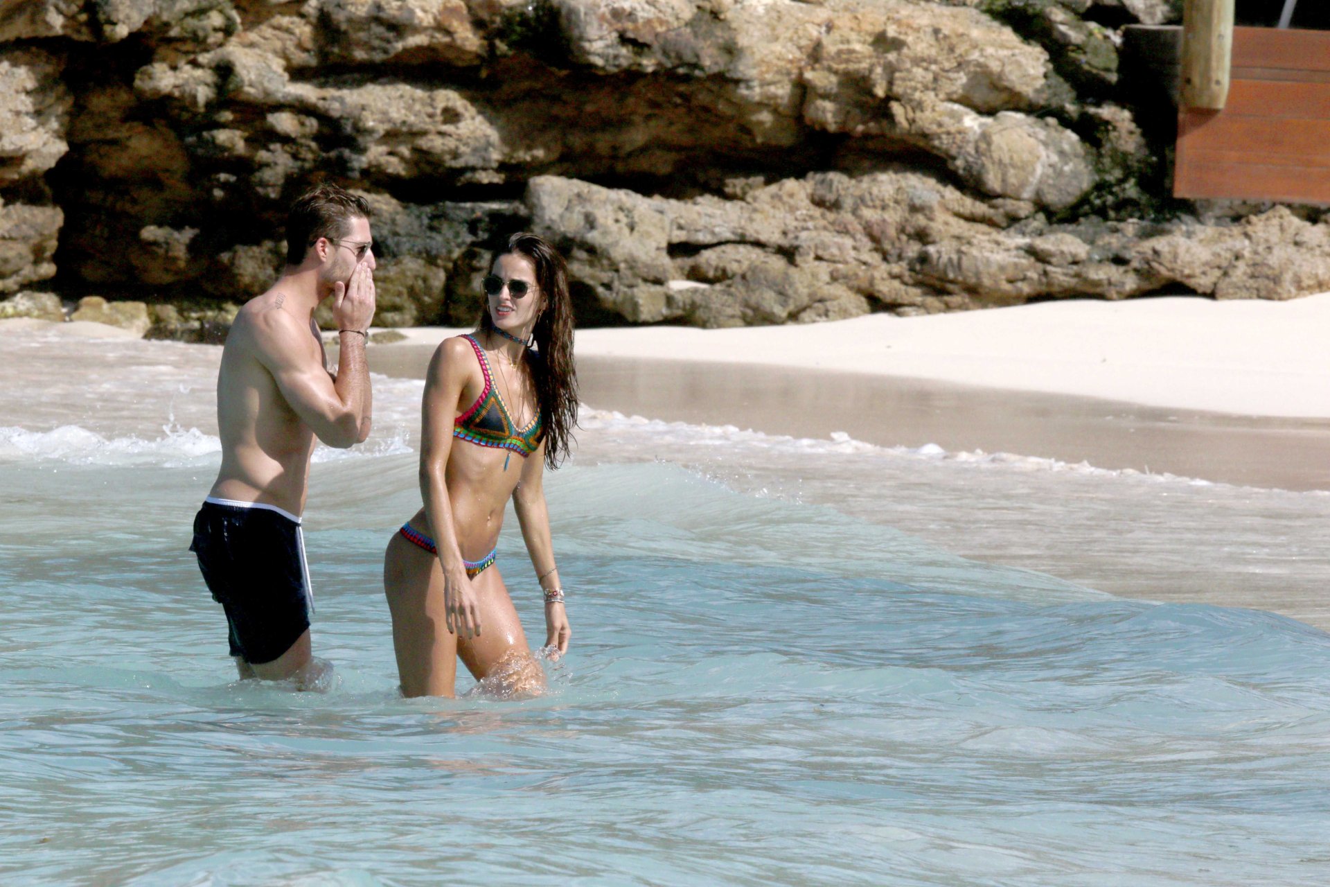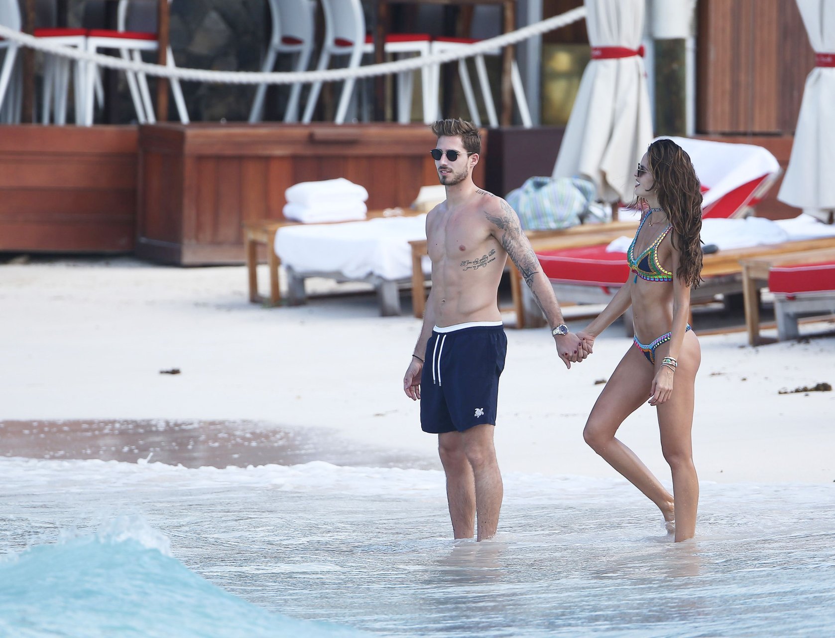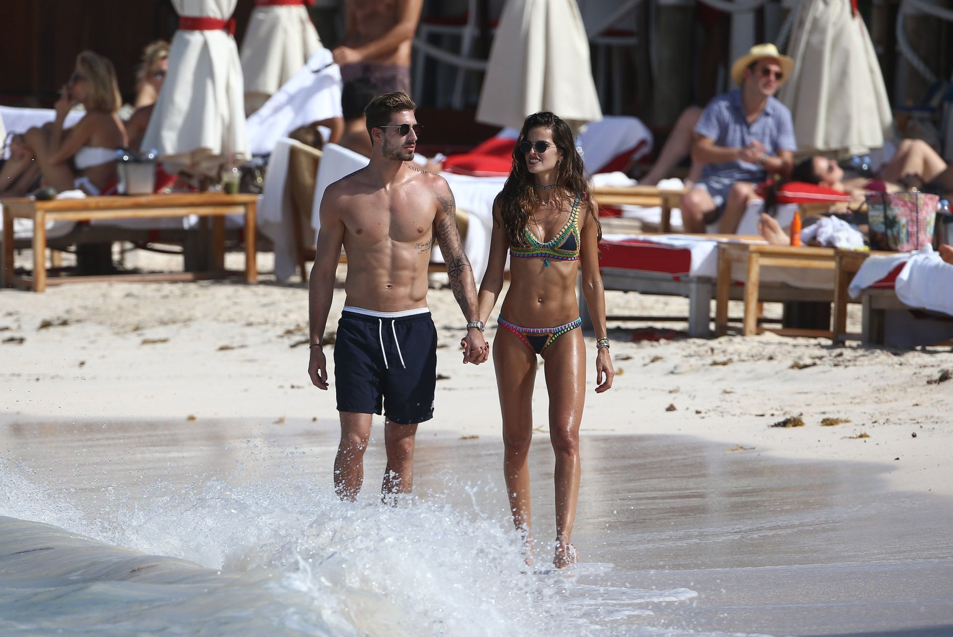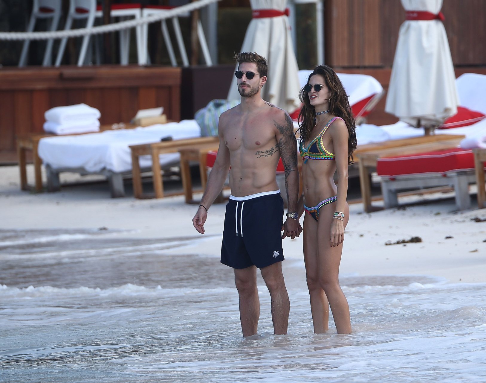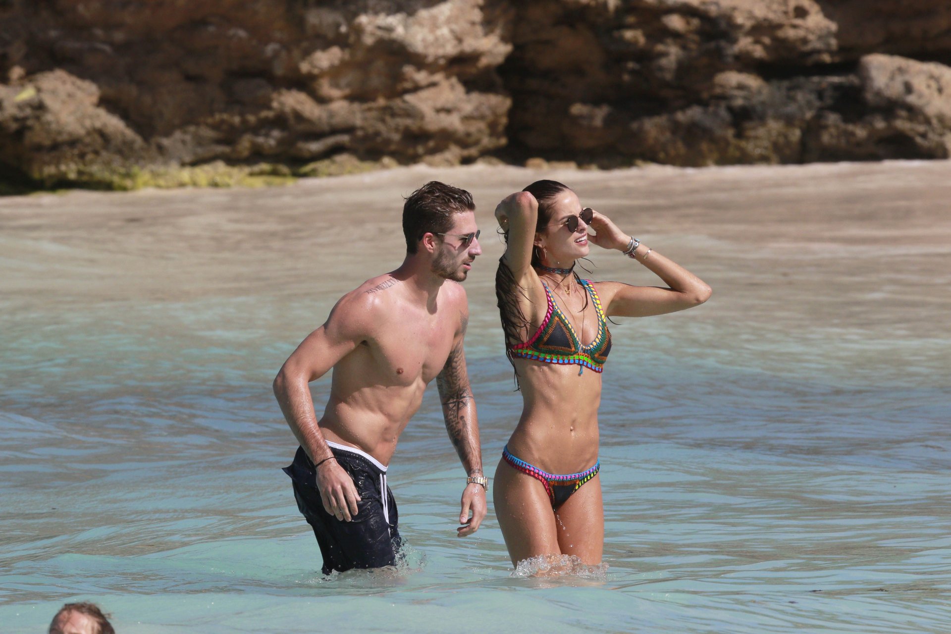 Izabel Goulart muestra su cuerpo delgado con un bikini tanga junto a su novio en la playa de St. Barts, 25/12/2016. Izabel Goulart es una modelo brasileña. Edad: 32 (23 de octubre de 1984). Altura: 177 cm.