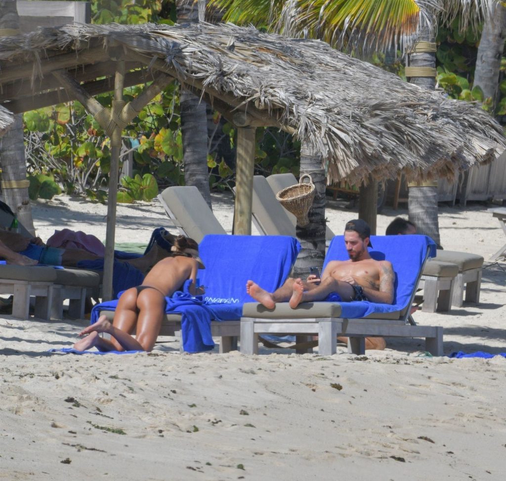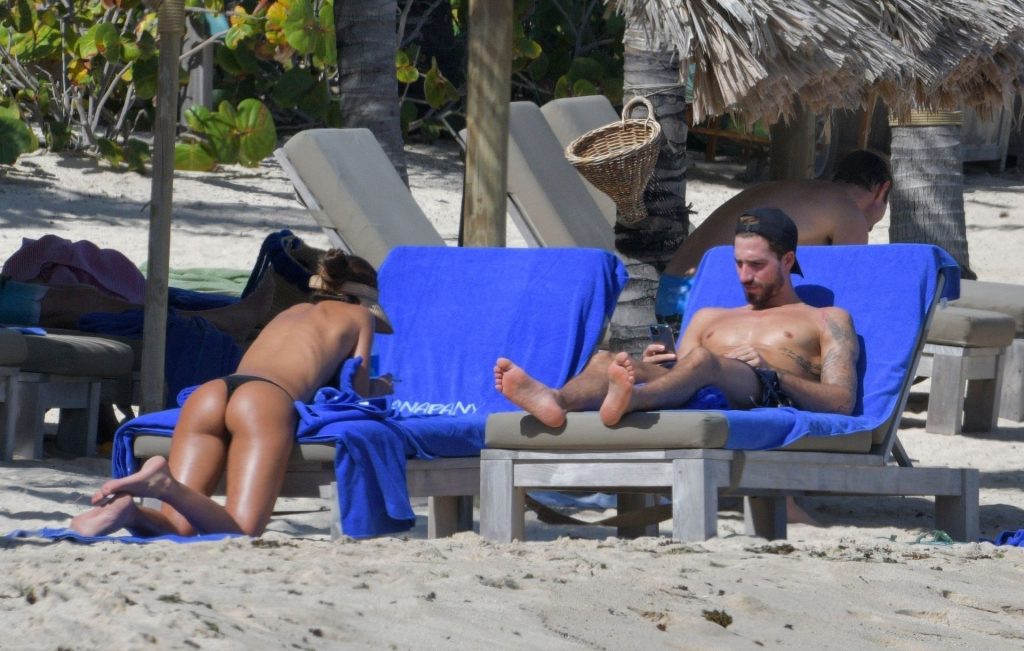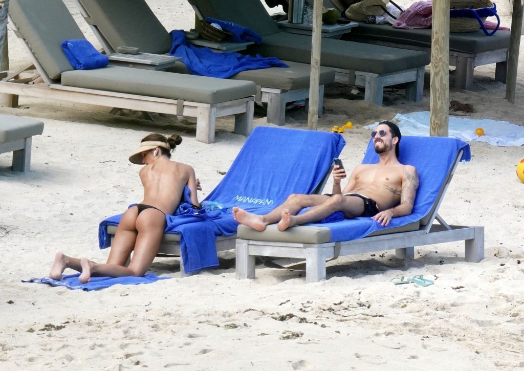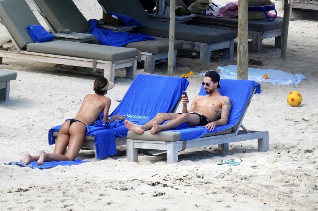 La modelo de moda brasileña Izabel Goulart y el futbolista alemán Kevin Trapp disfrutan de un tiempo de descanso en la playa durante las vacaciones de Navidad en St Barts, 28/12/2019.