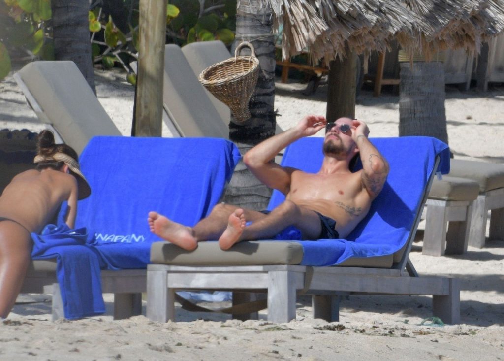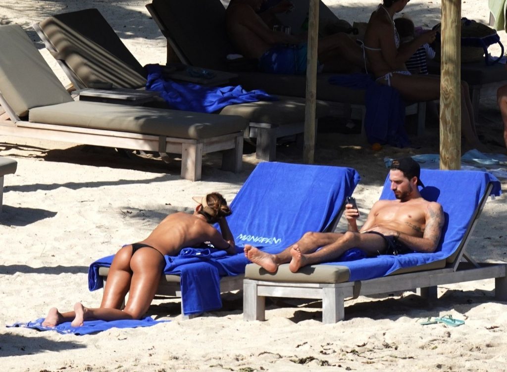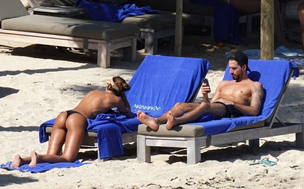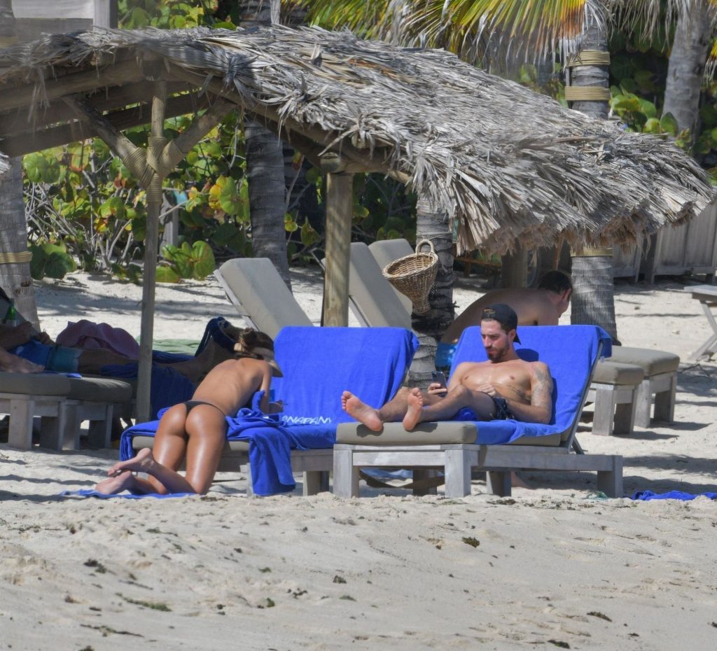 La modelo de moda brasileña Izabel Goulart y el futbolista alemán Kevin Trapp disfrutan de un tiempo de descanso en la playa durante las vacaciones de Navidad en St Barts, 28/12/2019.