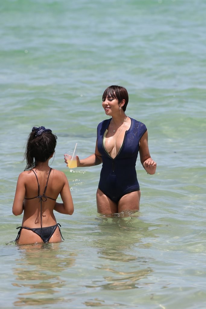 Jackie Cruz muestra su cuerpo impresionante en un traje de baño mientras disfruta un día divertido en Miami Beach con sus amigos, 17/06/2018. La actriz de ‘Orange is the New Black’ lució increíble con un body de neopreno azul marino abierto y con escote pronunciado de Duskii.
