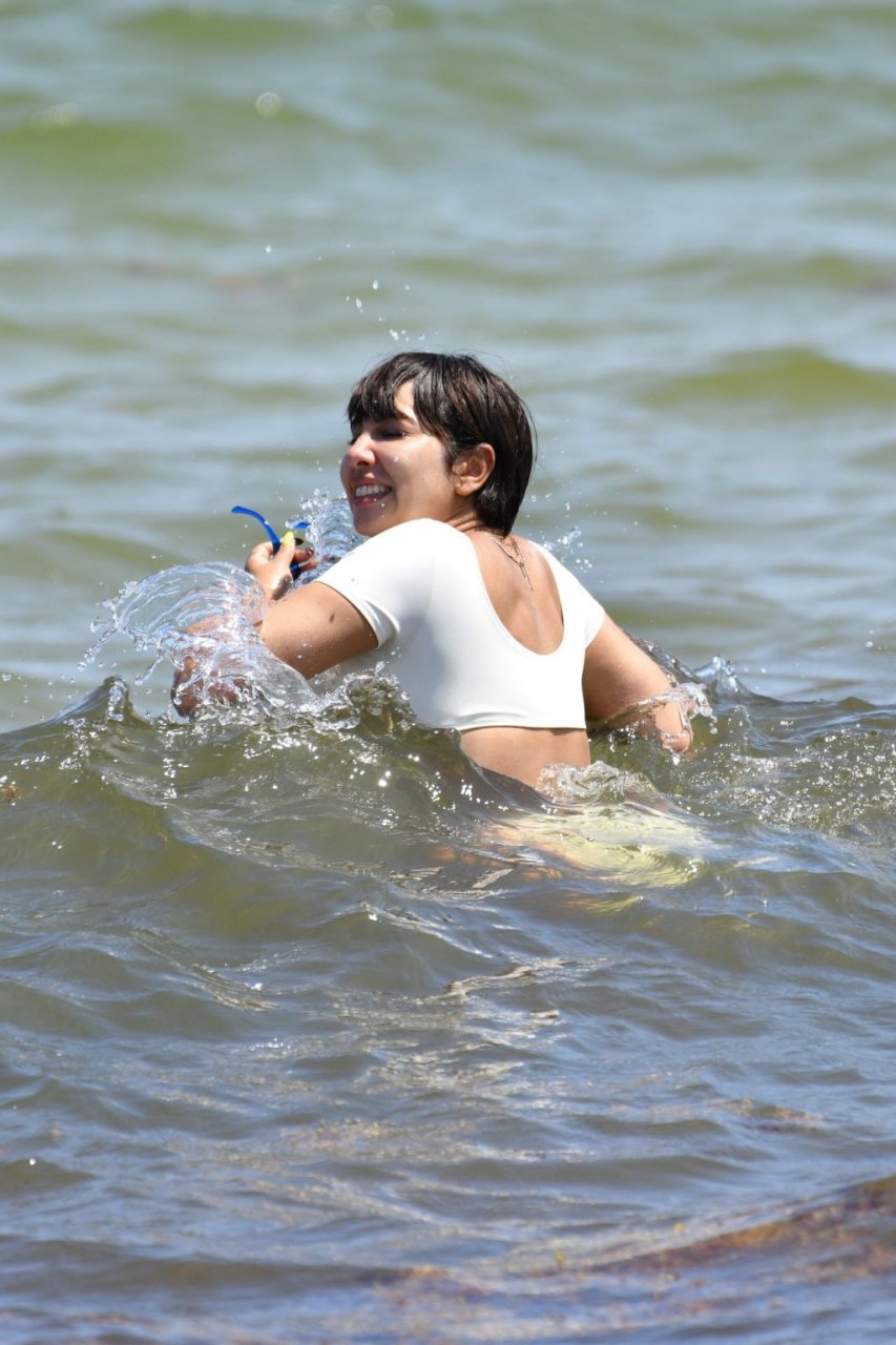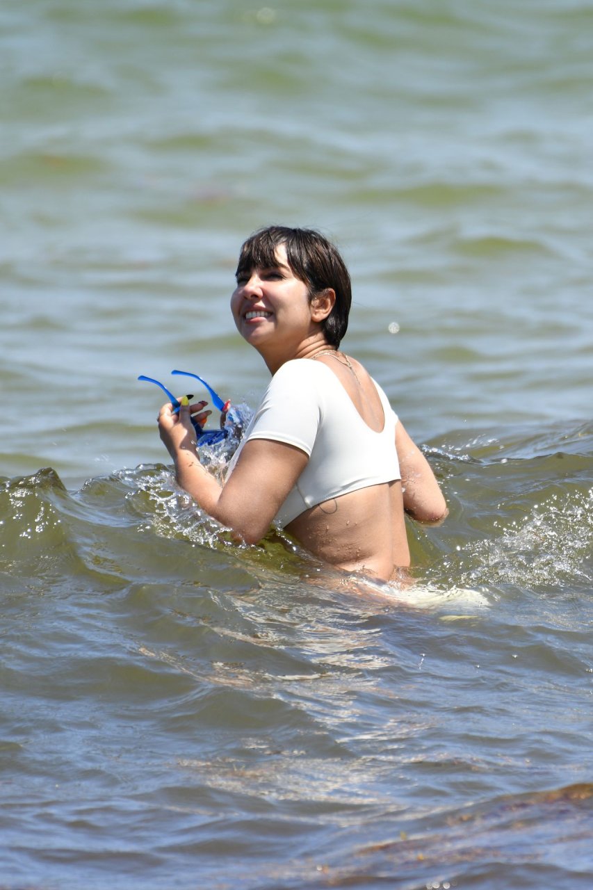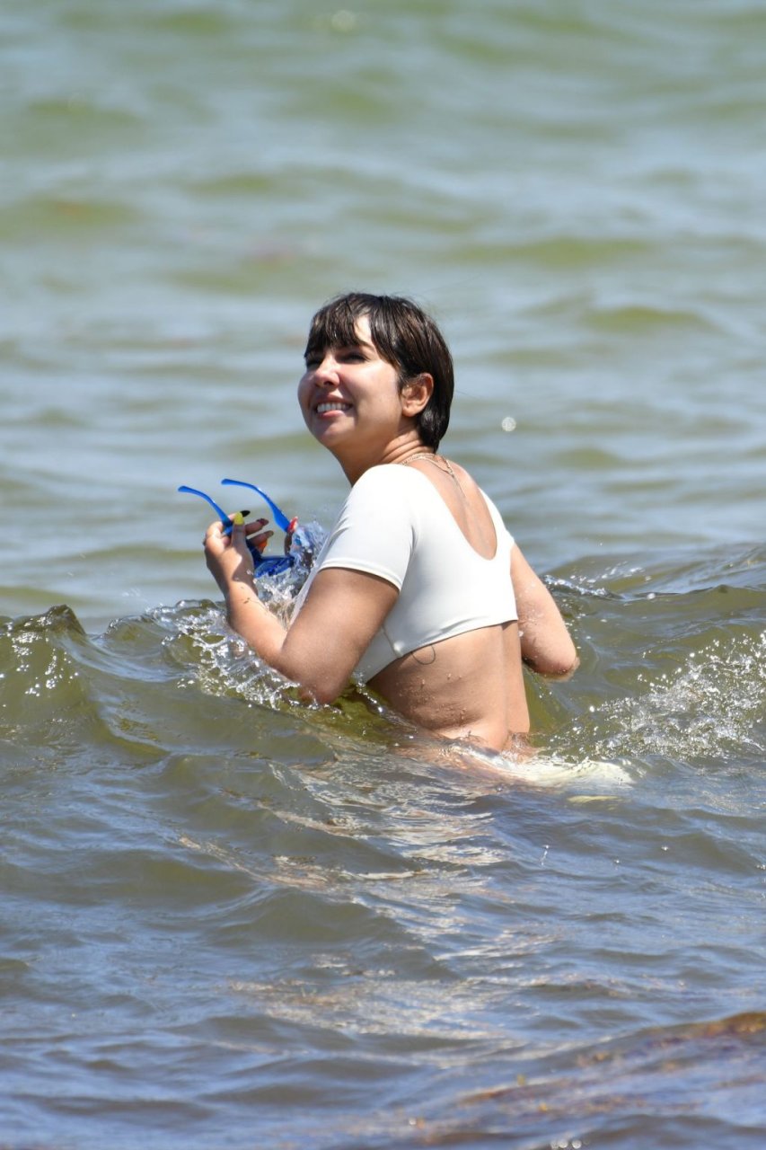 La estrella de “Orange is the New Black” fue vista luciendo su figura increíble mientras se tomaba algunas selfies y se refrescaba en el océano.