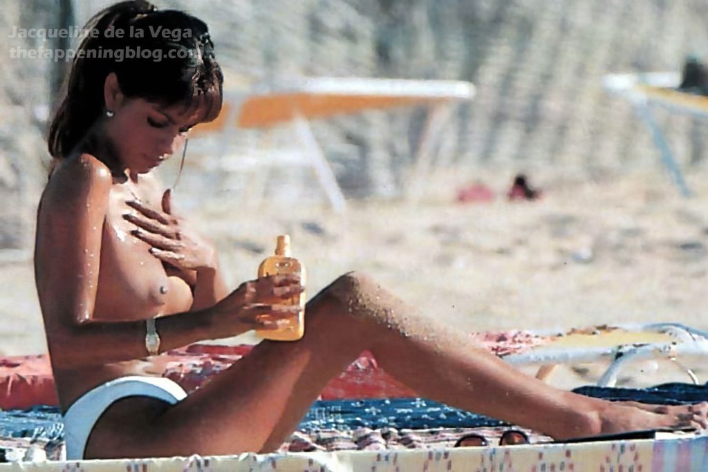 Jacqueline de la Vega disfruta de un día sin camiseta en la playa en México (1994). Jacqueline de la Vega (nacida el 1 de enero de 1960) es una presentadora mexicana en España y ex actriz y modelo.