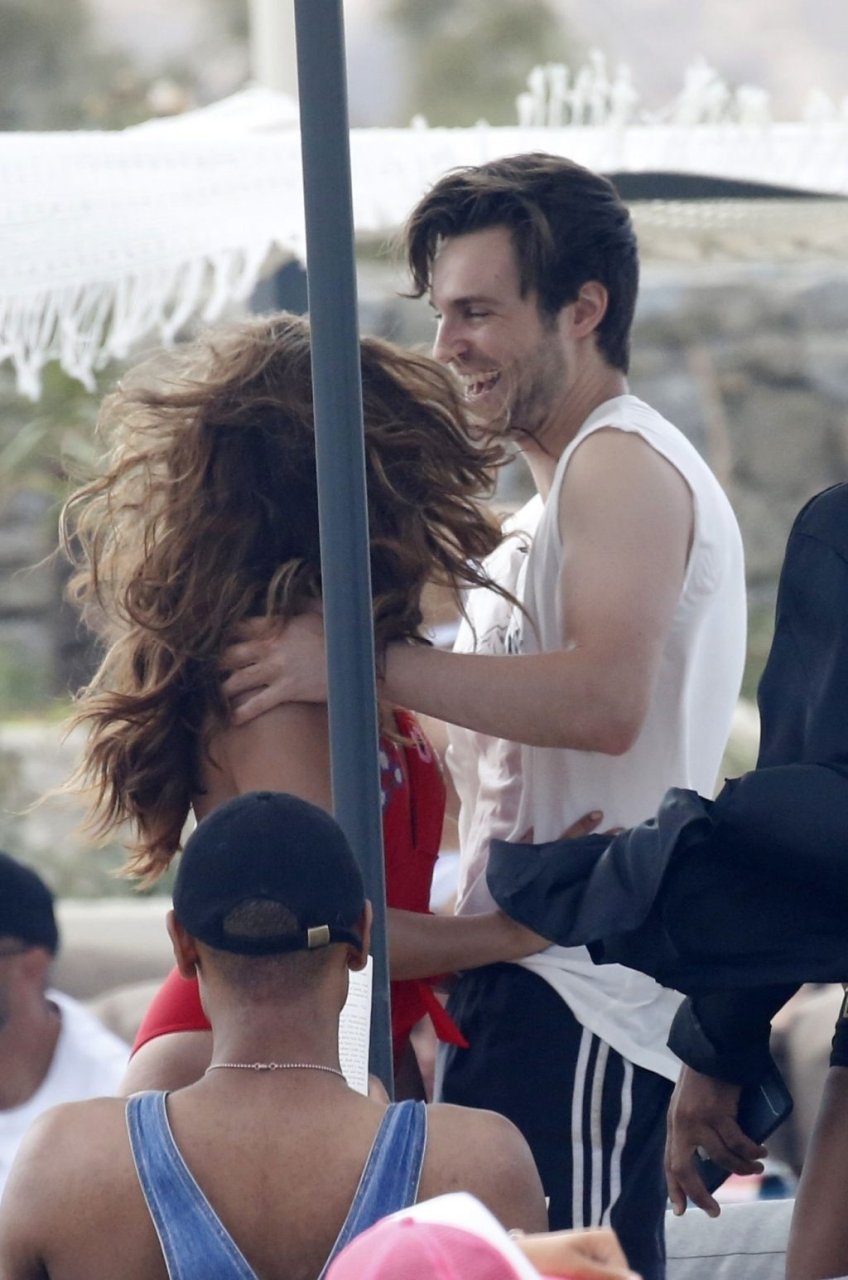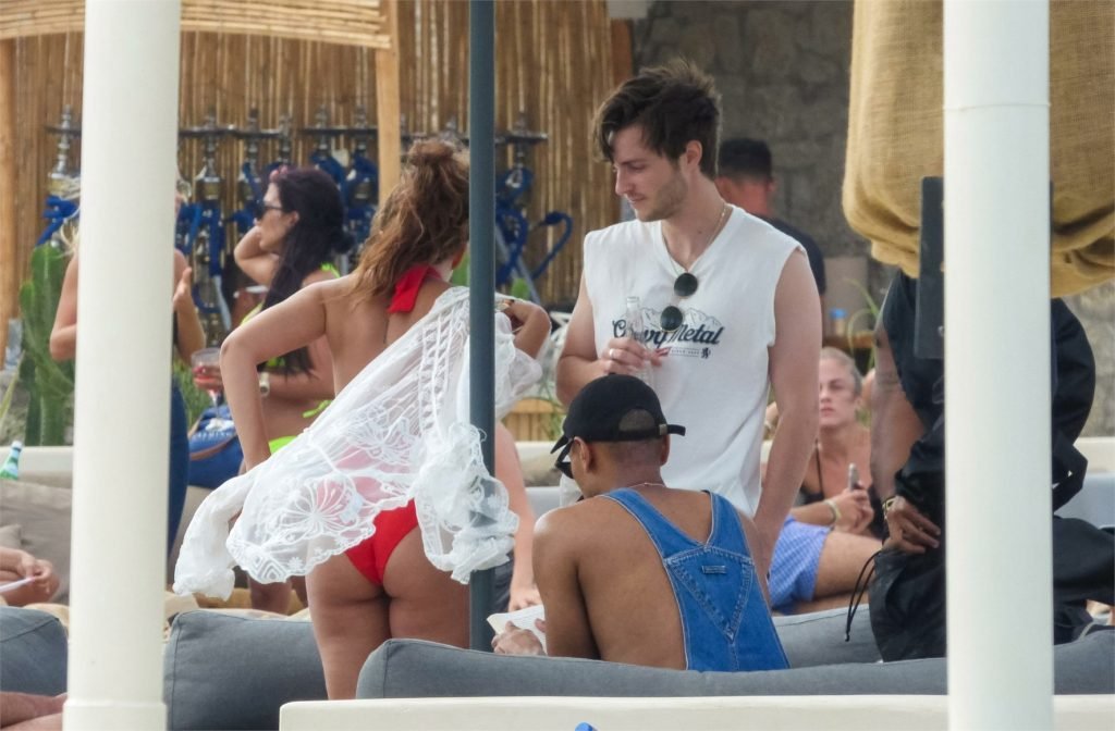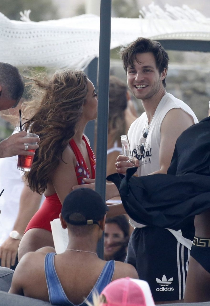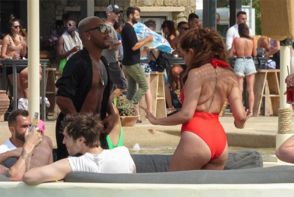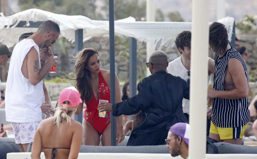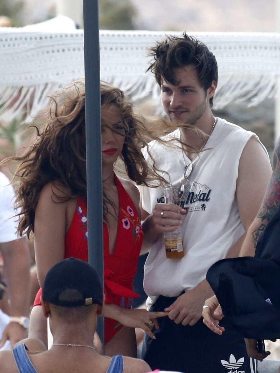 Curvilínea Jade Thirlwall fue vista con un traje de baño rojo mientras visitaba un bar en la playa con su novio Jed Elliott en Mykonos, Grecia, 04/08/2018. Jade Amelia Thirlwall es una cantante británica de 25 años (Little Mix), bailarina y estrella de televisión.