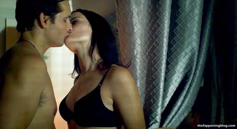 Jaimie Alexander is standing in a black bra as she kisses a guy and laughs while they fool around and then having him start to remove her bra before she’s seen having sex with him on top of her in a bed.
