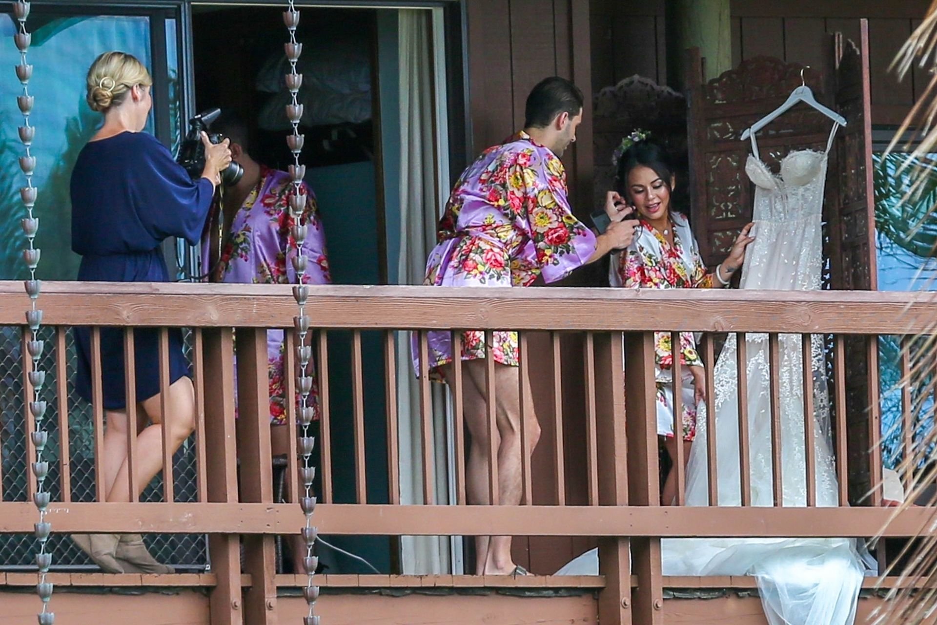 Janel Parrish de “Pretty Little Liars” fue vista preparándose para su boda con su novio de mucho tiempo, Chris Long. También se vio a Janel luciendo su vestido de Inbal Dror. Sus damas de honor fueron vistas terminando de broncearse, entre ellas Molly McCook de Last Man Standing y Lindsay Taylor, quien posó para una foto sexy sin parte superior antes de ponerse sus vestidos.