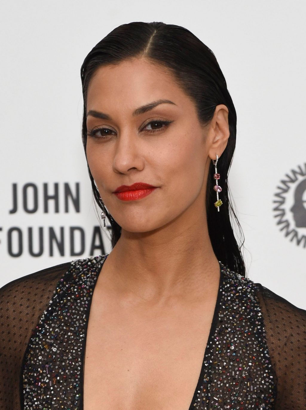 La actriz y cantante estadounidense Janina Gavankar fue fotografiada con un vestido transparente en la Fiesta de Visualización de los Oscar de la Elton John AIDS Foundation, Los Ángeles, 02/09/2020.