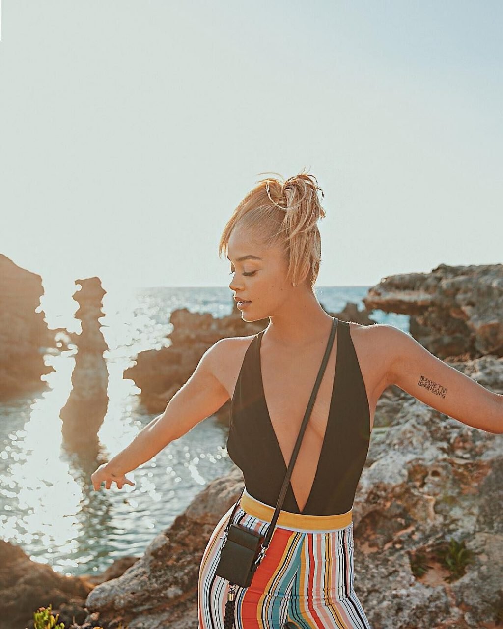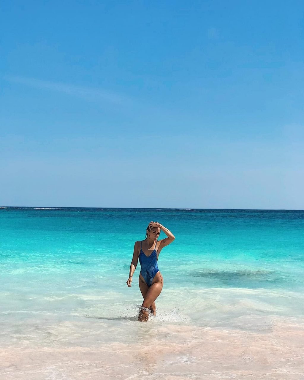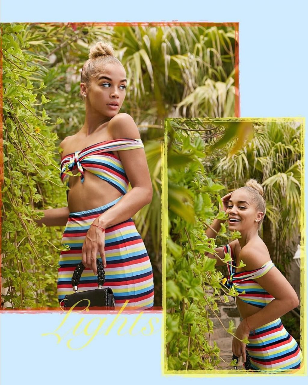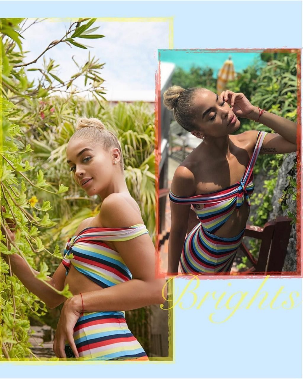 Jasmine Sanders disfruta de los días calurosos con bikinis sexys durante el Evento de Verano Revolve en Bermuda, 17/07/2018. Jasmine Sanders, también conocida como Golden Barbie, es una modelo alemana de 27 años y estrella de Instagram (3 millones de seguidores).