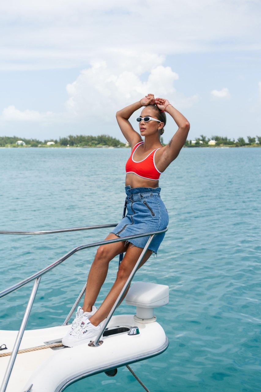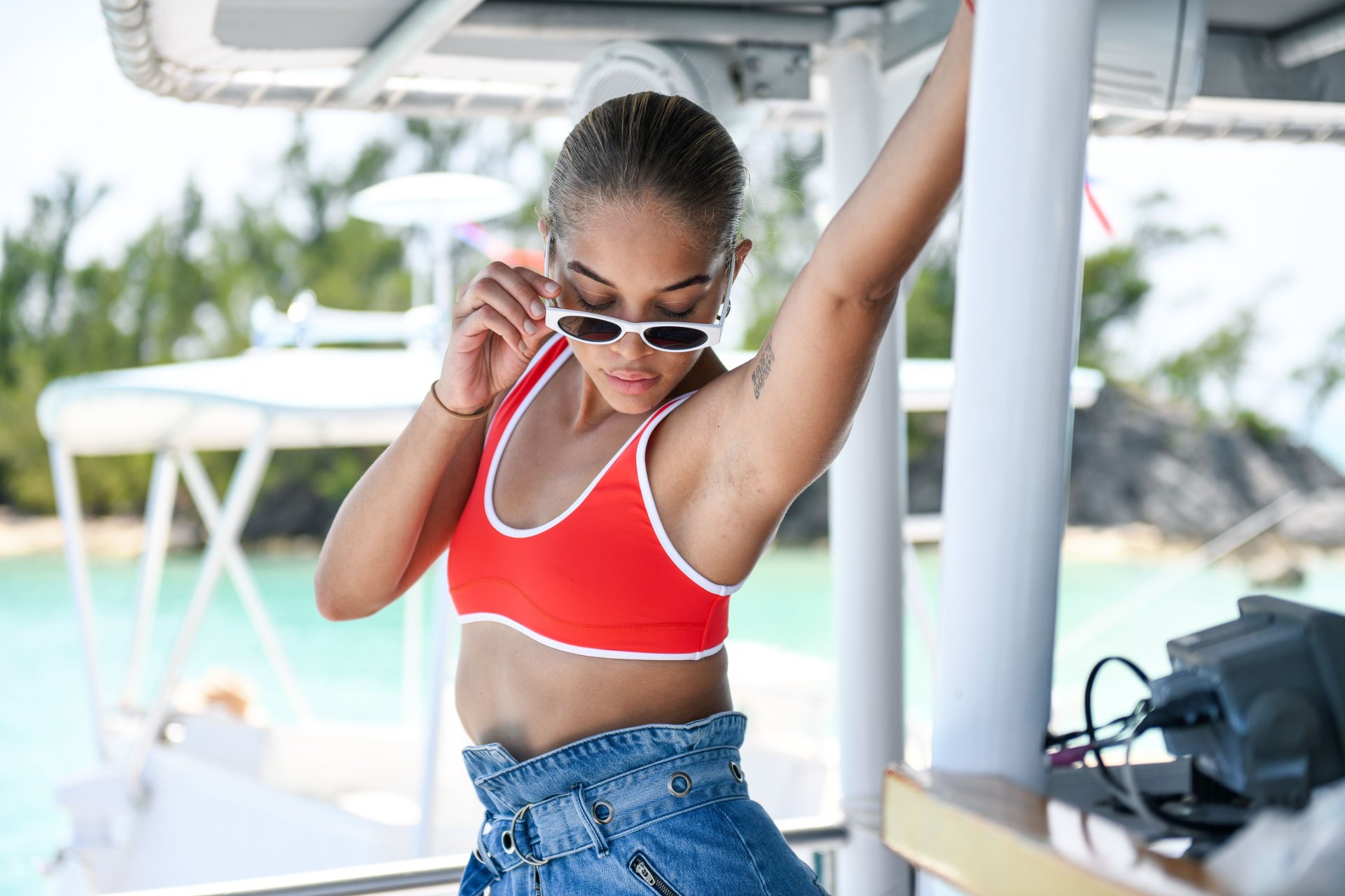 Jasmine Sanders disfruta de los días calurosos con bikinis sexys durante el Evento de Verano Revolve en Bermuda, 17/07/2018. Jasmine Sanders, también conocida como Golden Barbie, es una modelo alemana de 27 años y estrella de Instagram (3 millones de seguidores).