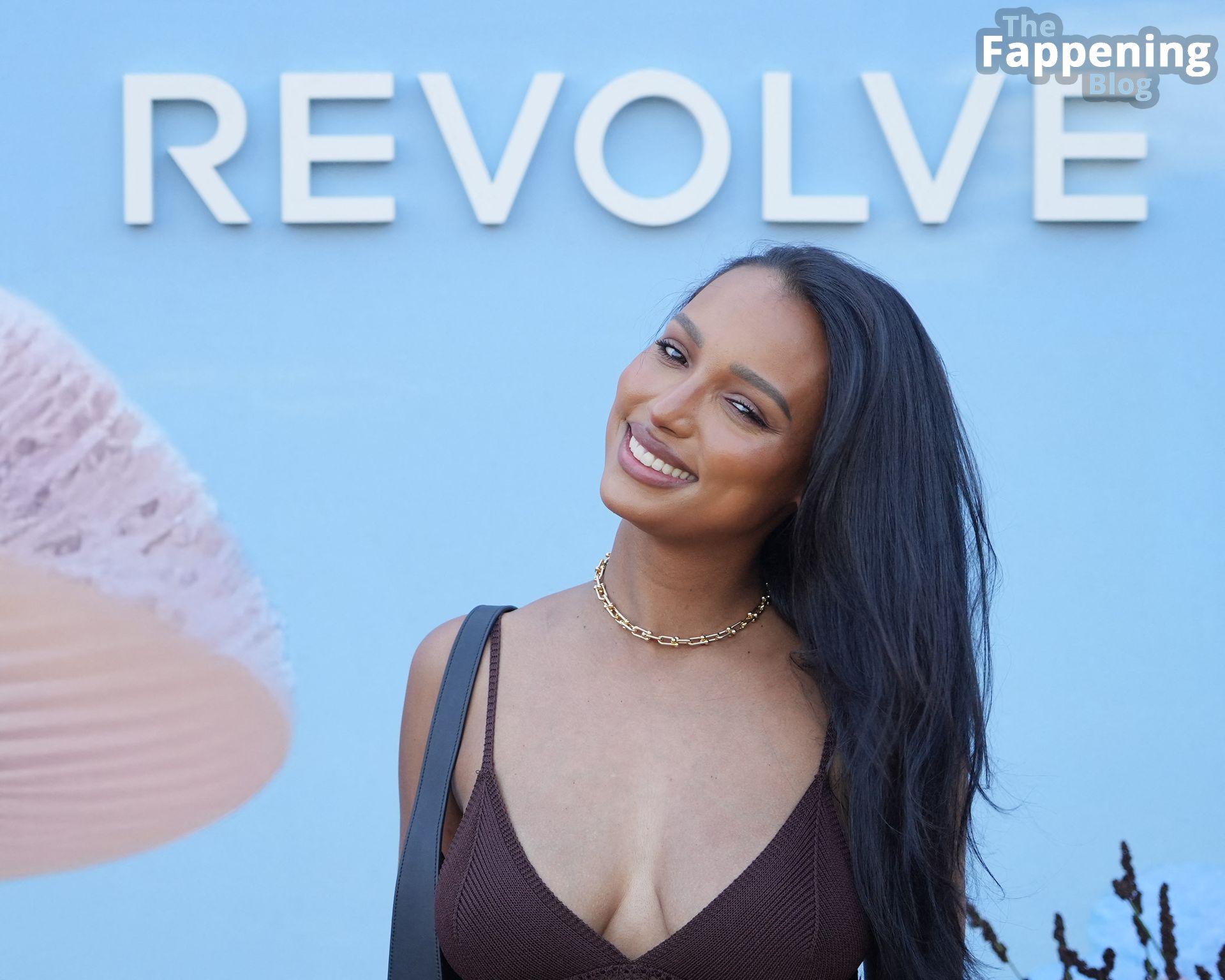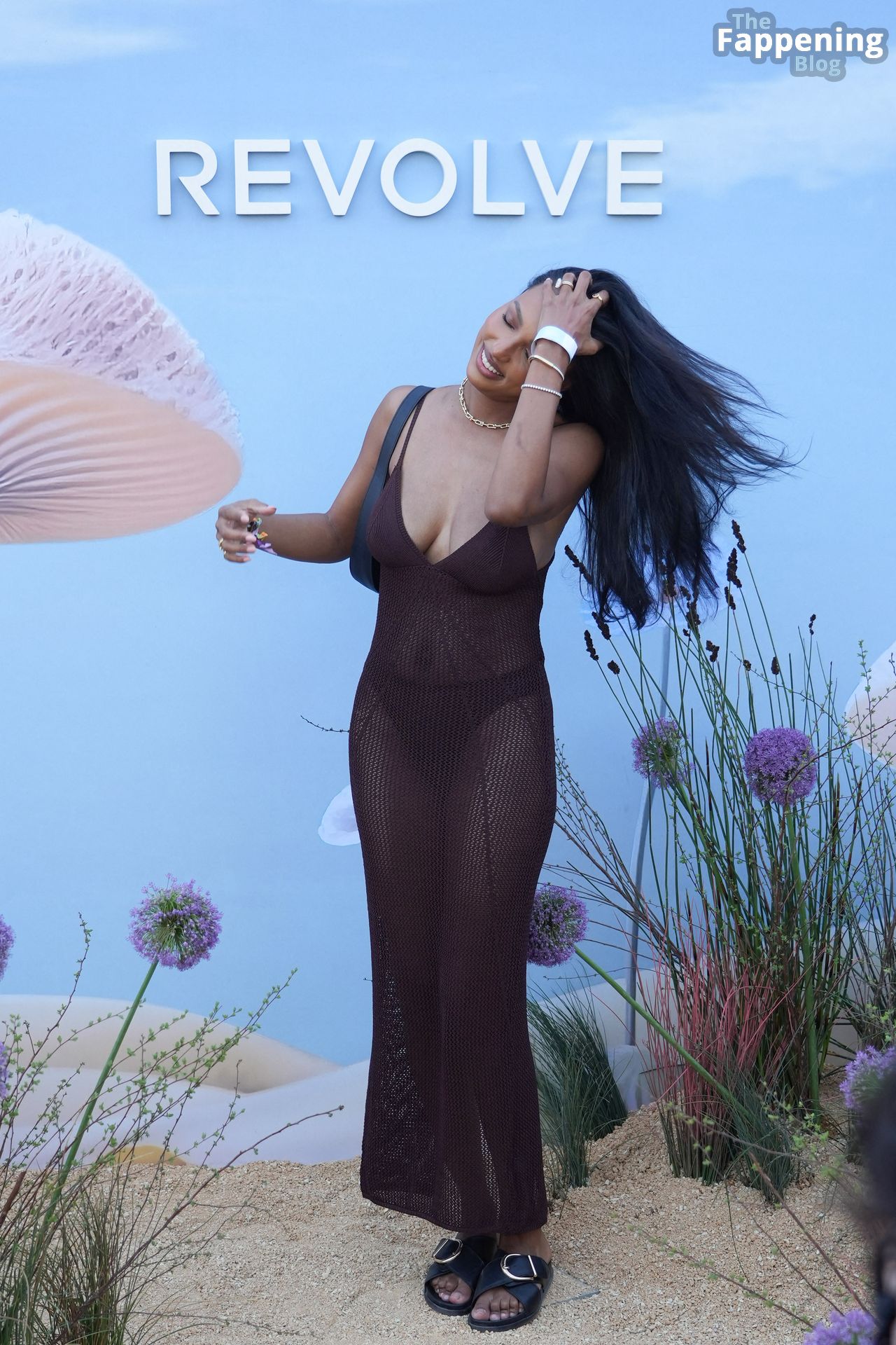 Maldita sea, Jasmine Tookes, la supermodelo, estaba impresionante en el Festival Revolve en Coachella con su vestido maxi cubriéndose sobre su bikini, 15/04/2023.
