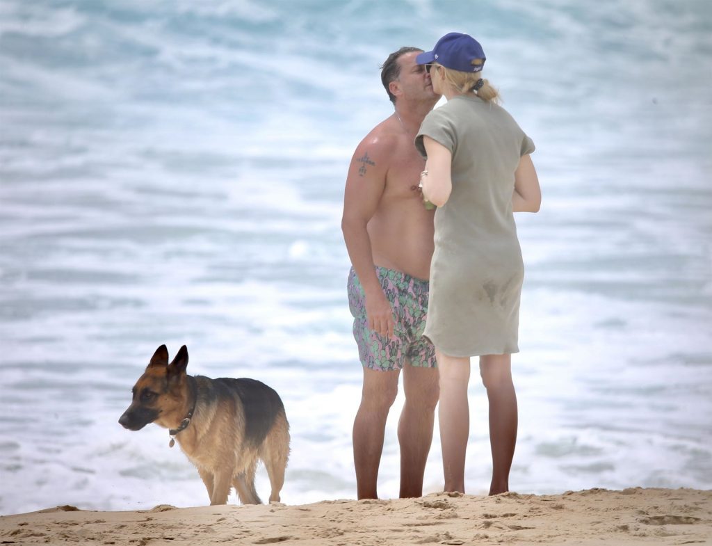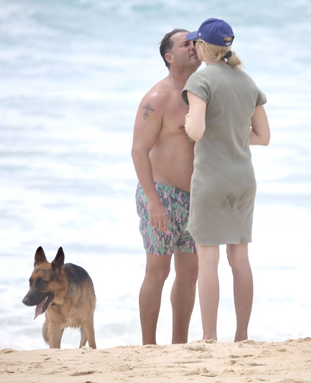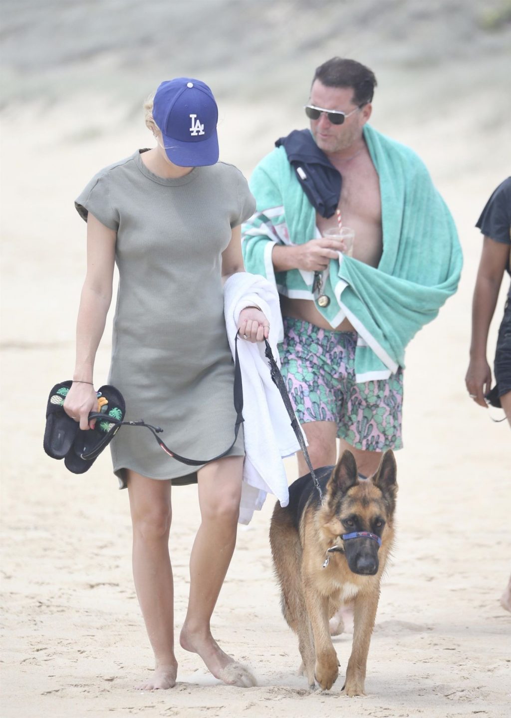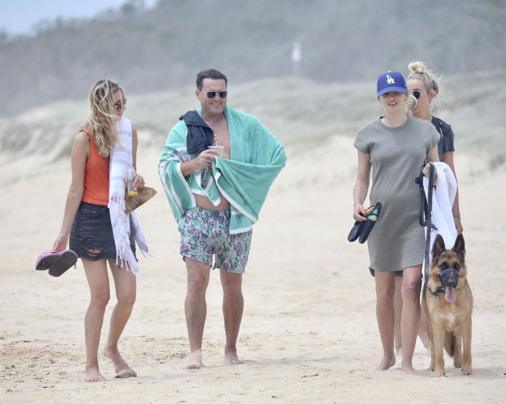 Karl Stefanovic y Jasmine Yarbrough disfrutan de un día en la playa en Noosa, 30/12/2019. Yasmine mostraba su barriga de embarazada con un vestido verde ajustado, Karl parece haber perdido su enorme barriga.
