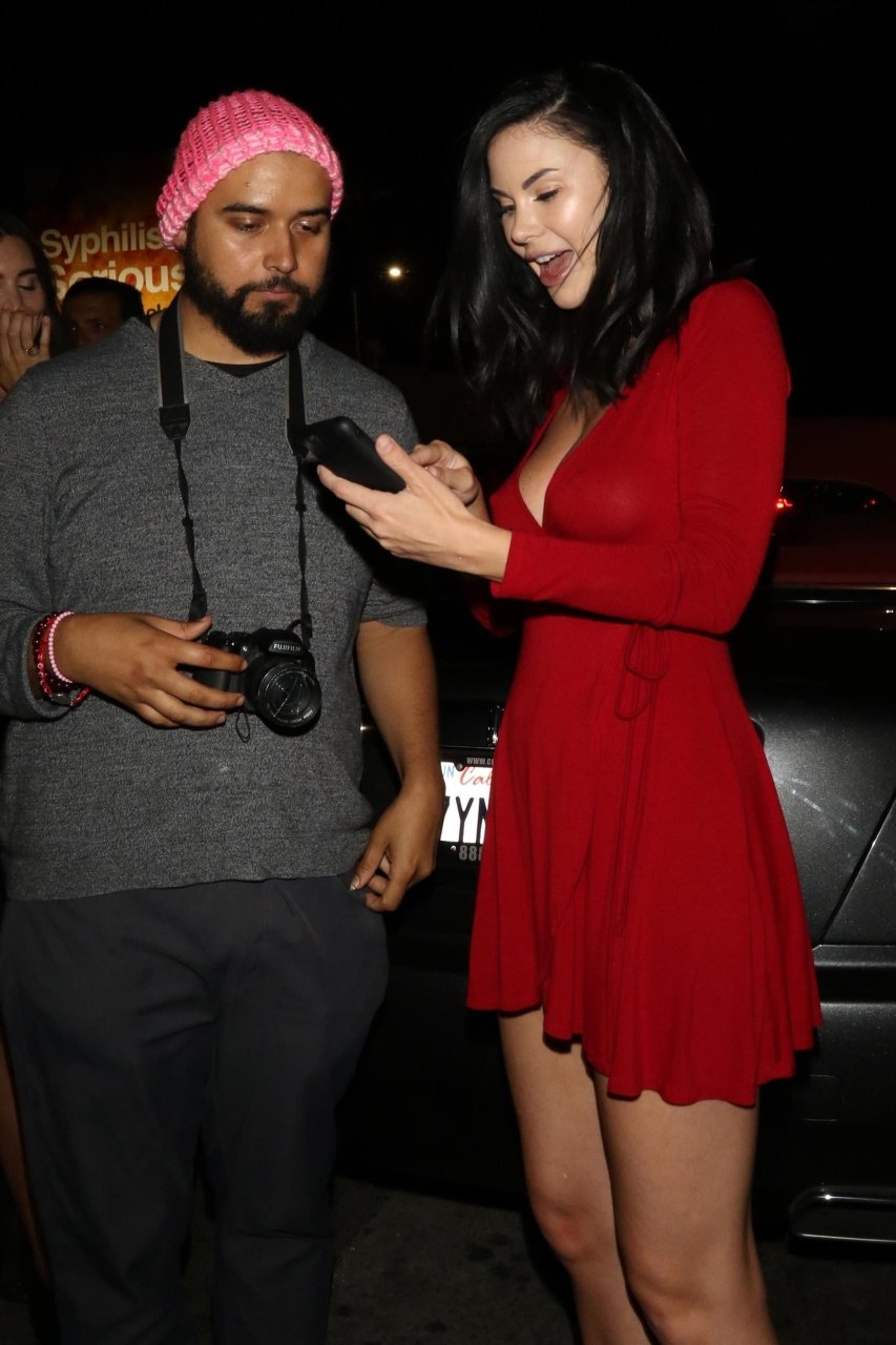 Modelo de Playboy, Jayde Nicole sorprende a la multitud al mostrar sus pechos desnudos a las cámaras después de una noche en el Warwick en Hollywood, 11/04/2018. Jayde Nicole es una modelo y actriz canadiense. Edad: 32 años.
