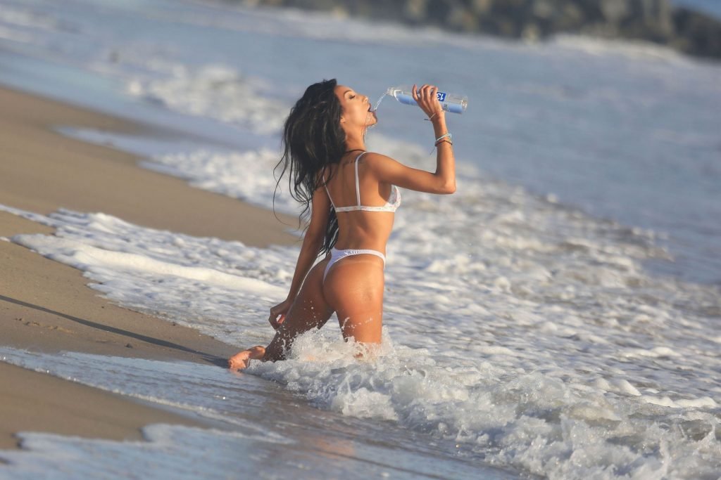 America’s Next Top Model, la minneapolitana de 24 años Jeana Turner se vuelve a poner su peluca y muestra su sexy cuerpo en bikini en el set de una sesión de fotos para 138 Water en Santa Mónica, 14/11/2018.