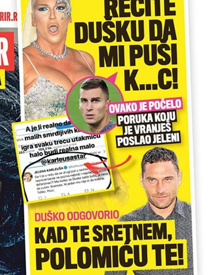 El futbolista bosnio, Ognjen Vranjes, parece haber tenido sexo cibernético (al menos) a través de FaceTime con una de las cantantes más famosas de Serbia, Jelena Karleuša. Ella está casada con Duško Tošić, futbolista serbio, quien encontró la foto y el video desnudos de su esposa.