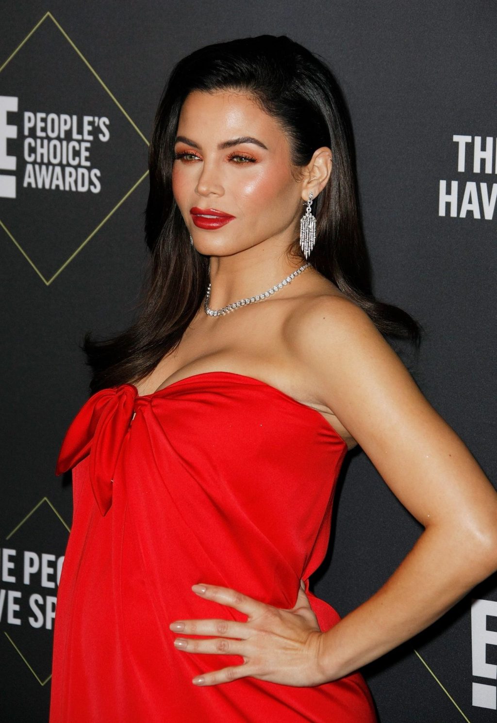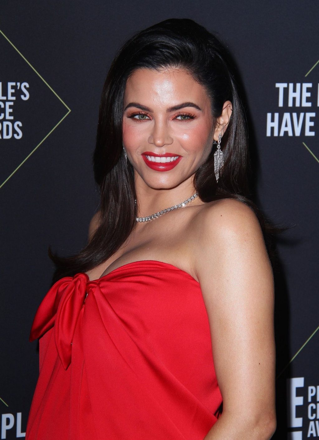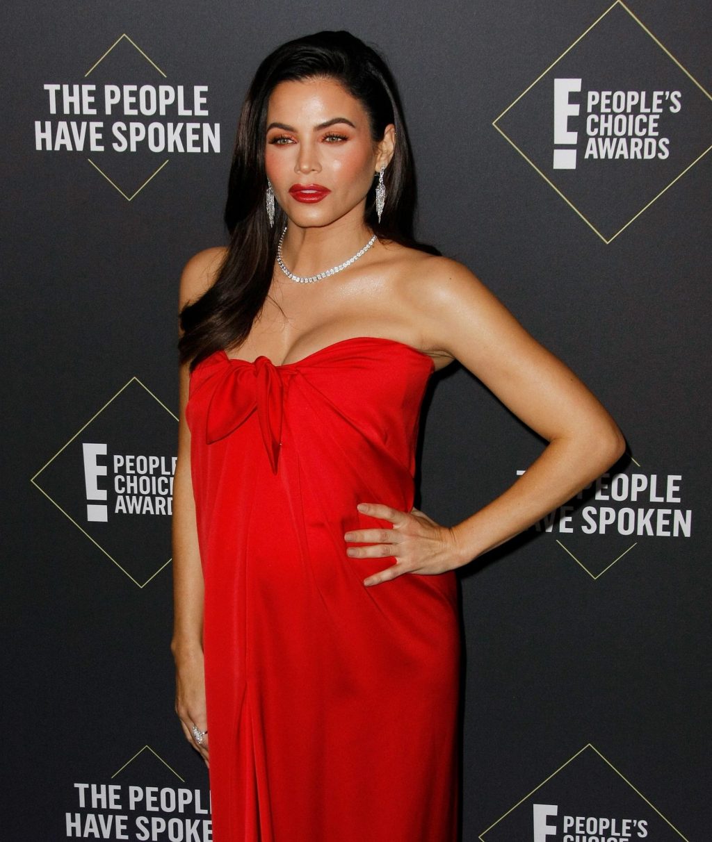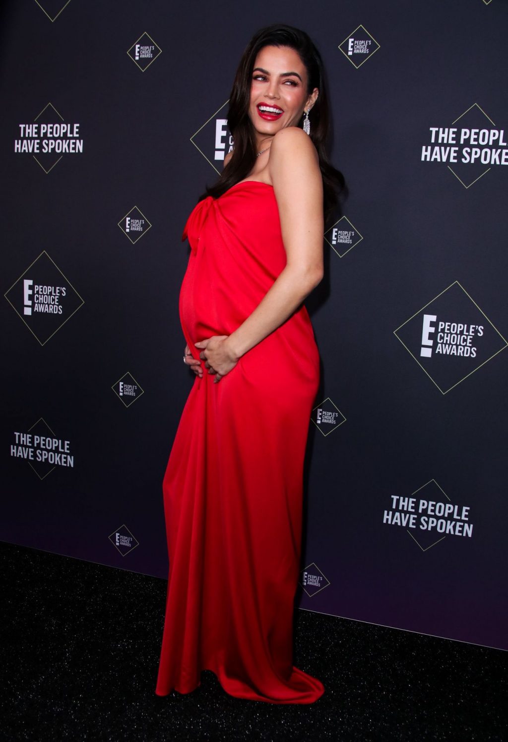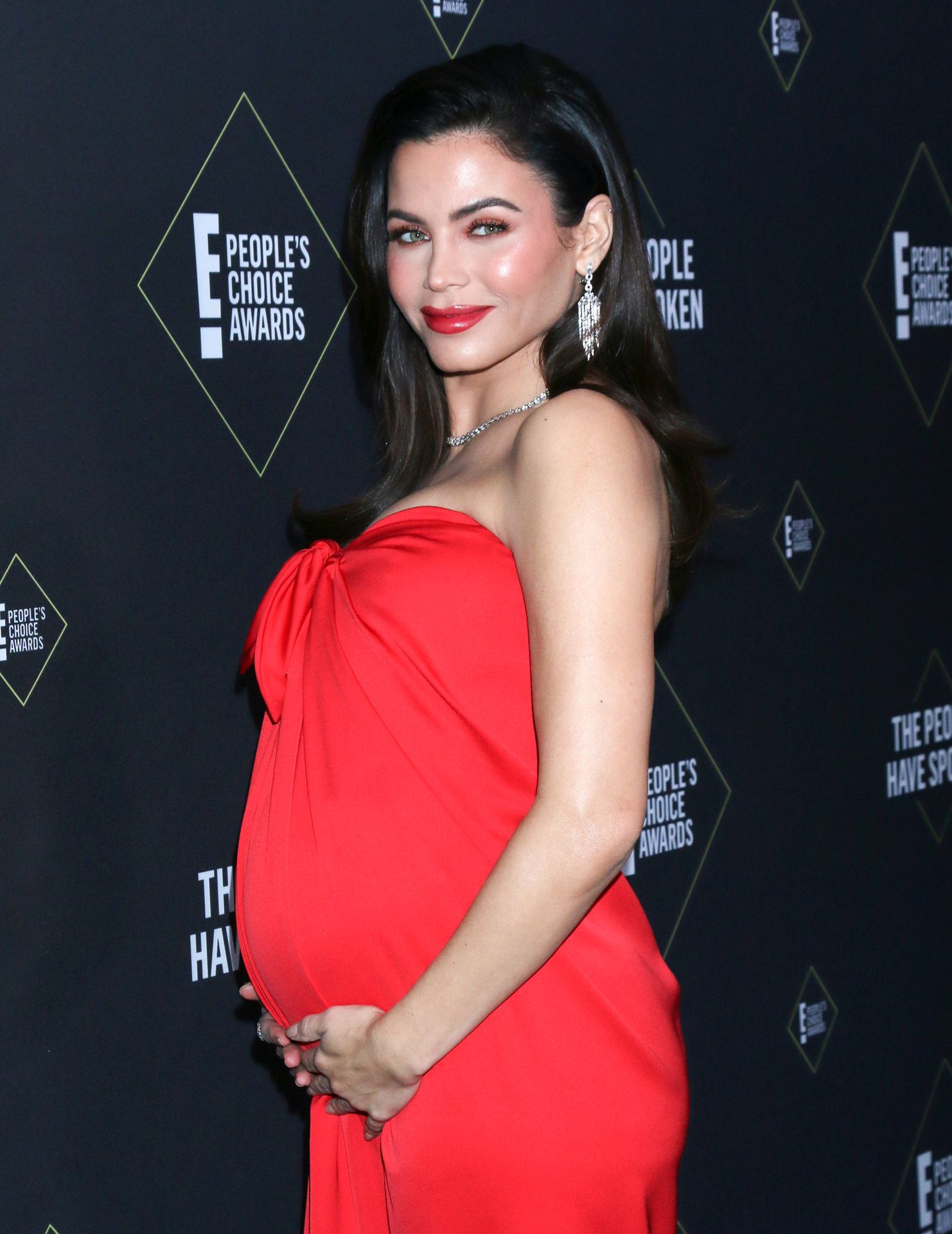 Jenna Dewan embarazada posa con un vestido rojo en la sala de prensa durante los Premios People’s Choice 2019 de E! en Barker Hangar en Santa Mónica, 10/11/2019.