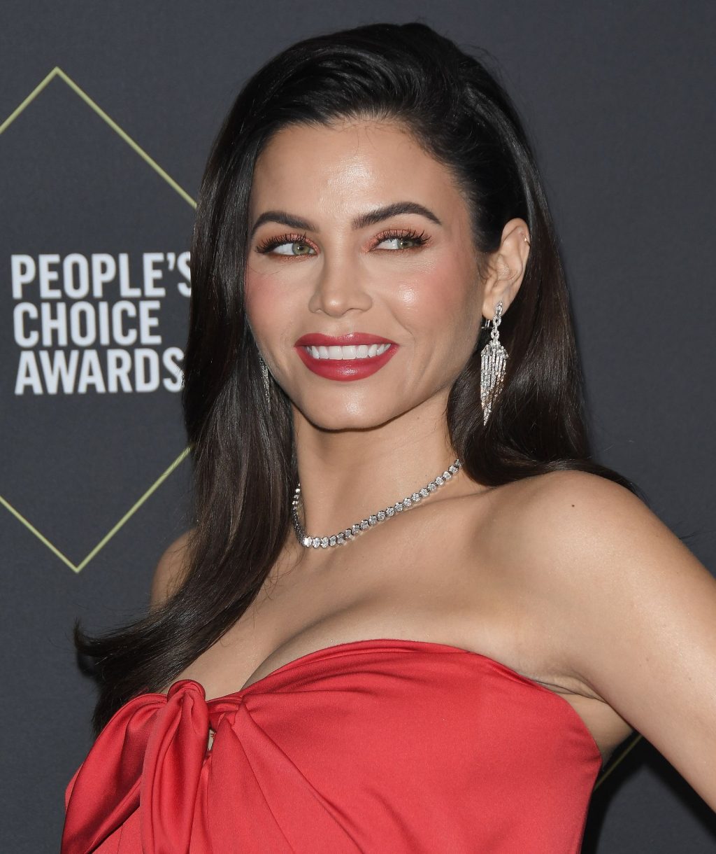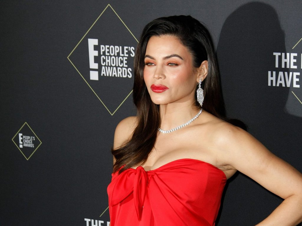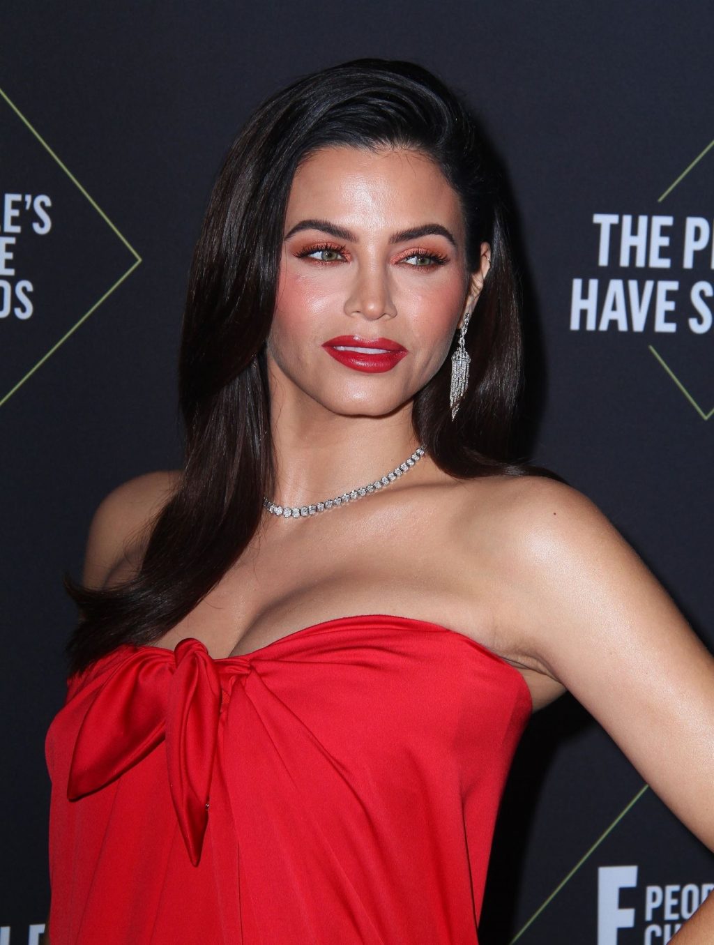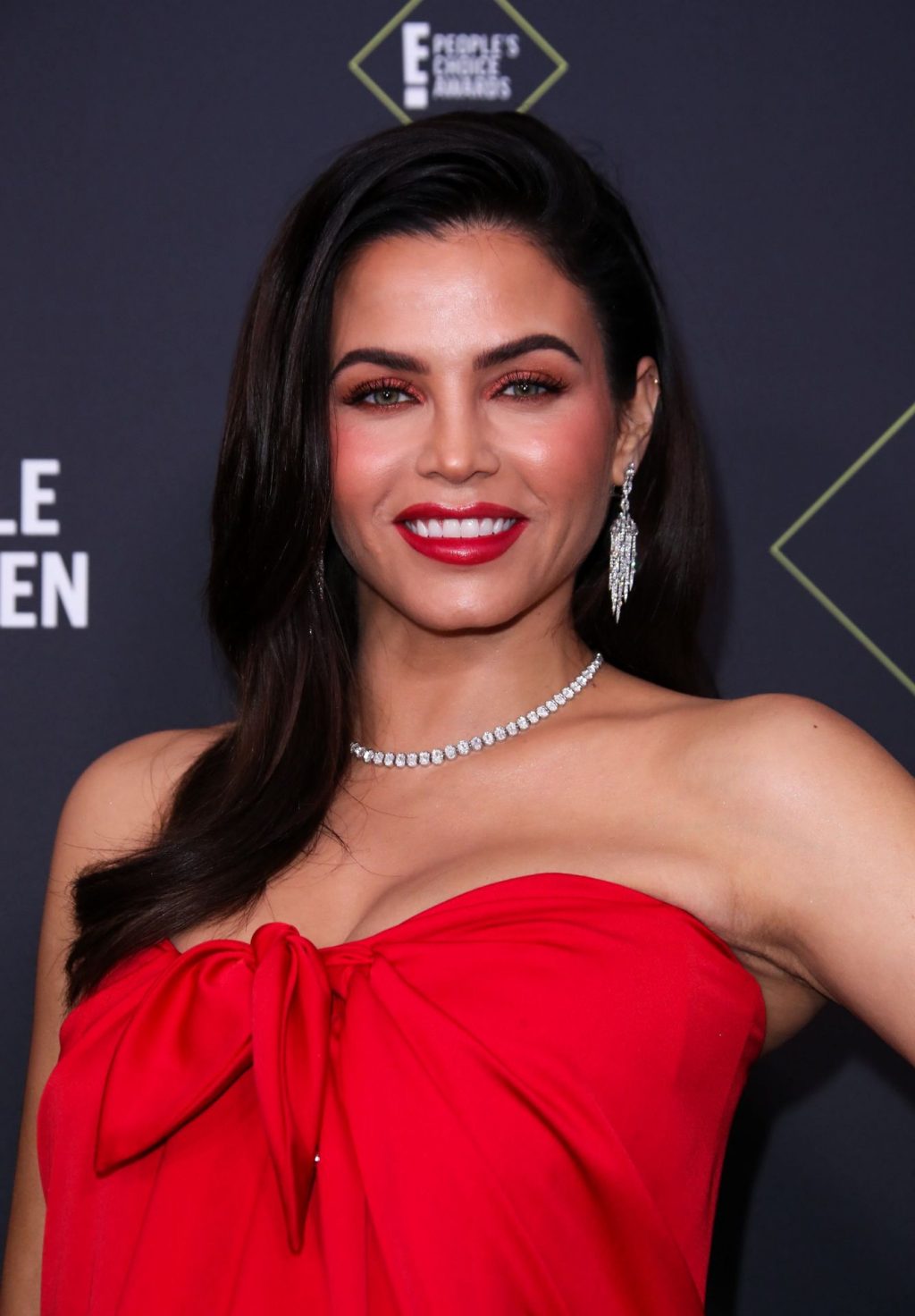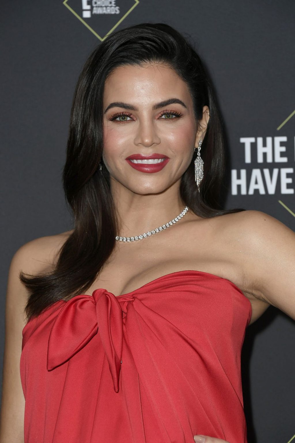 Jenna Dewan embarazada posa con un vestido rojo en la sala de prensa durante los Premios People’s Choice 2019 de E! en Barker Hangar en Santa Mónica, 10/11/2019.