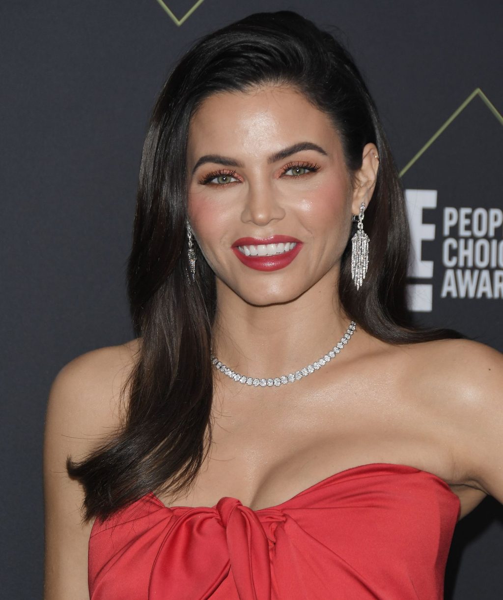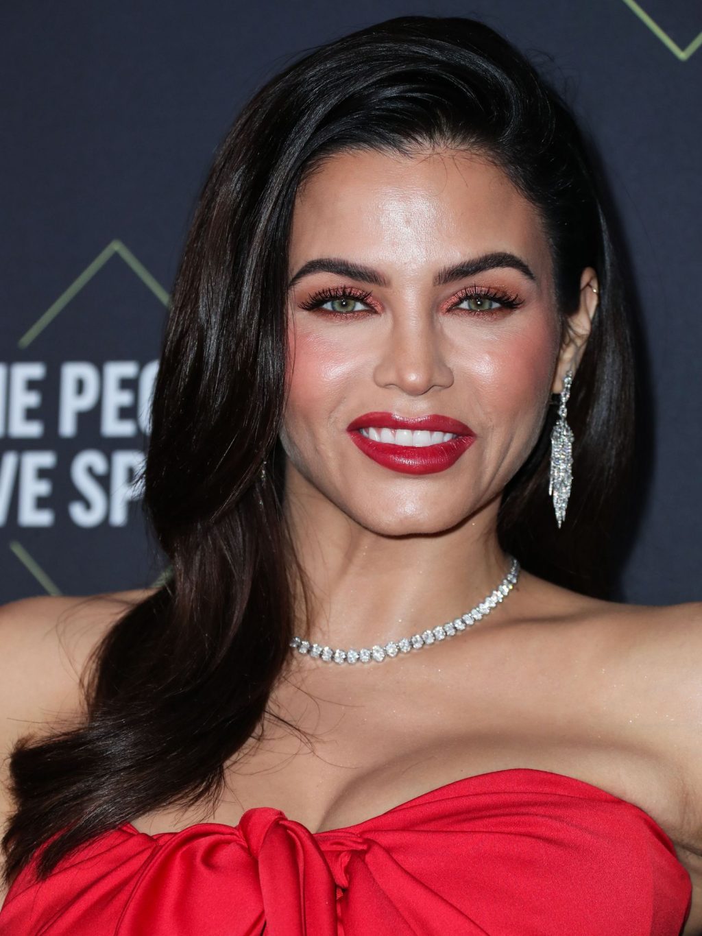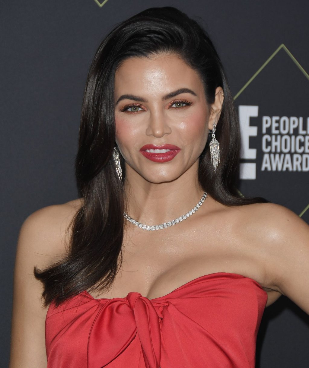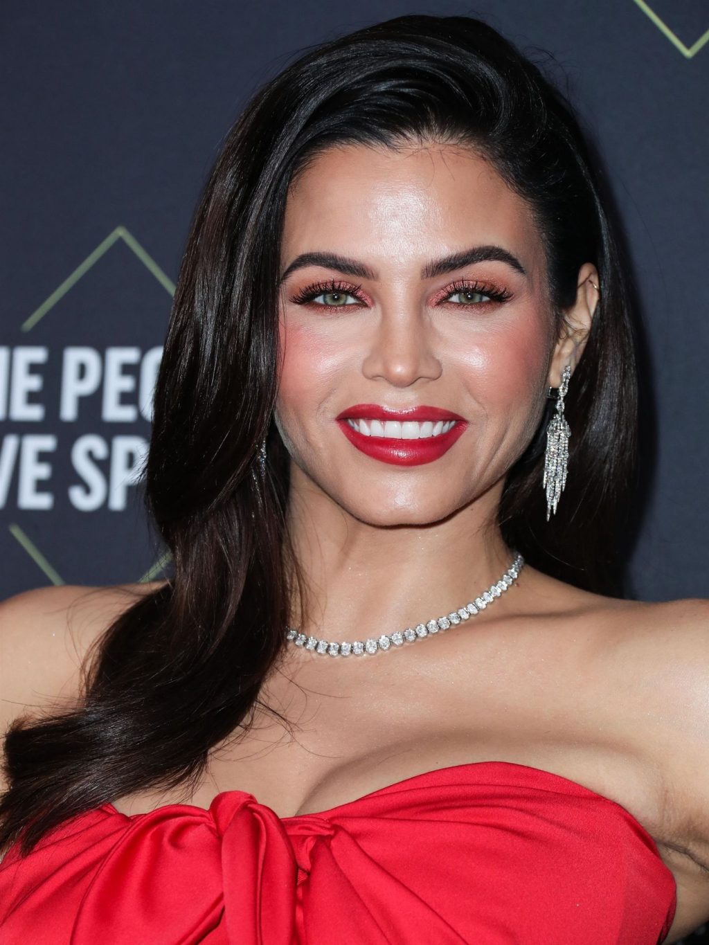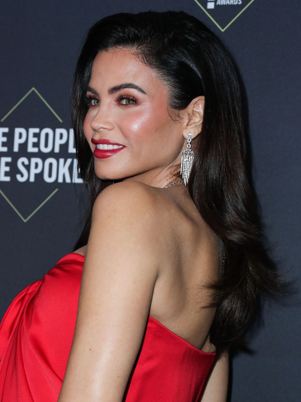 Jenna Dewan embarazada posa con un vestido rojo en la sala de prensa durante los Premios People’s Choice 2019 de E! en Barker Hangar en Santa Mónica, 10/11/2019.