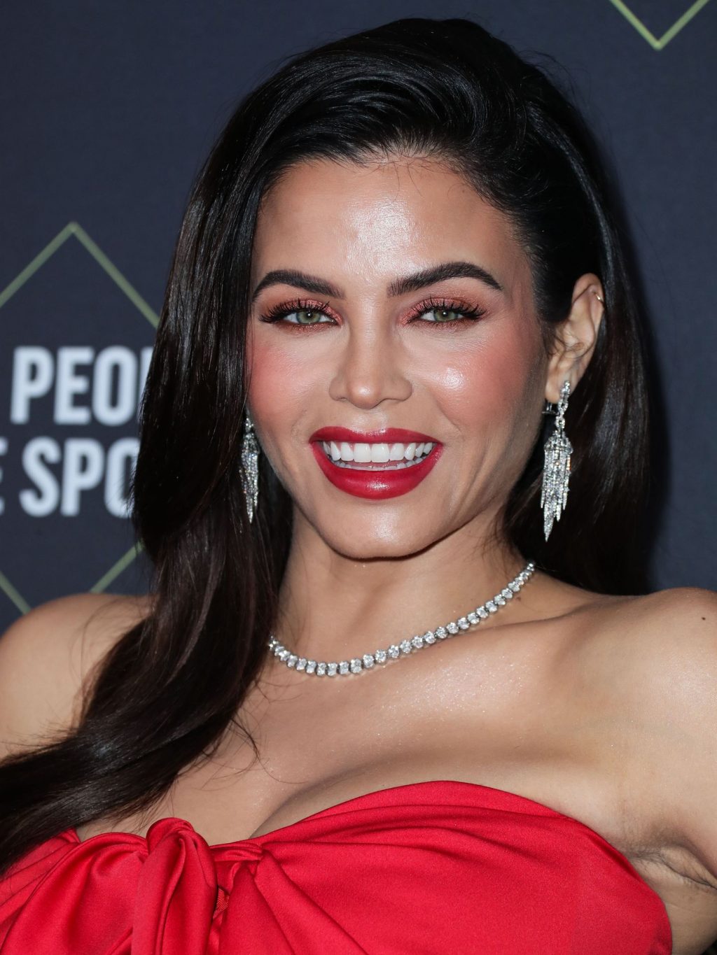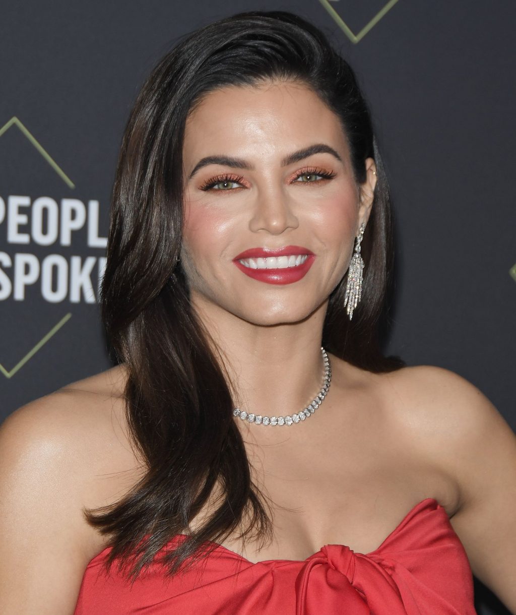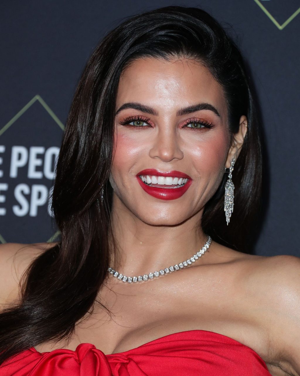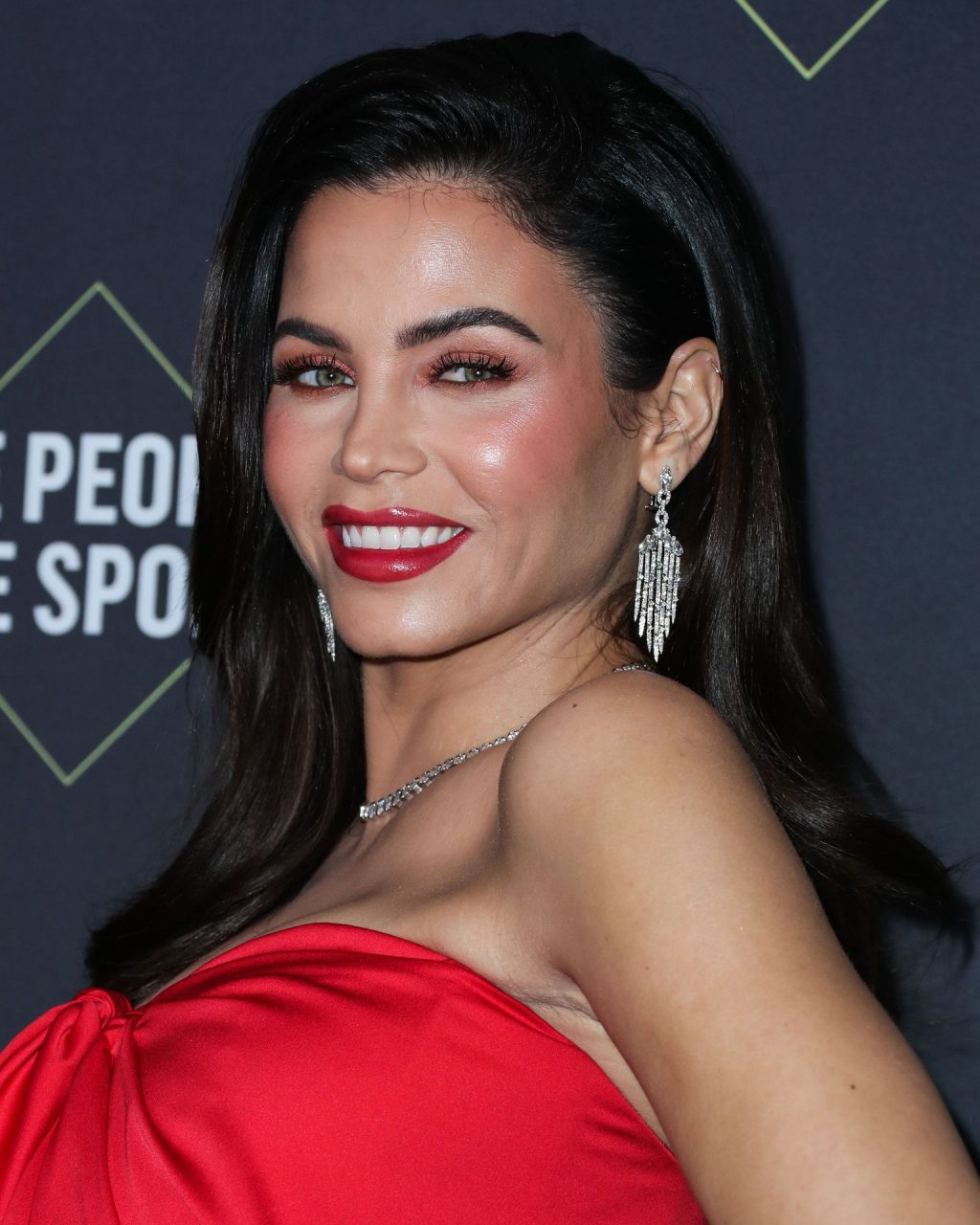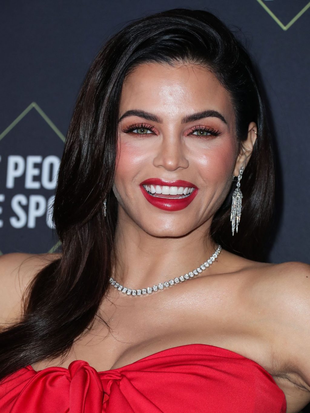Jenna Dewan embarazada posa con un vestido rojo en la sala de prensa durante los Premios People’s Choice 2019 de E! en Barker Hangar en Santa Mónica, 10/11/2019.