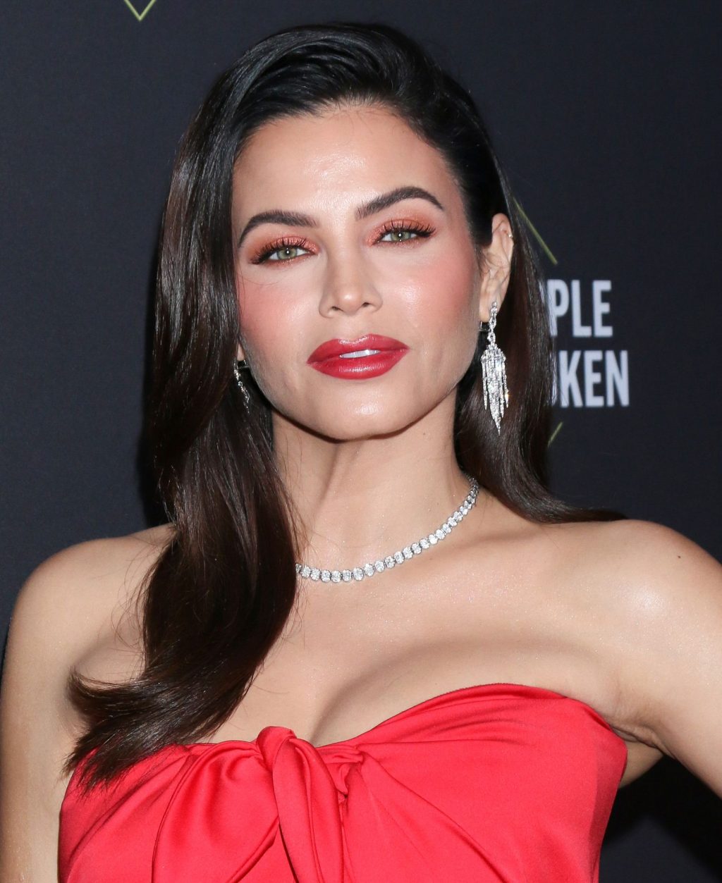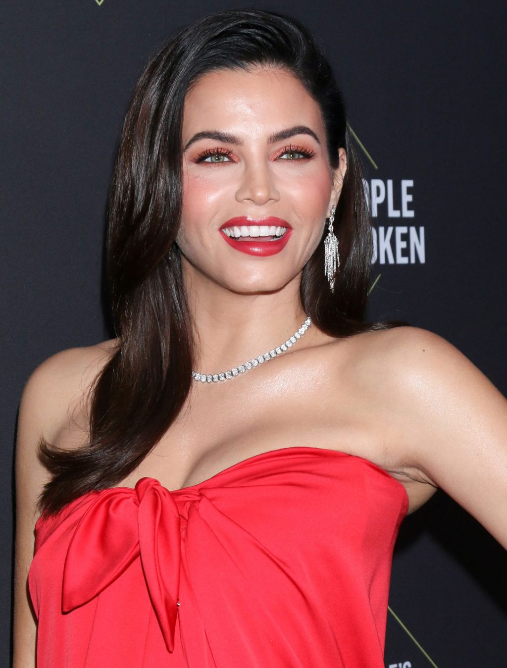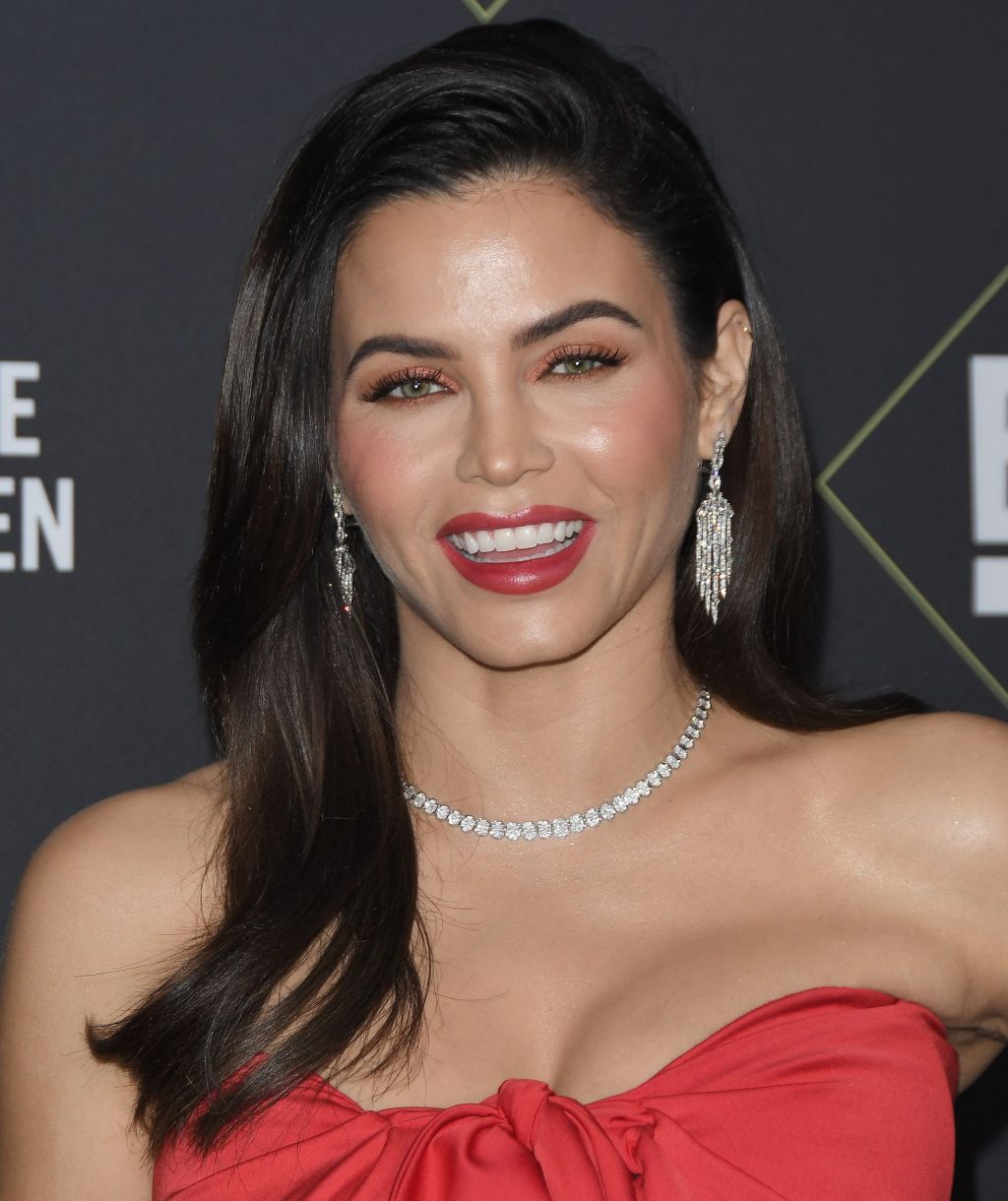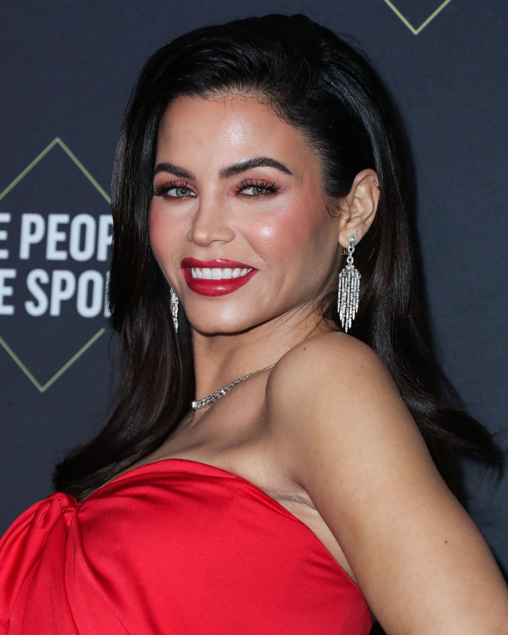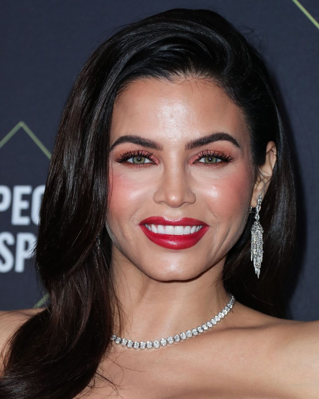 Jenna Dewan embarazada posa con un vestido rojo en la sala de prensa durante los Premios People’s Choice 2019 de E! en Barker Hangar en Santa Mónica, 10/11/2019.