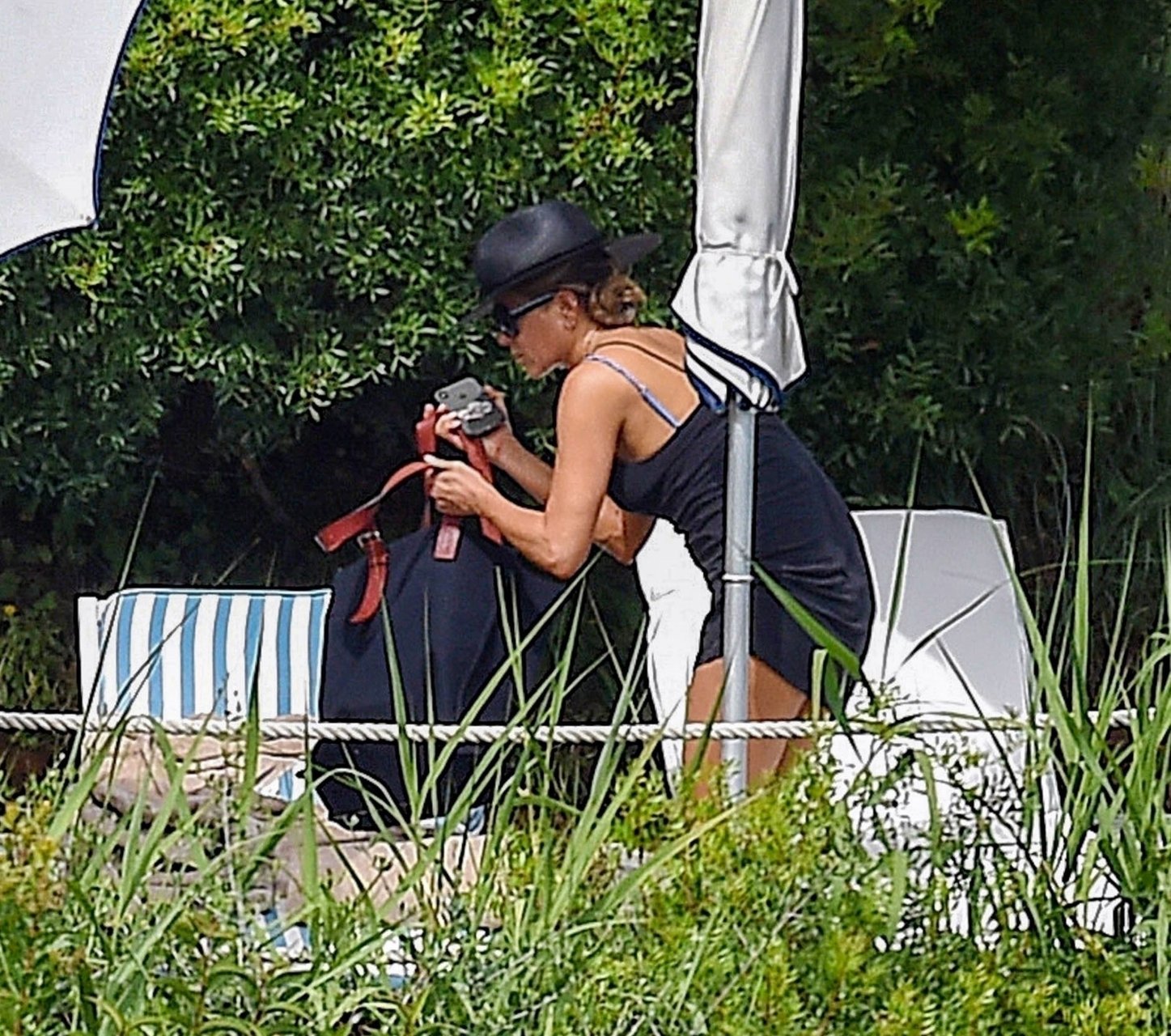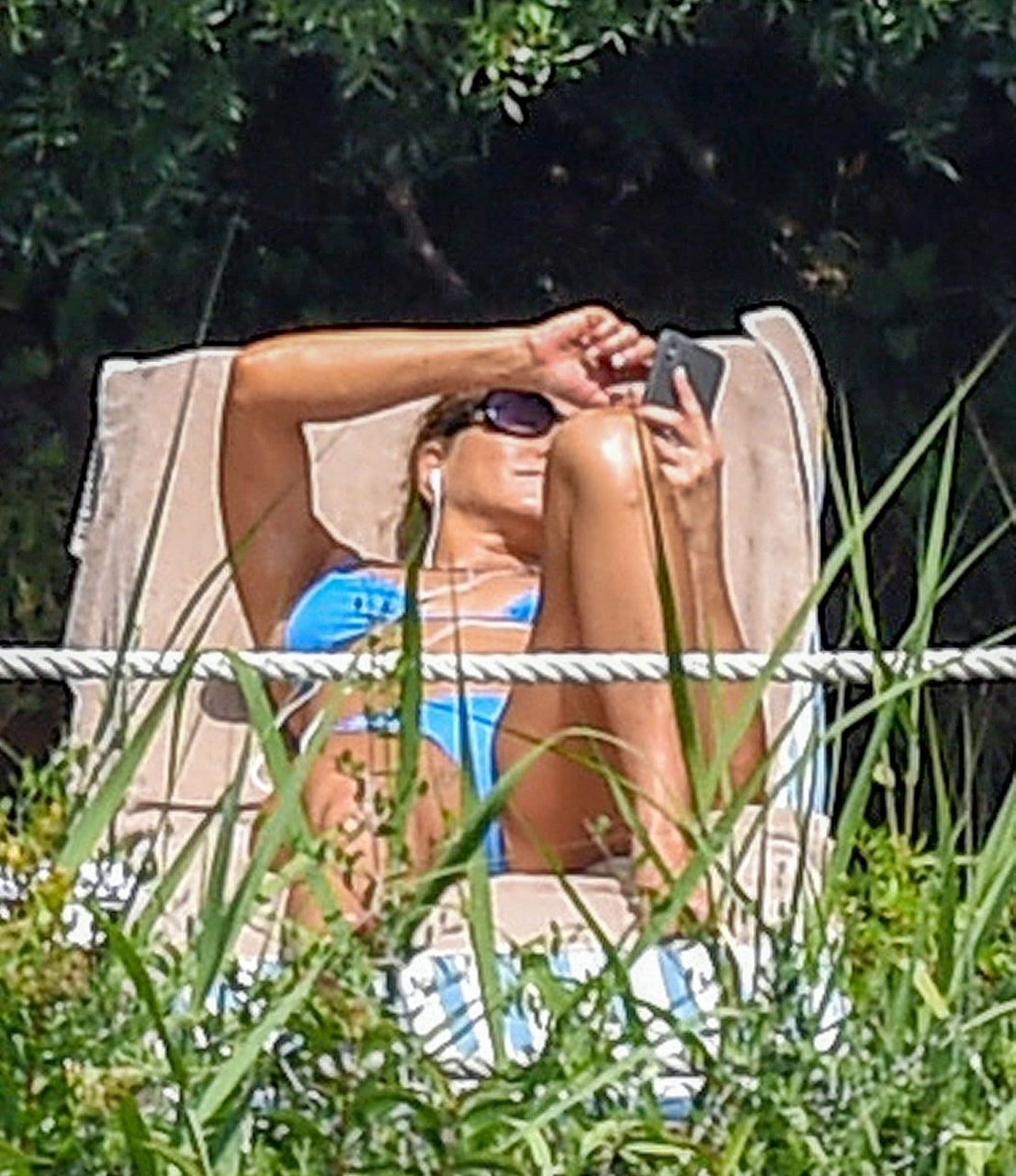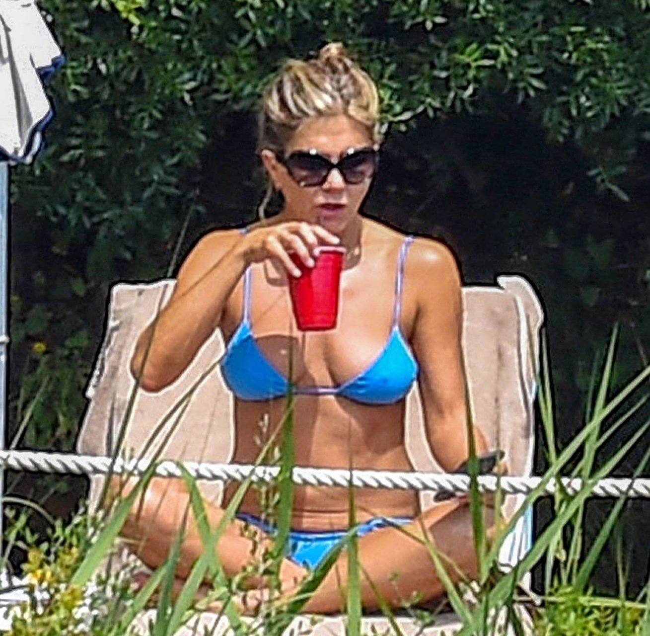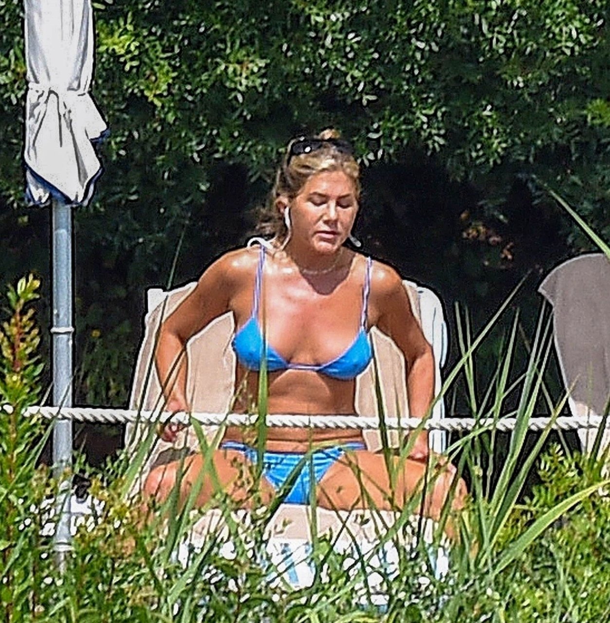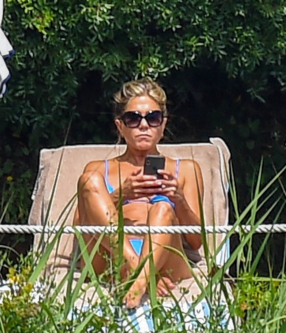 La actriz estadounidense Jennifer Aniston (49) muestra su cuerpo tonificado en bikini mientras es fotografiada relajándose junto a la piscina en Portofino antes de que comiencen las filmaciones de su nueva película “Murder Mystery”, 22/07/2018.