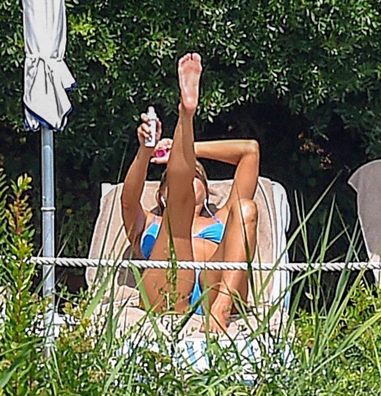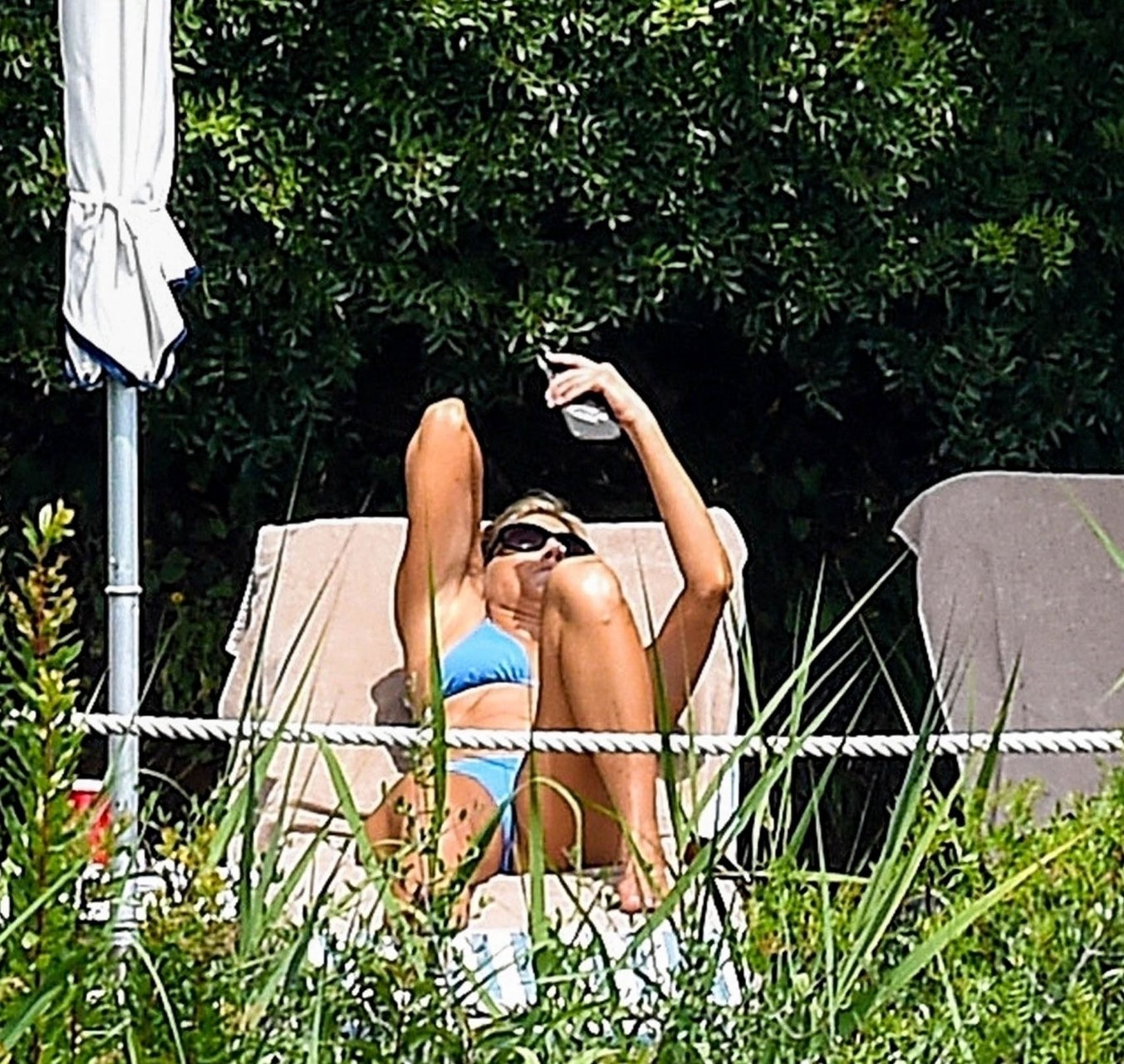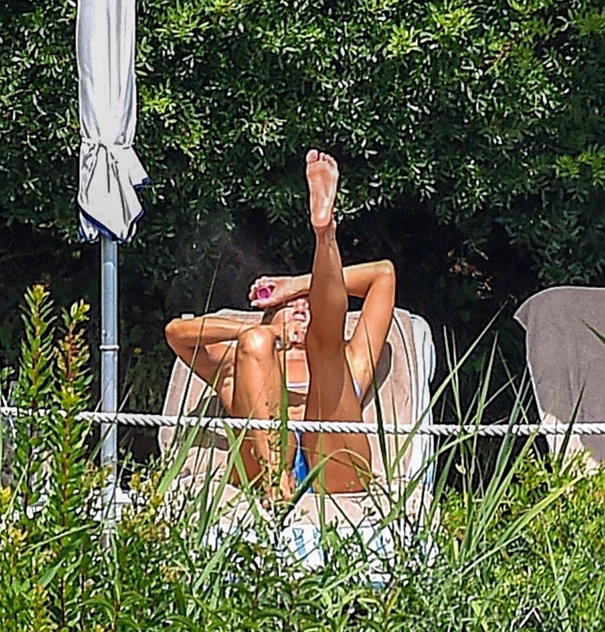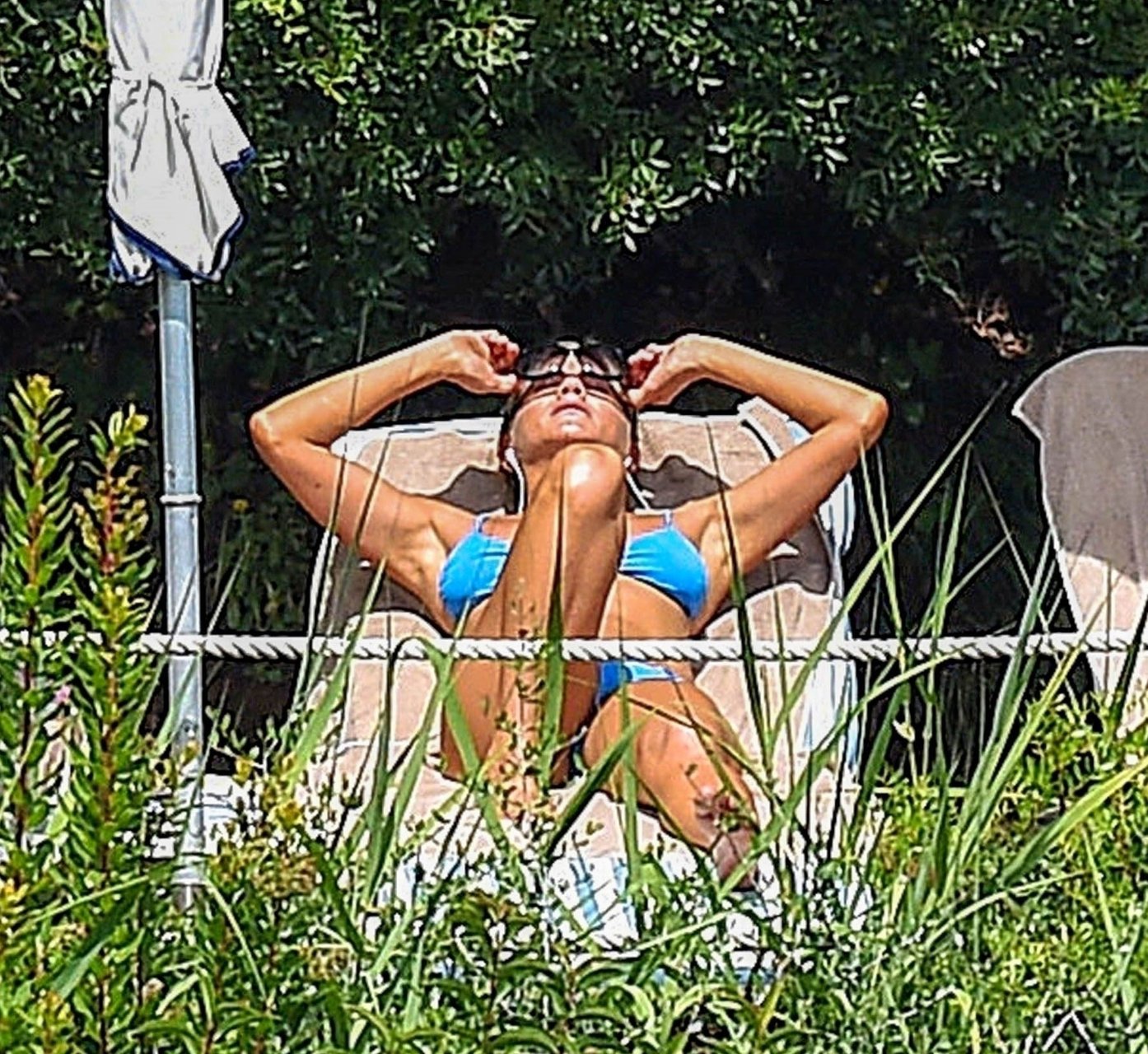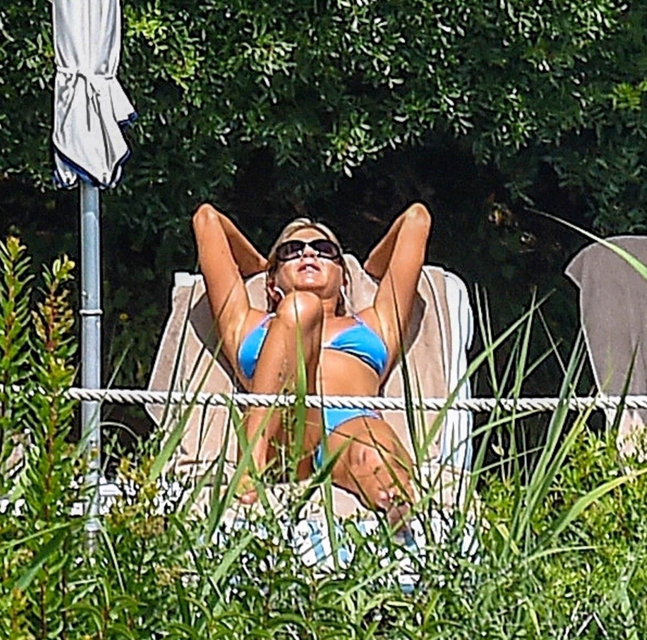 La actriz estadounidense Jennifer Aniston (49) muestra su cuerpo tonificado en bikini mientras es fotografiada relajándose junto a la piscina en Portofino antes de que comiencen las filmaciones de su nueva película “Murder Mystery”, 22/07/2018.