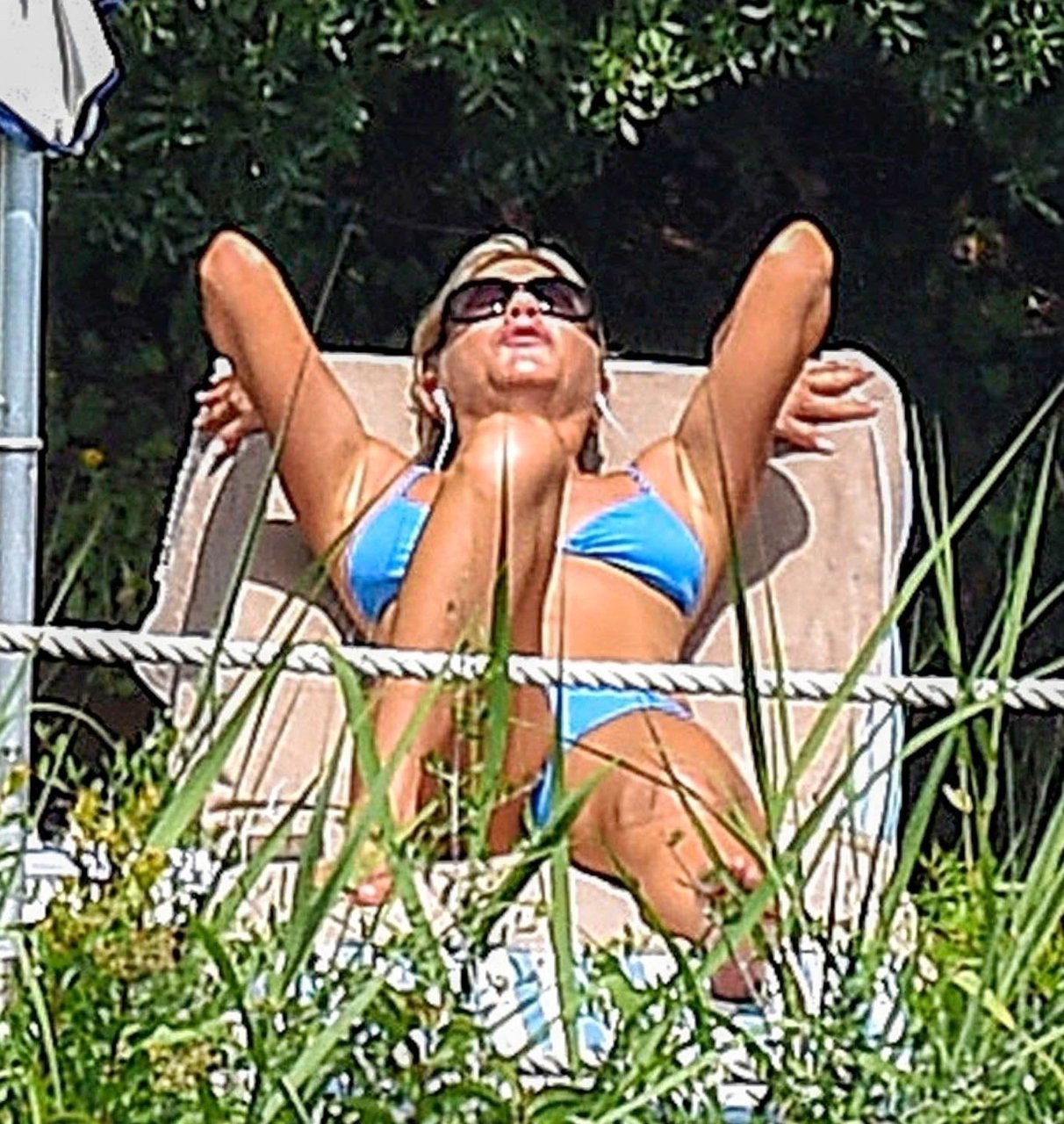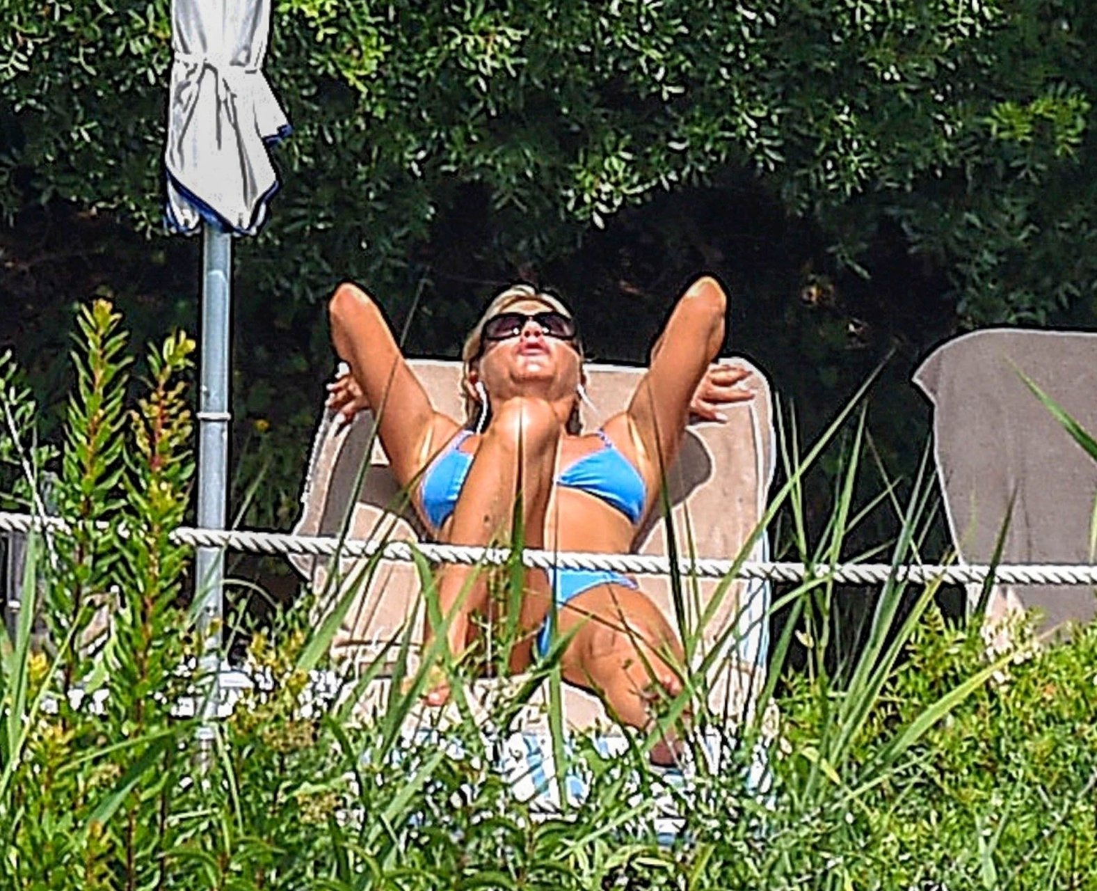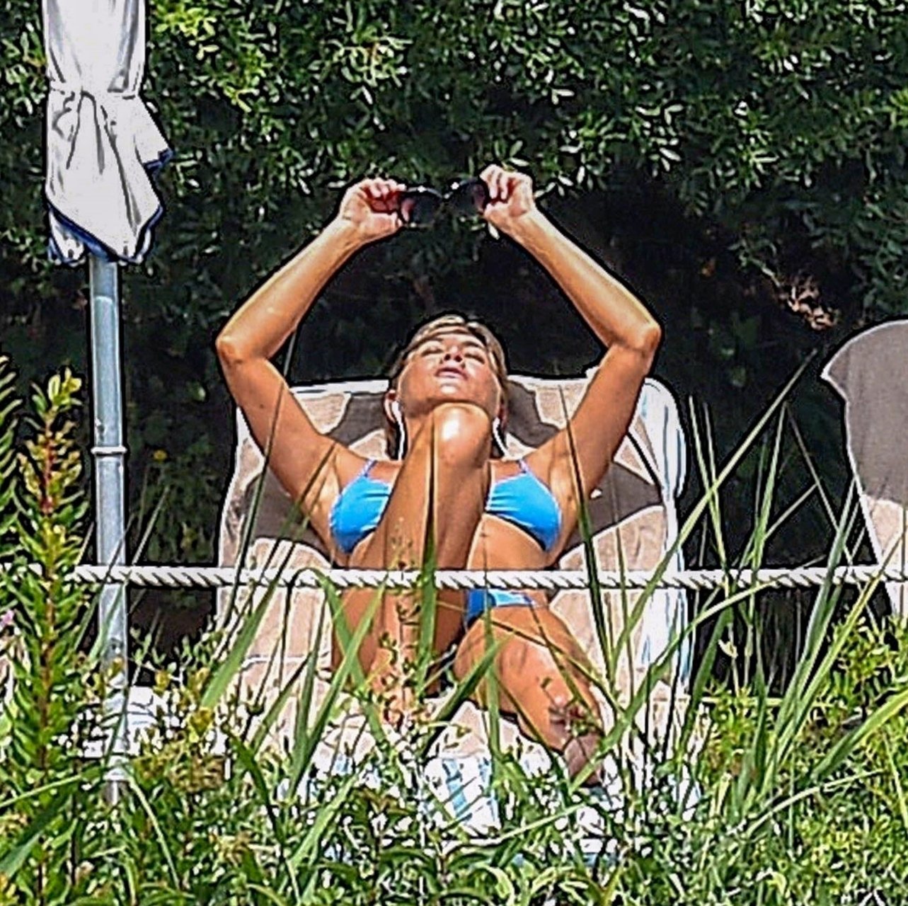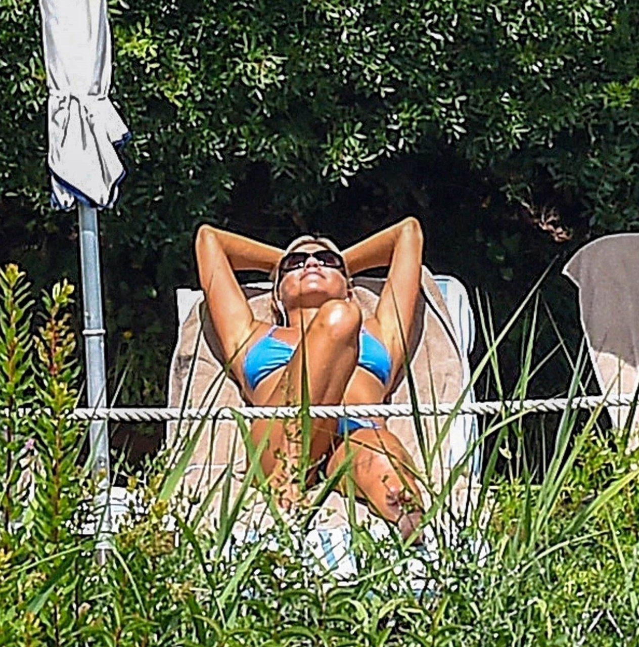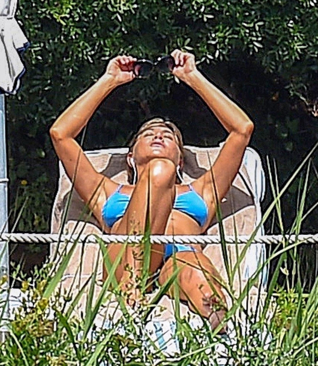 La actriz estadounidense Jennifer Aniston (49) muestra su cuerpo tonificado en bikini mientras es fotografiada relajándose junto a la piscina en Portofino antes de que comiencen las filmaciones de su nueva película “Murder Mystery”, 22/07/2018.