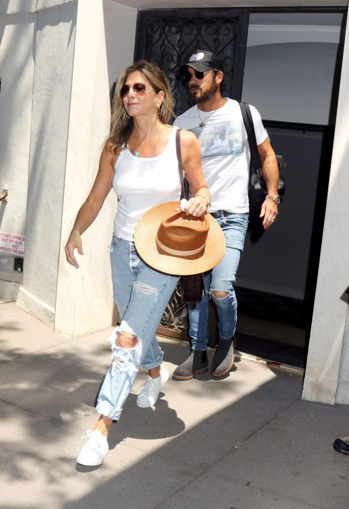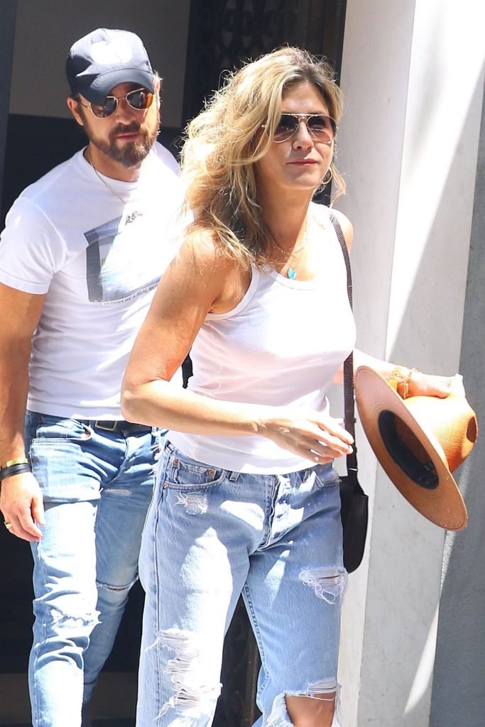 Jennifer Aniston fue vista en Nueva York, 19/07/2017. Jennifer Aniston es una actriz estadounidense (The Break-Up – 2006 – como Brooke Meyers), productora, empresaria. Edad – 48.