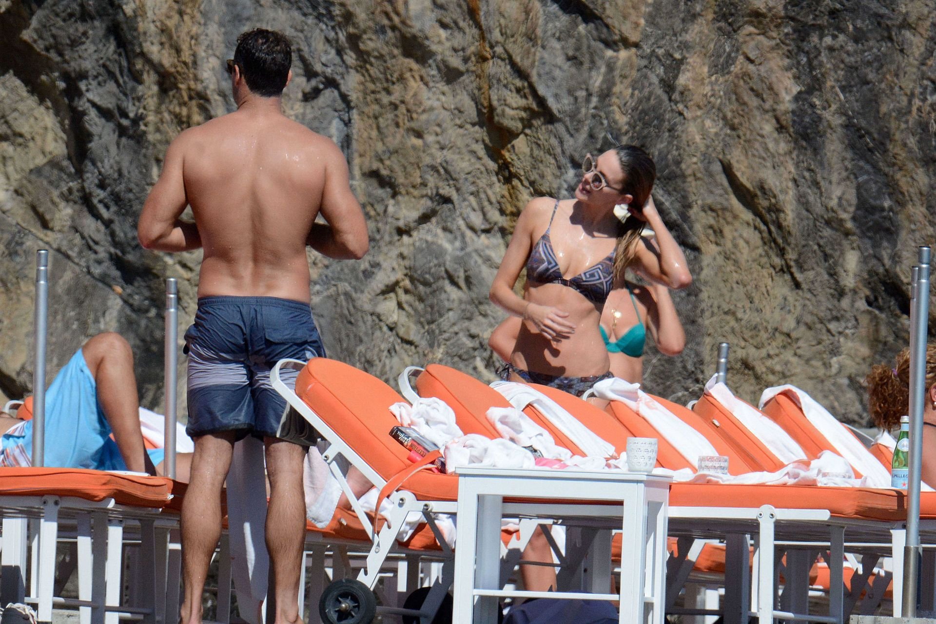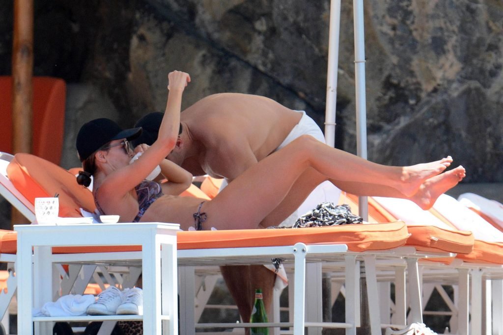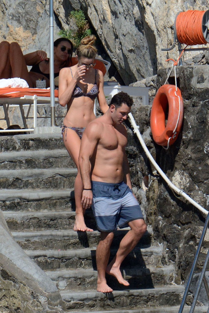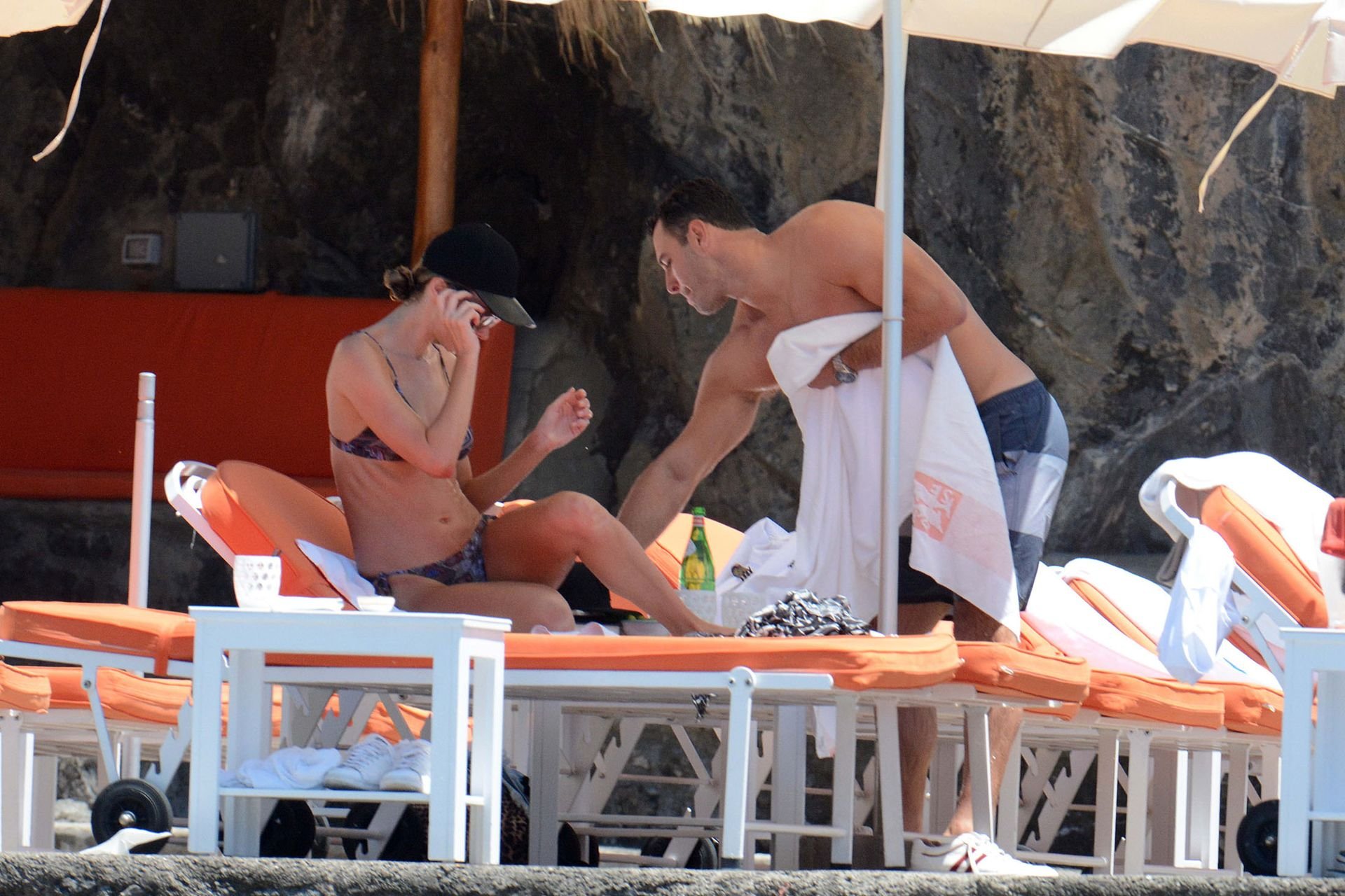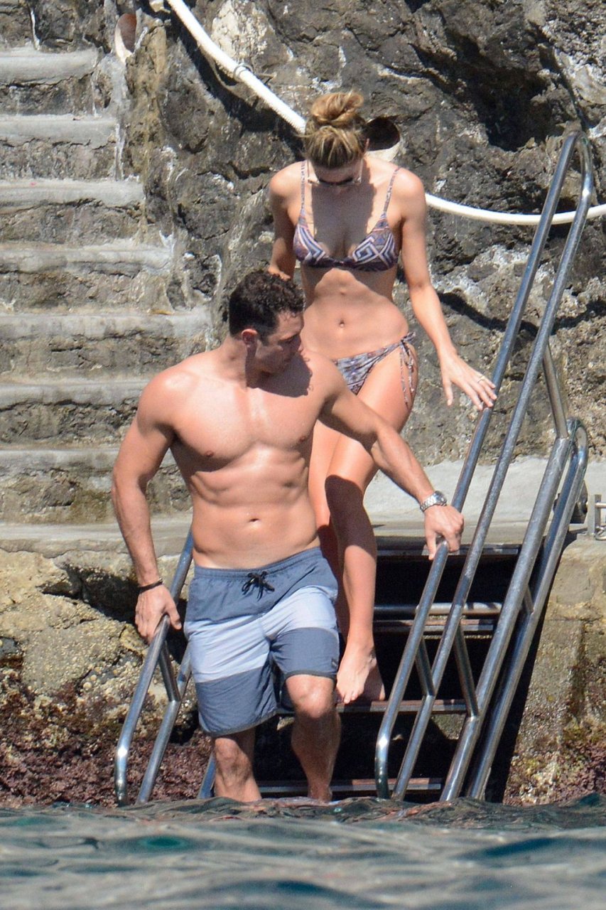 La modelo australiana Jennifer Hawkins y su esposo Jake Wall se acercan y se muestran íntimos durante sus vacaciones disfrutando de su tiempo mientras absorben el sol en Positano, Italia, 20/06/2016.