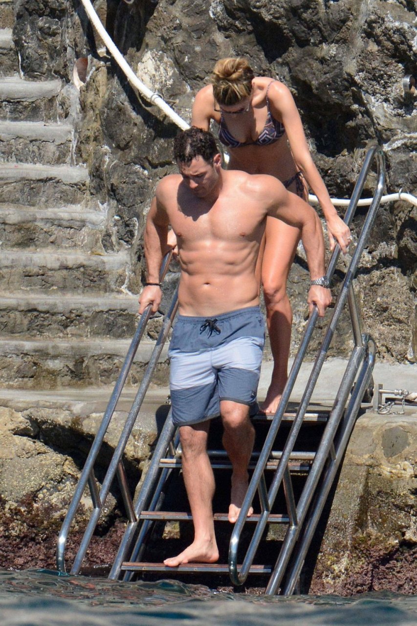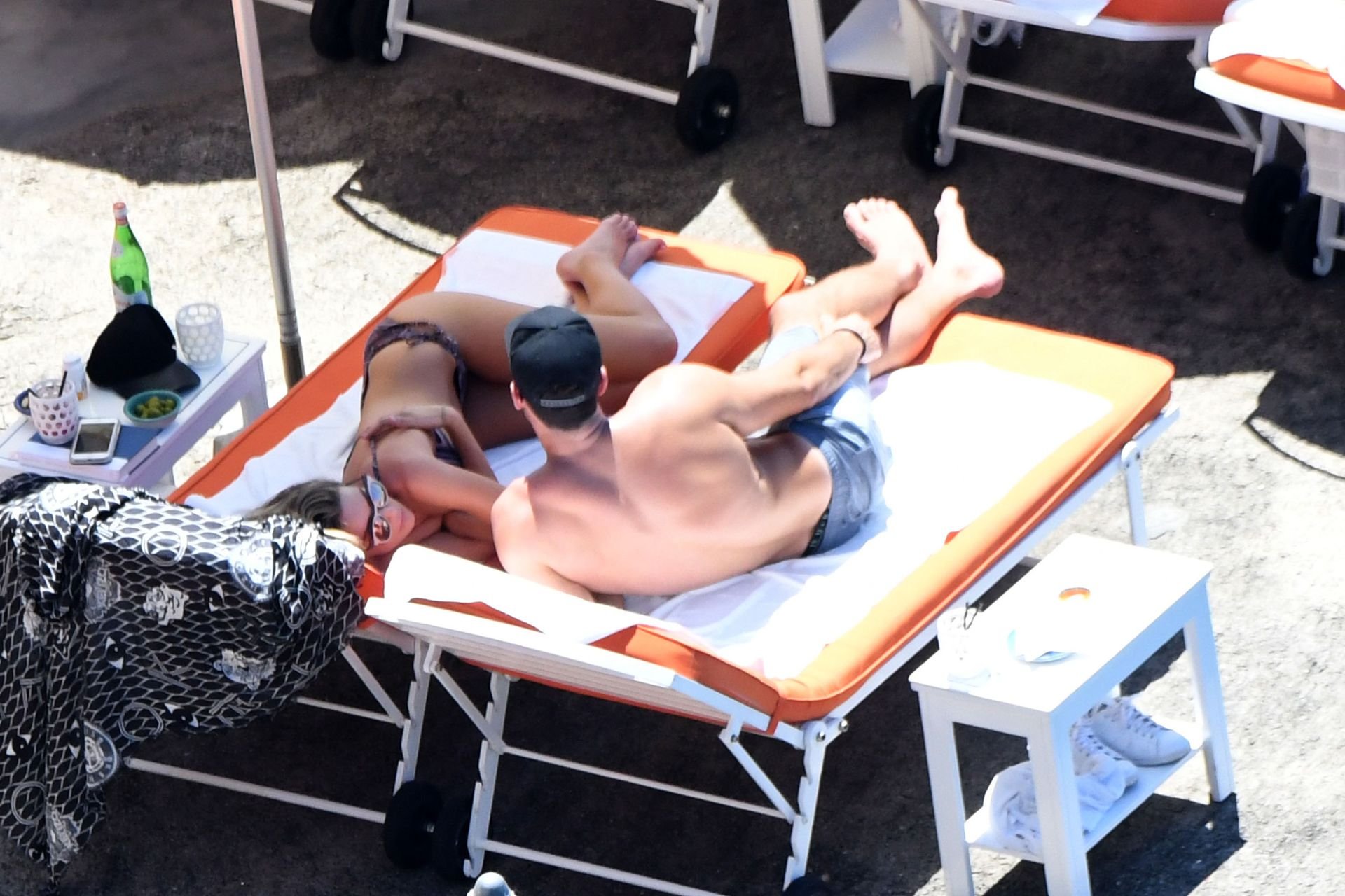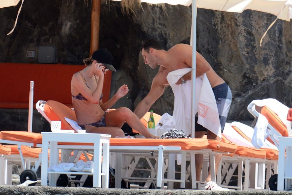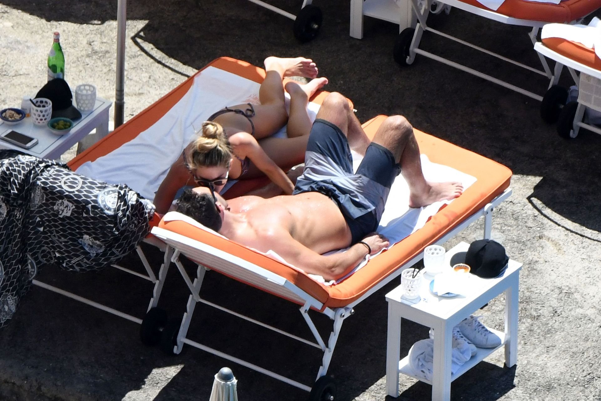 La modelo australiana Jennifer Hawkins y su esposo Jake Wall se acercan y se muestran íntimos durante sus vacaciones disfrutando de su tiempo mientras absorben el sol en Positano, Italia, 20/06/2016.