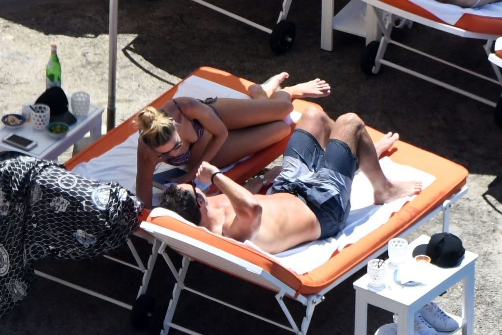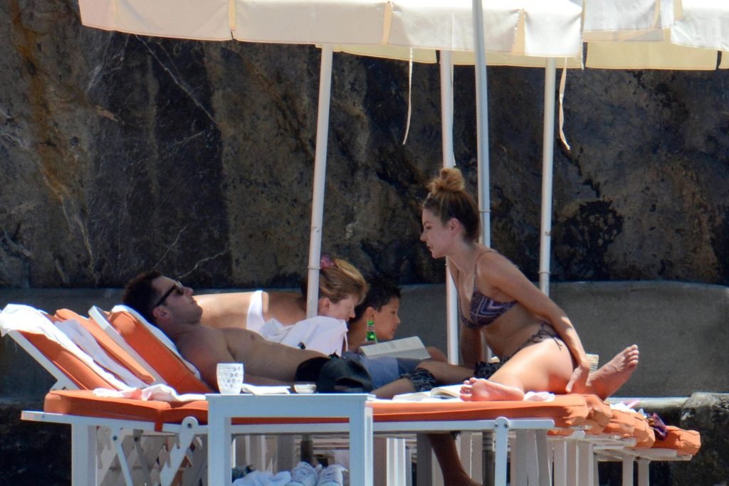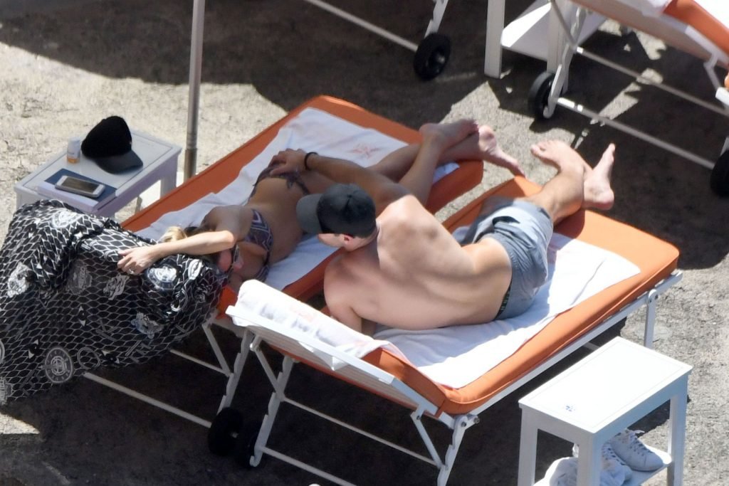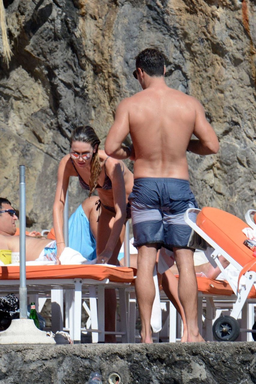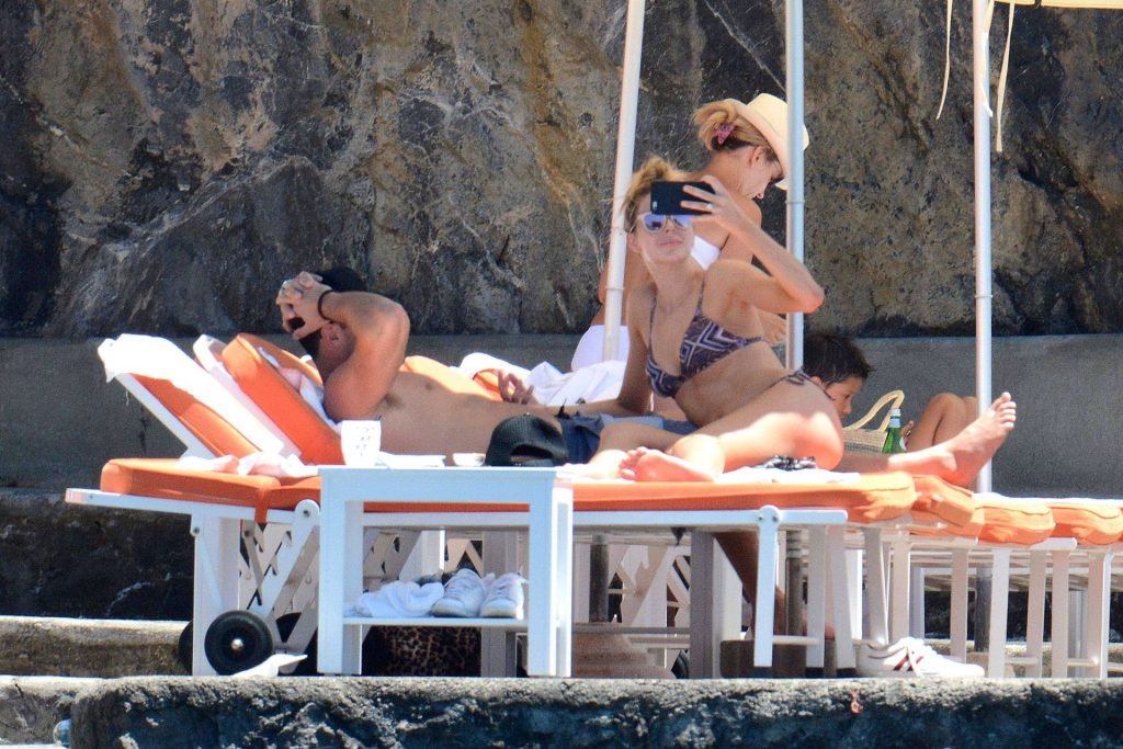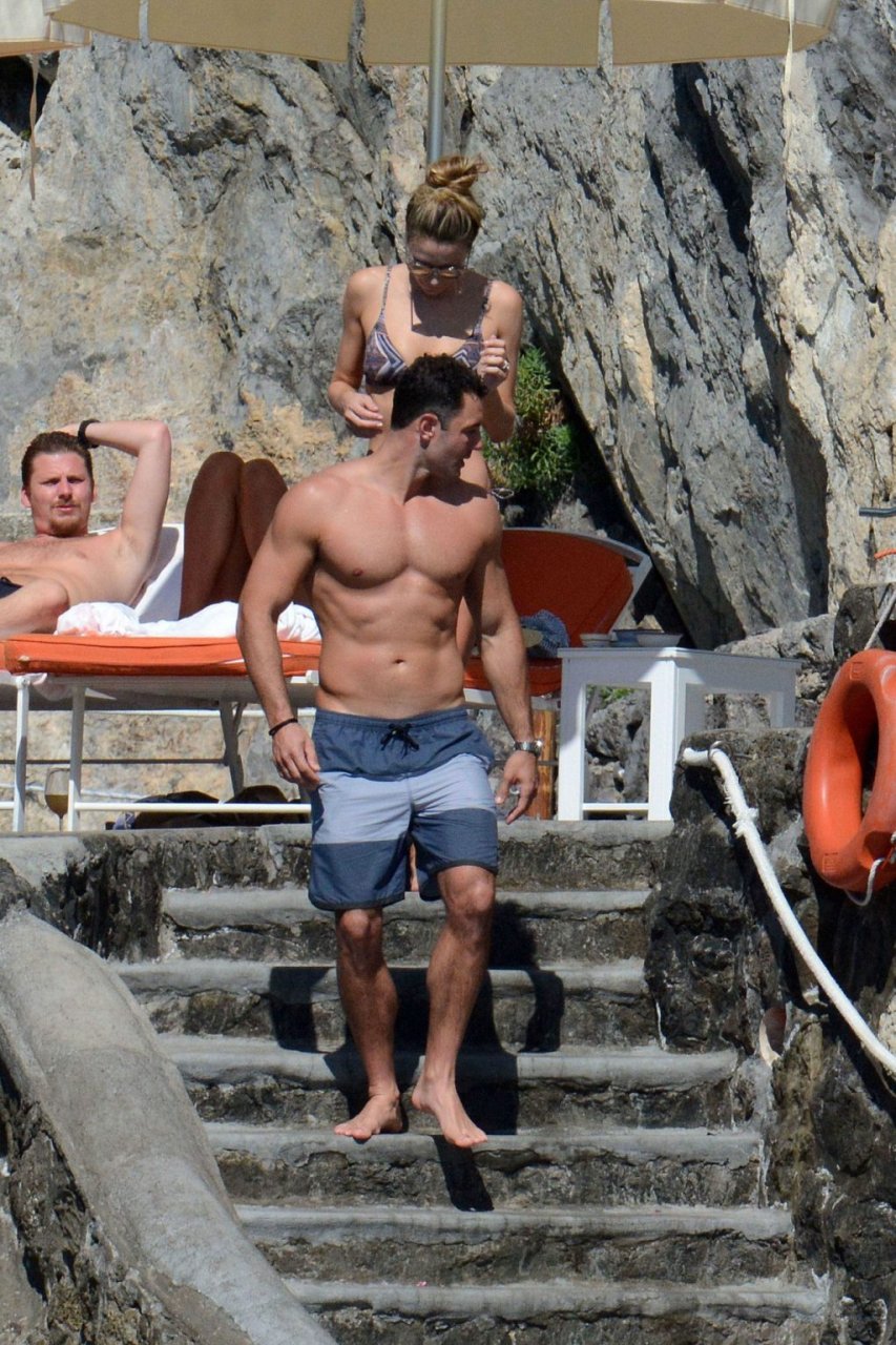 La modelo australiana Jennifer Hawkins y su esposo Jake Wall se acercan y se muestran íntimos durante sus vacaciones disfrutando de su tiempo mientras absorben el sol en Positano, Italia, 20/06/2016.