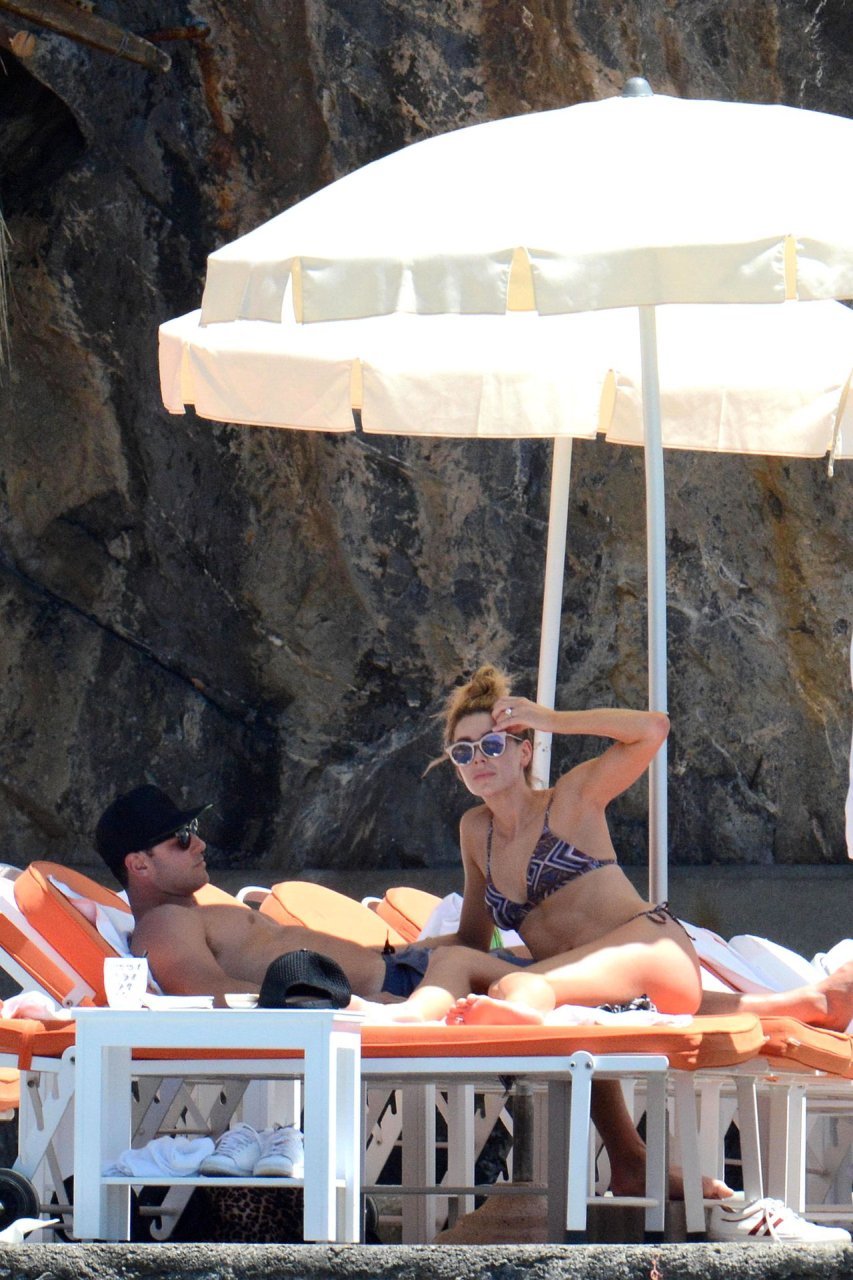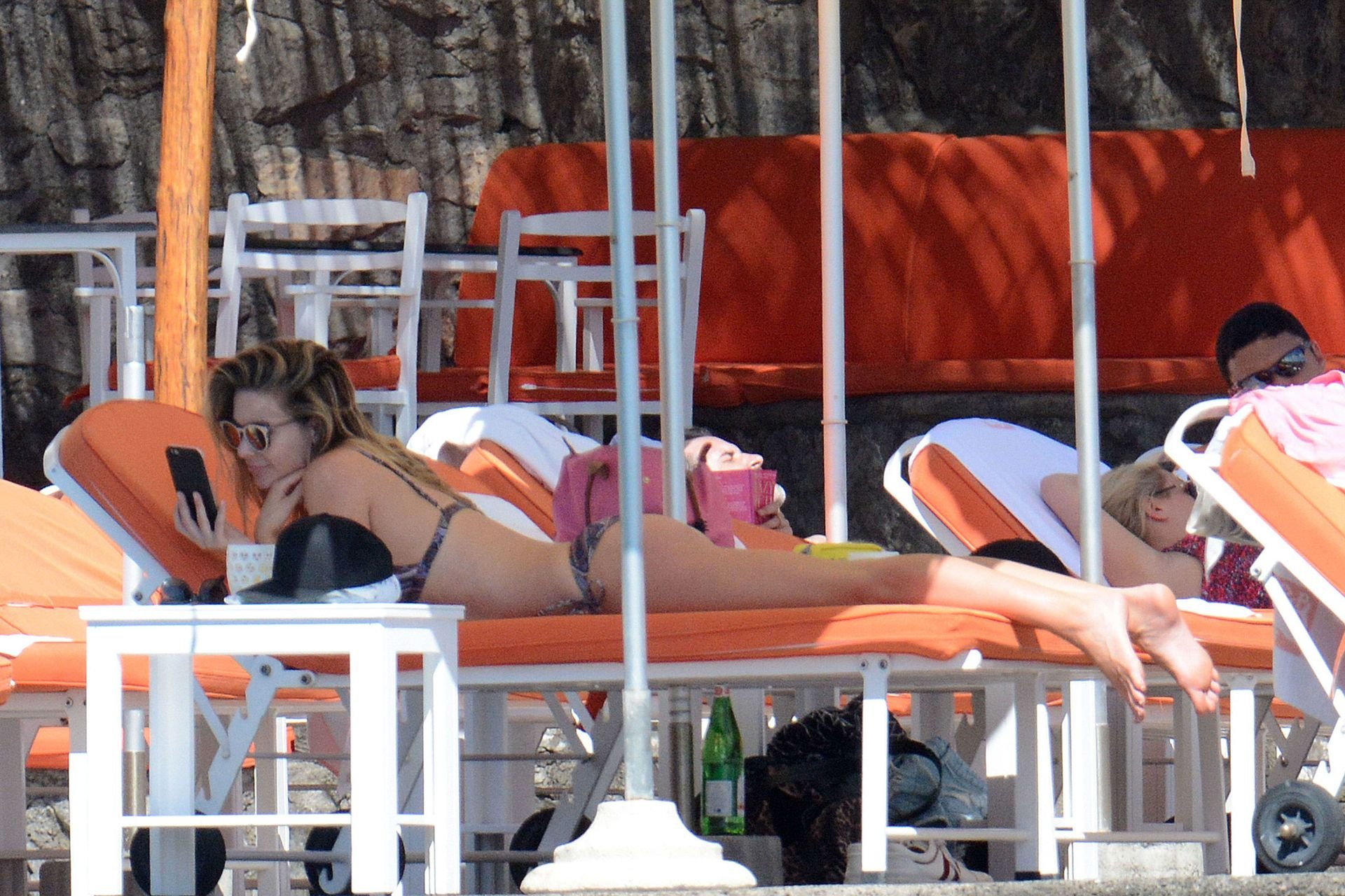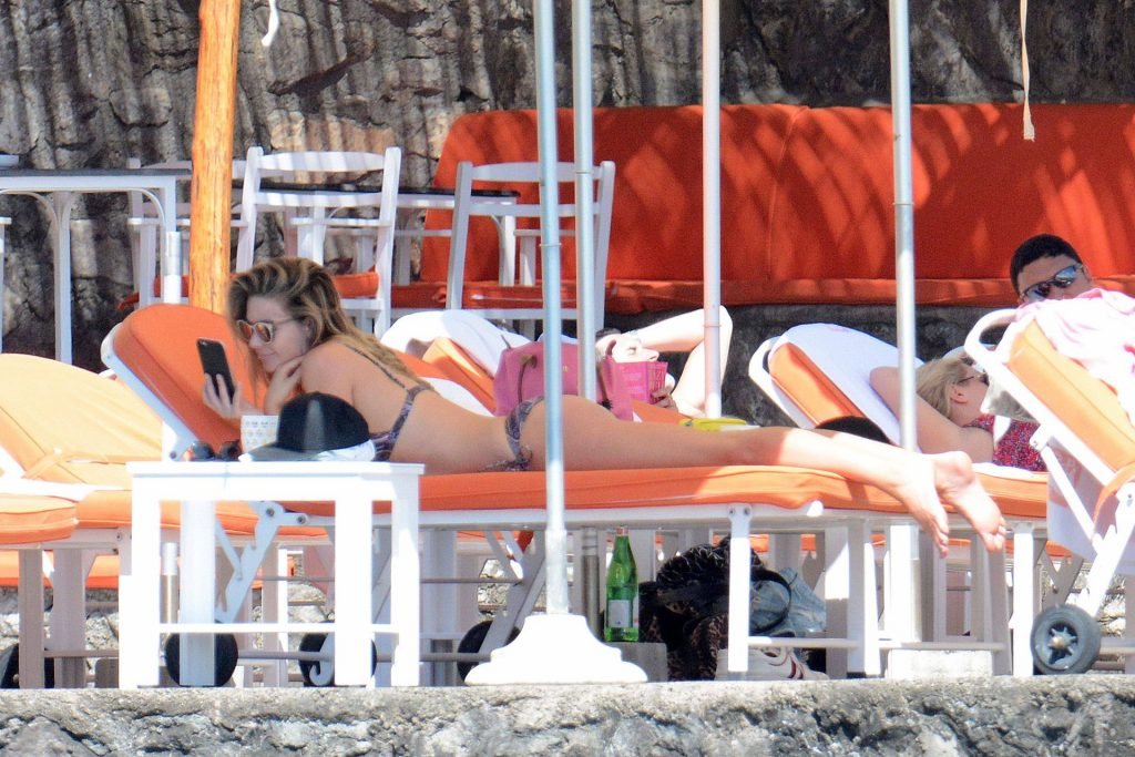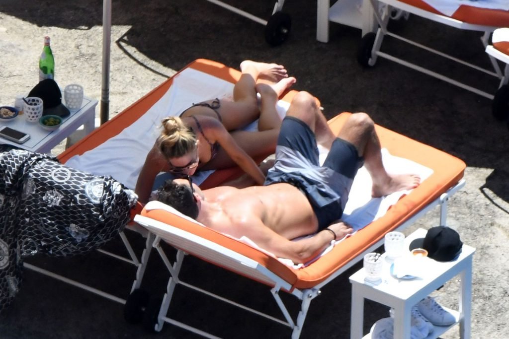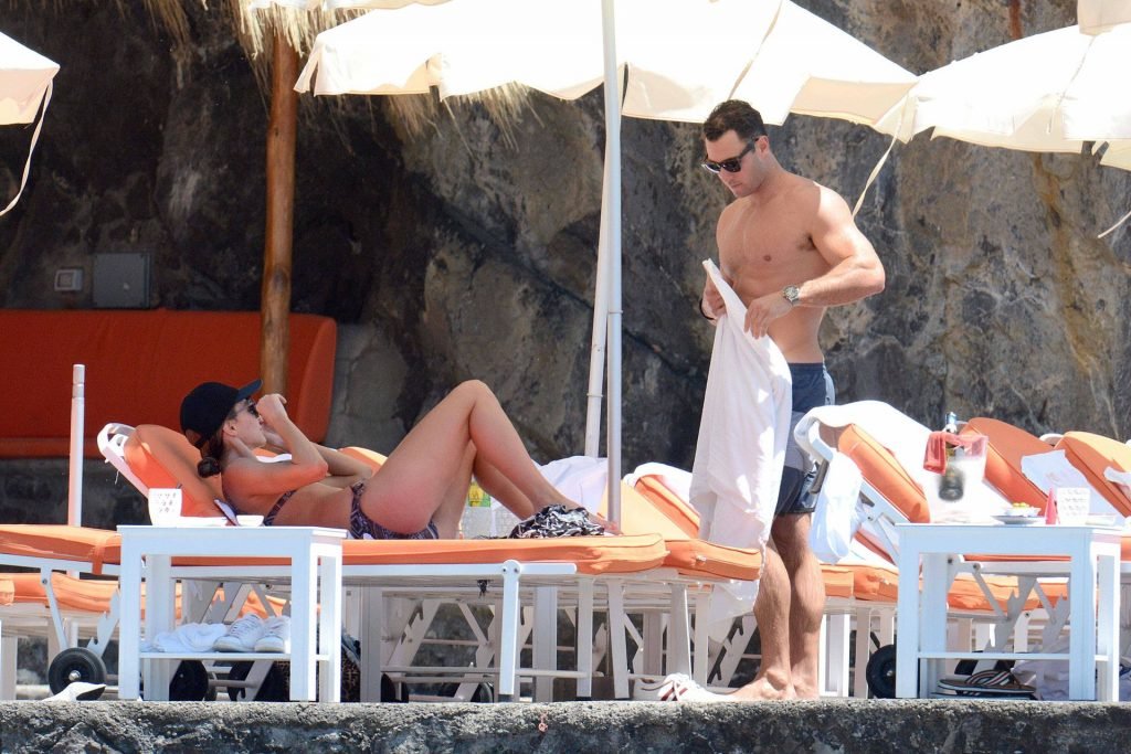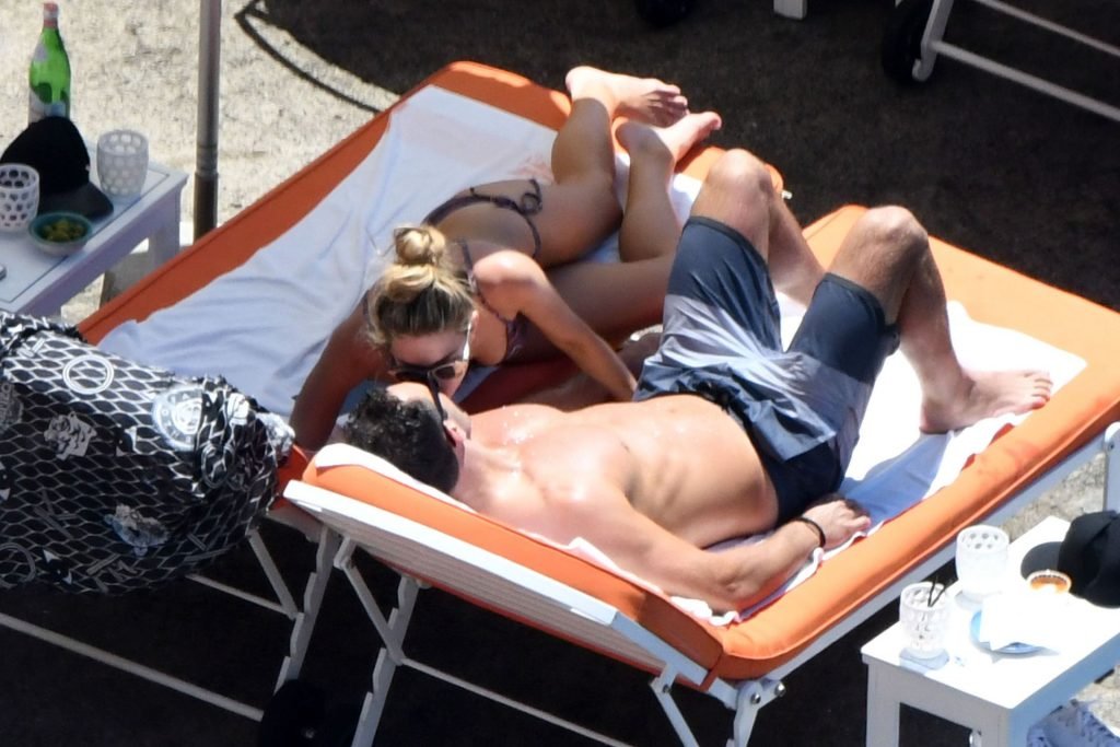 La modelo australiana Jennifer Hawkins y su esposo Jake Wall se acercan y se muestran íntimos durante sus vacaciones disfrutando de su tiempo mientras absorben el sol en Positano, Italia, 20/06/2016.