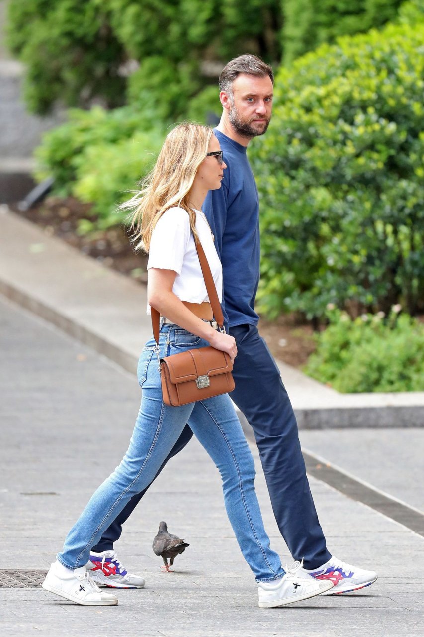 Jennifer llevaba una sudadera que compró en la tienda de regalos mientras Cooke esperaba en la fila para comprar entradas. La actriz de 29 años completó su look con jeans y zapatillas blancas.
