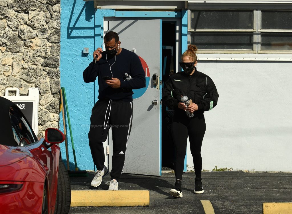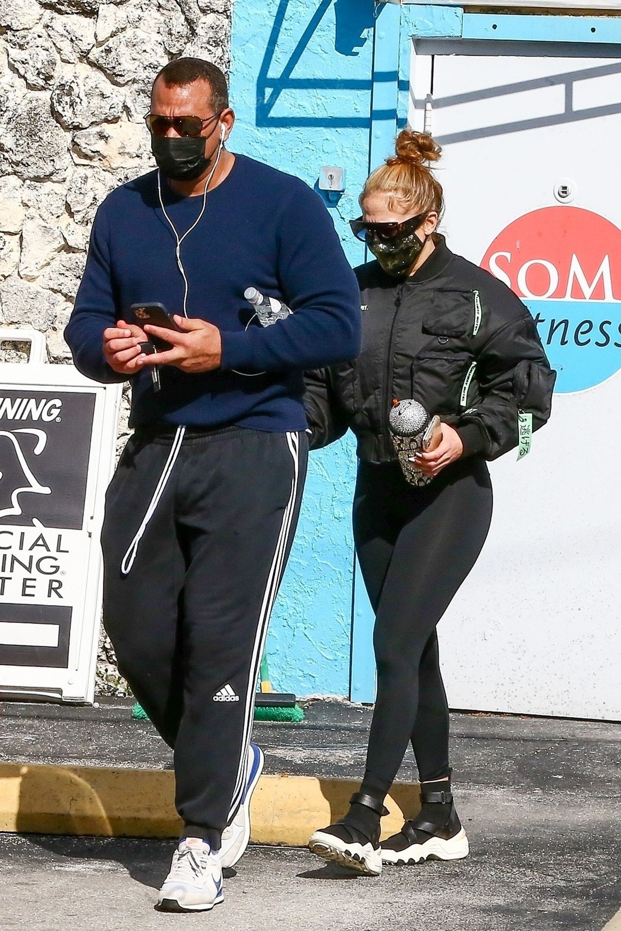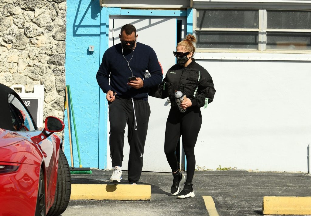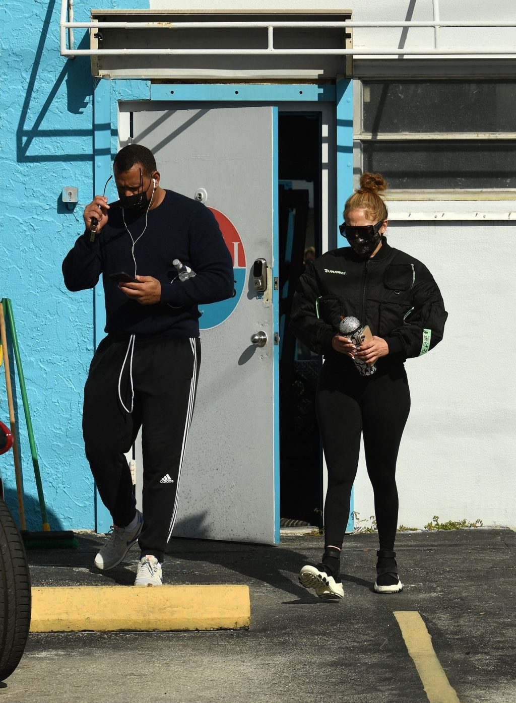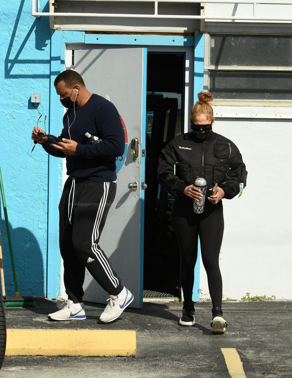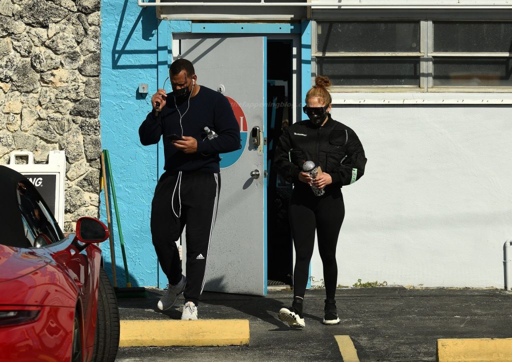 Jennifer Lopez y Alex Rodriguez se mantienen en forma. La pareja sale del gimnasio después de hacer su entrenamiento matutino tras la Navidad – Coral Gables, 26/12/2020.