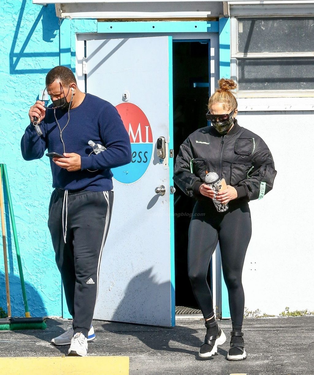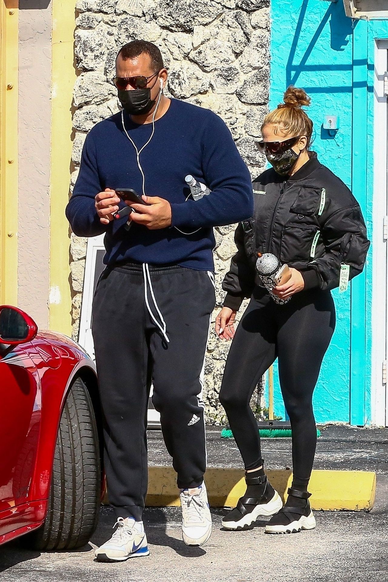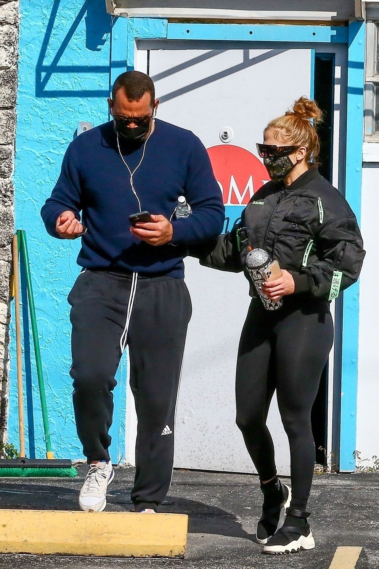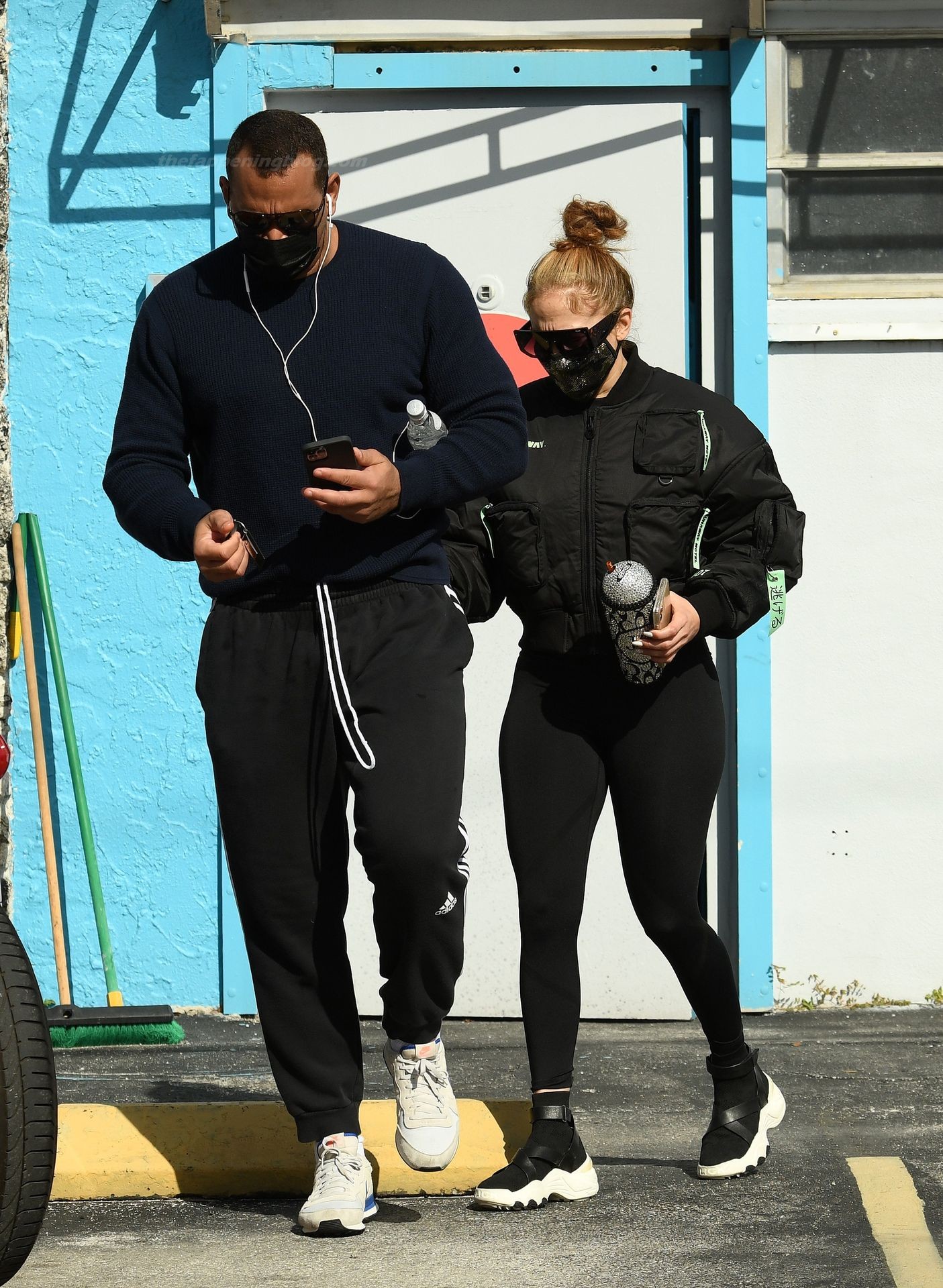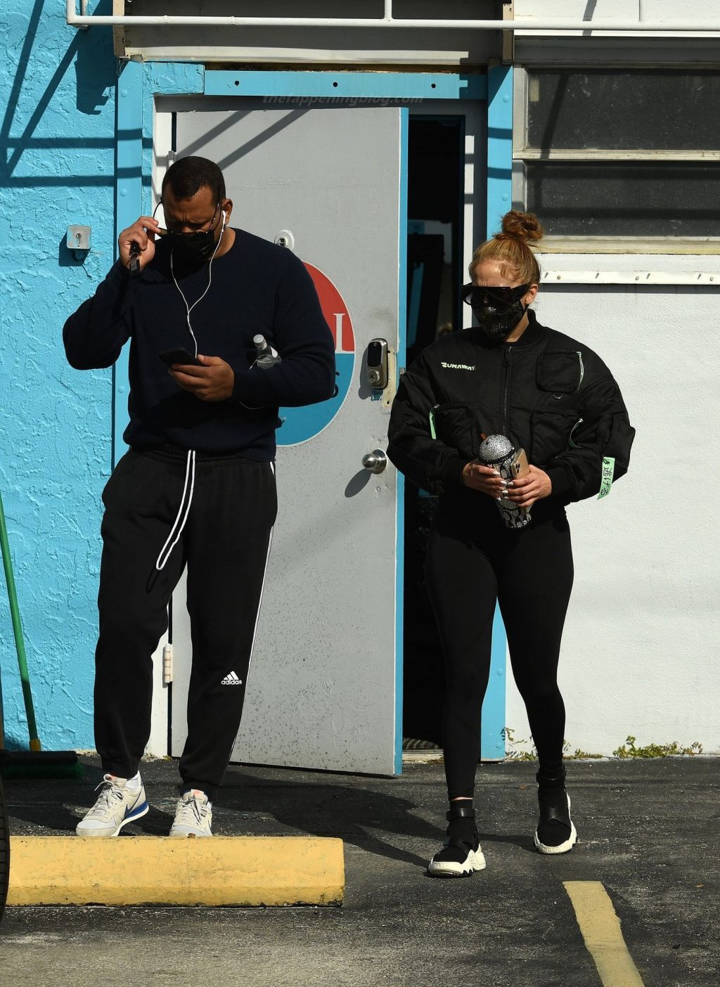 Jennifer Lopez y Alex Rodriguez se mantienen en forma. La pareja sale del gimnasio después de hacer su entrenamiento matutino tras la Navidad – Coral Gables, 26/12/2020.