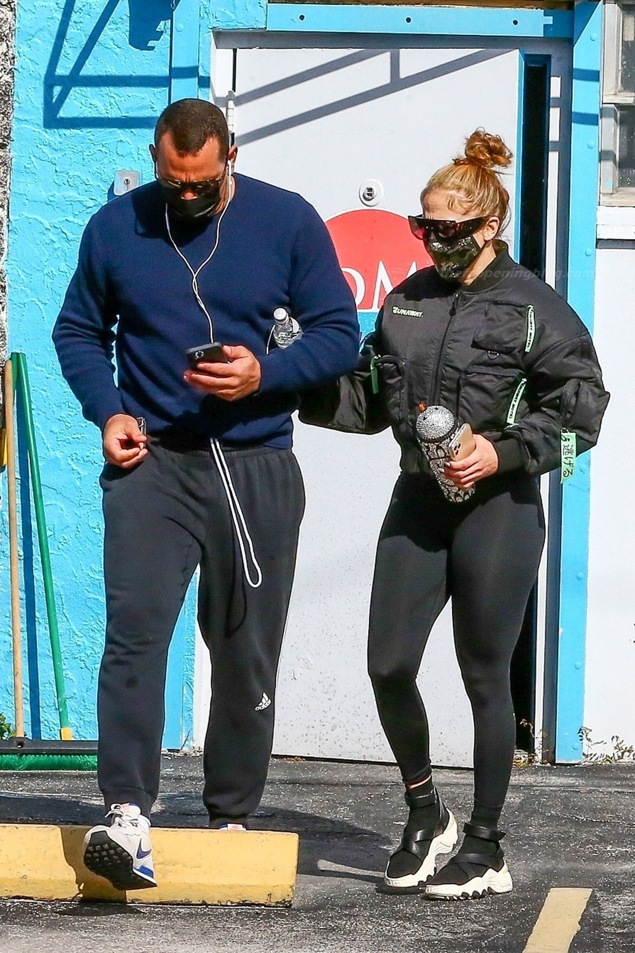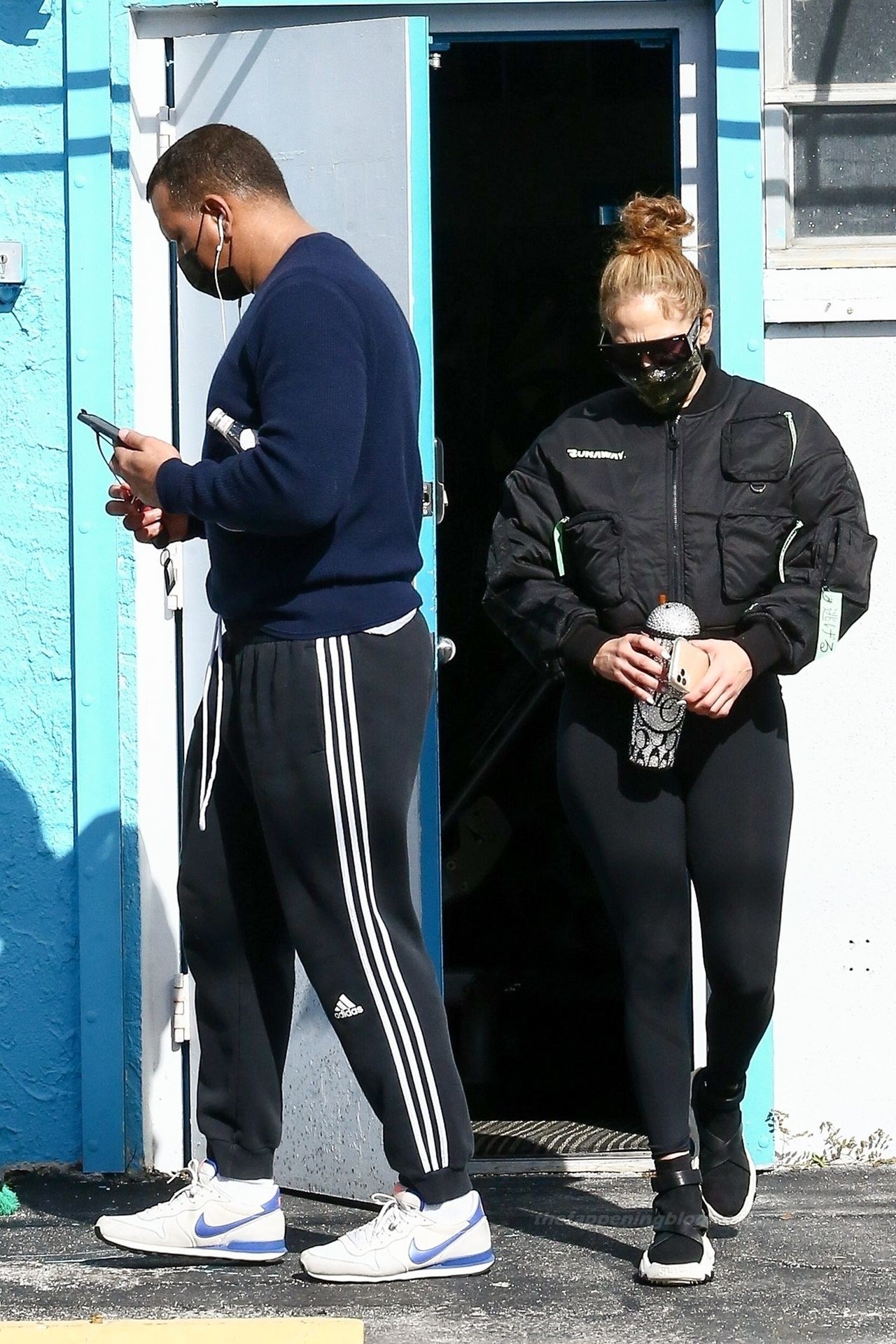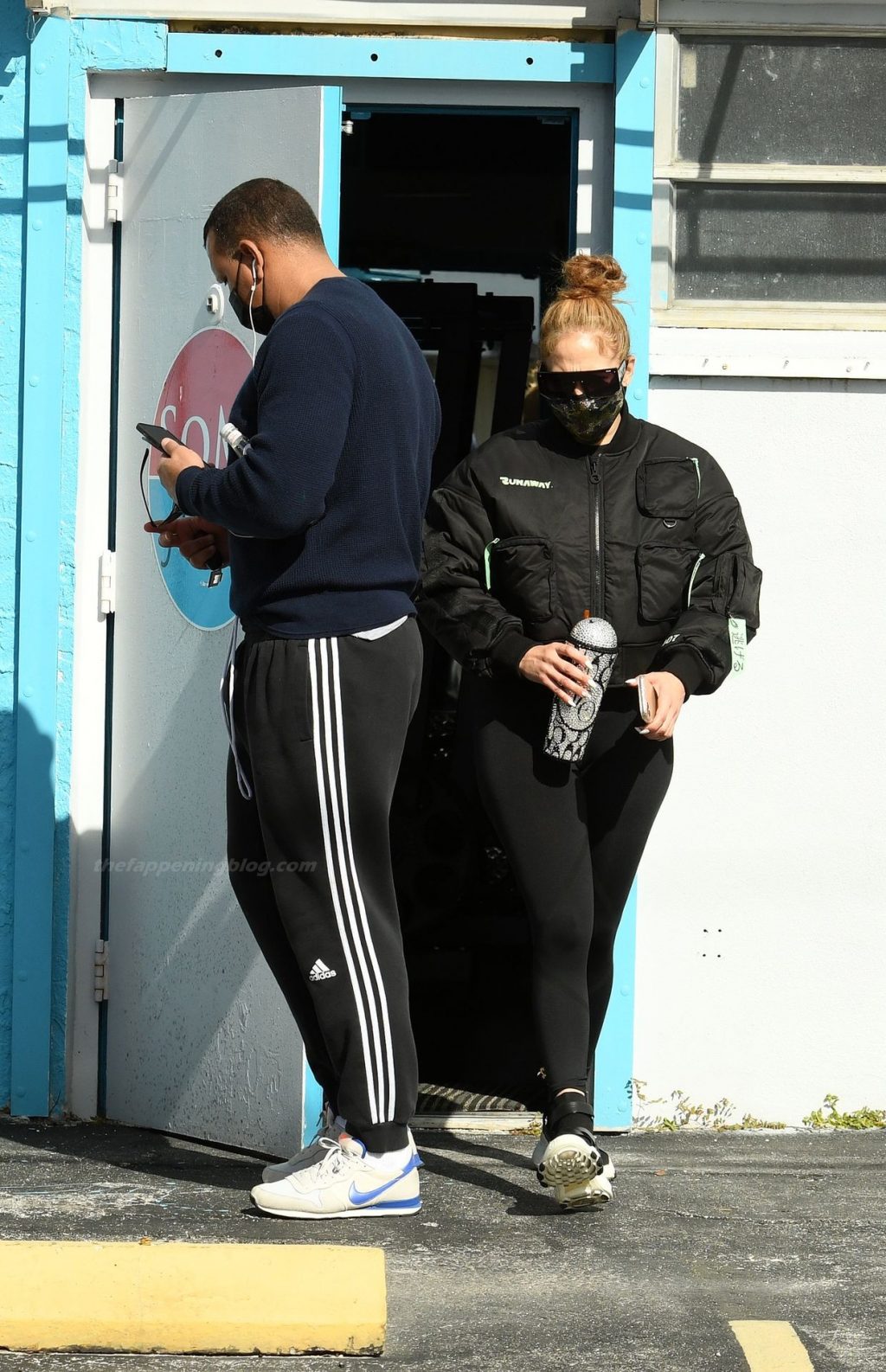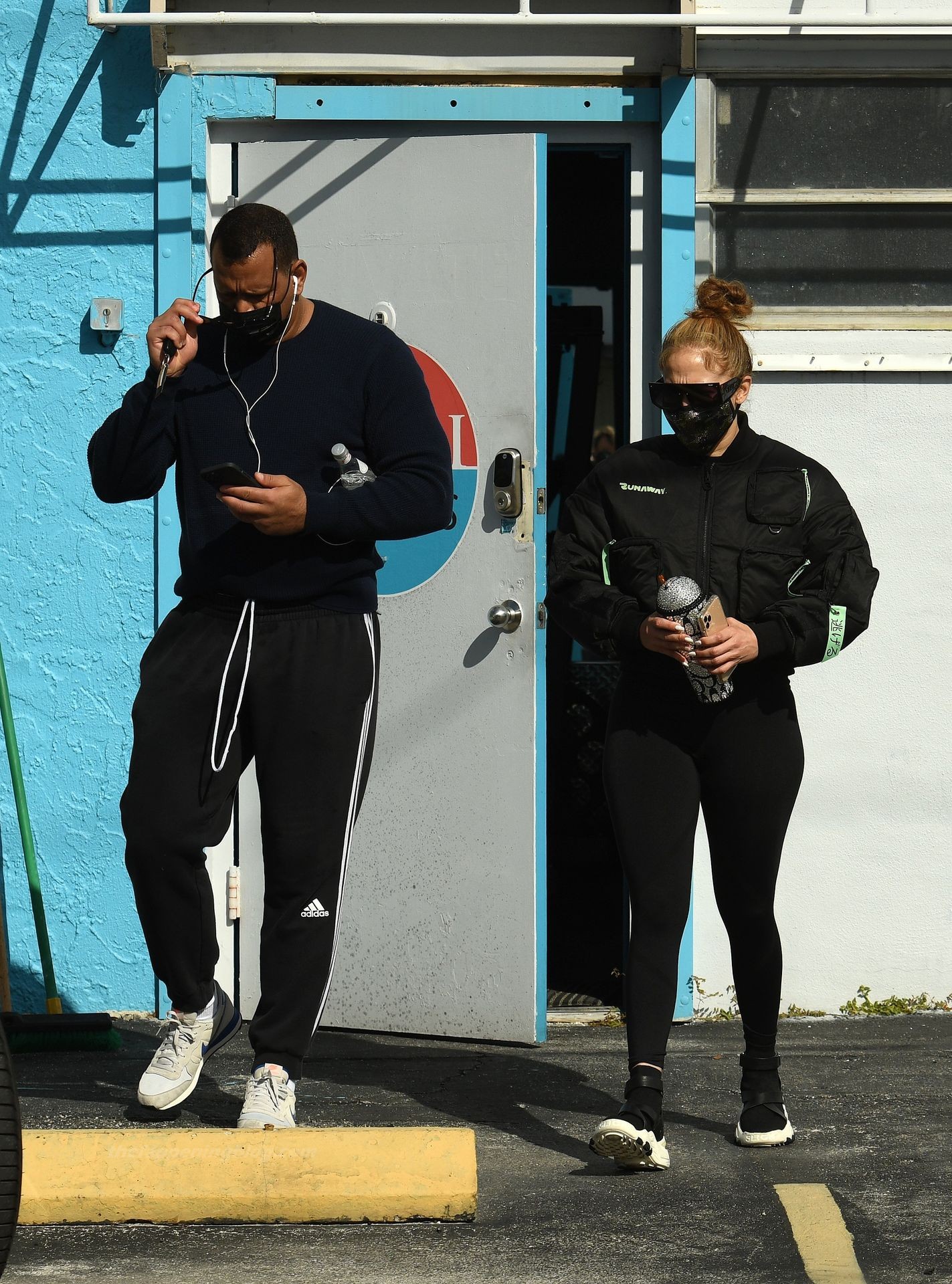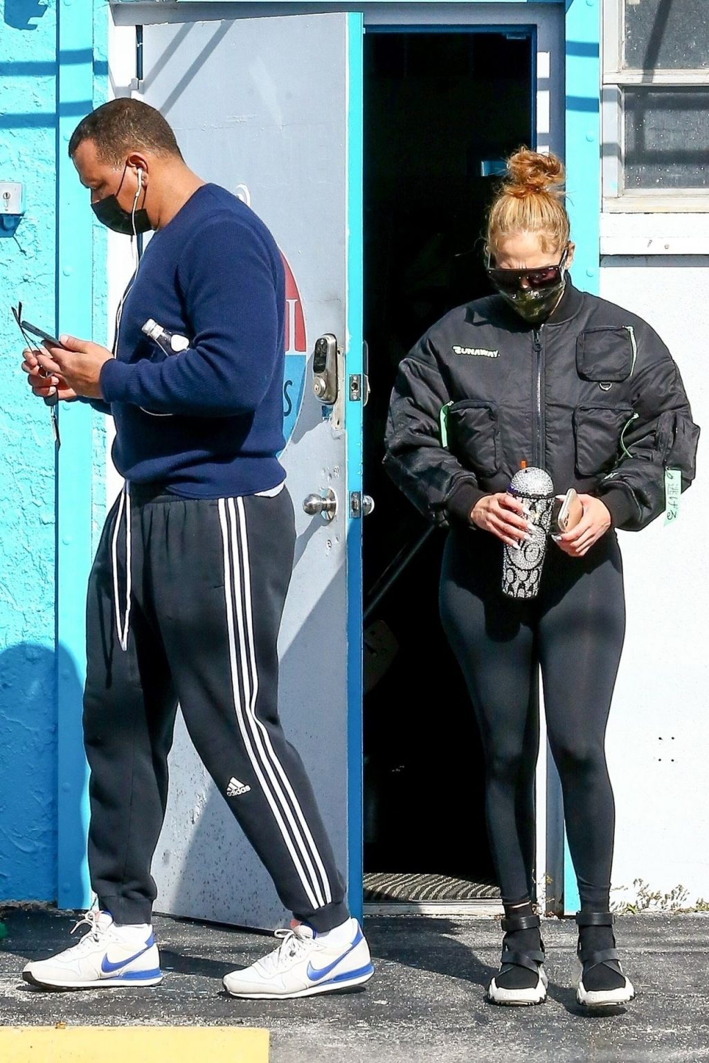 Jennifer Lopez y Alex Rodriguez se mantienen en forma. La pareja sale del gimnasio después de hacer su entrenamiento matutino tras la Navidad – Coral Gables, 26/12/2020.