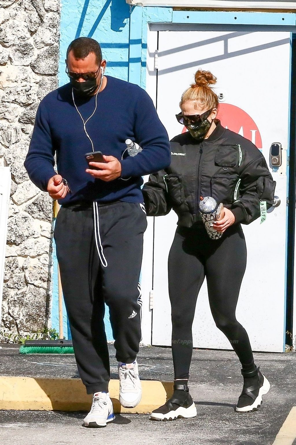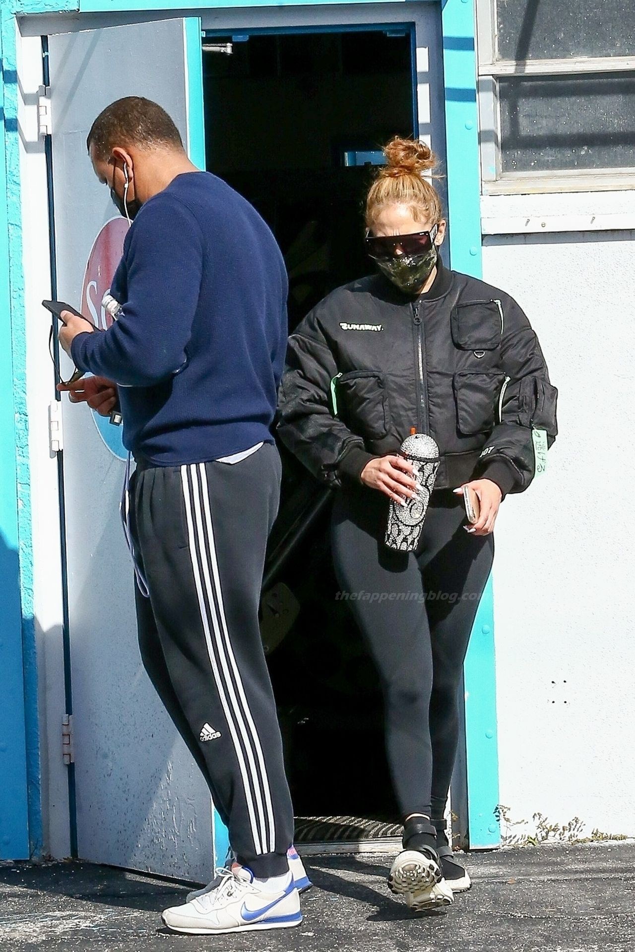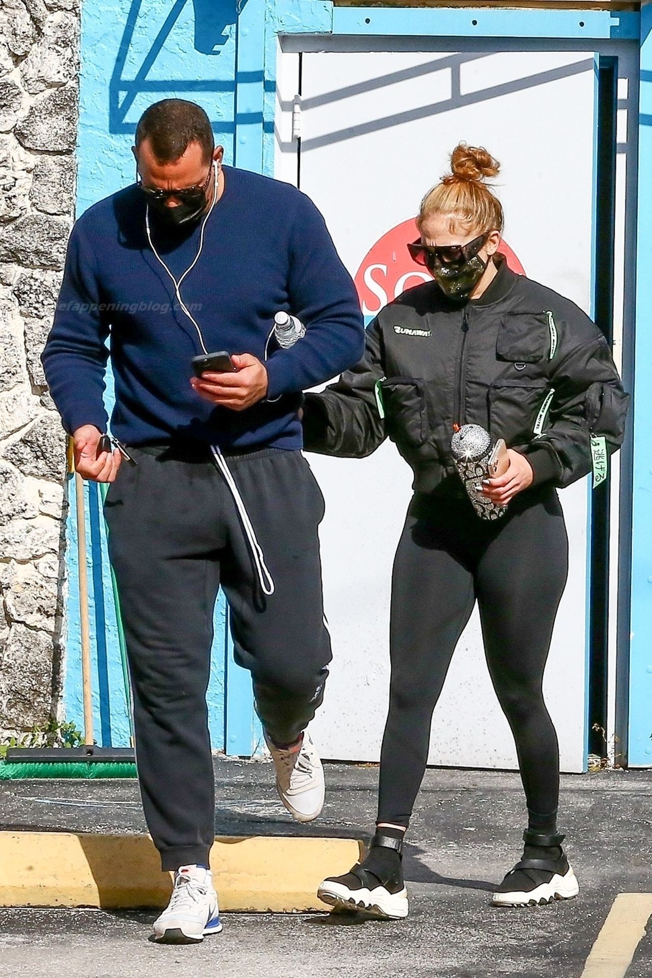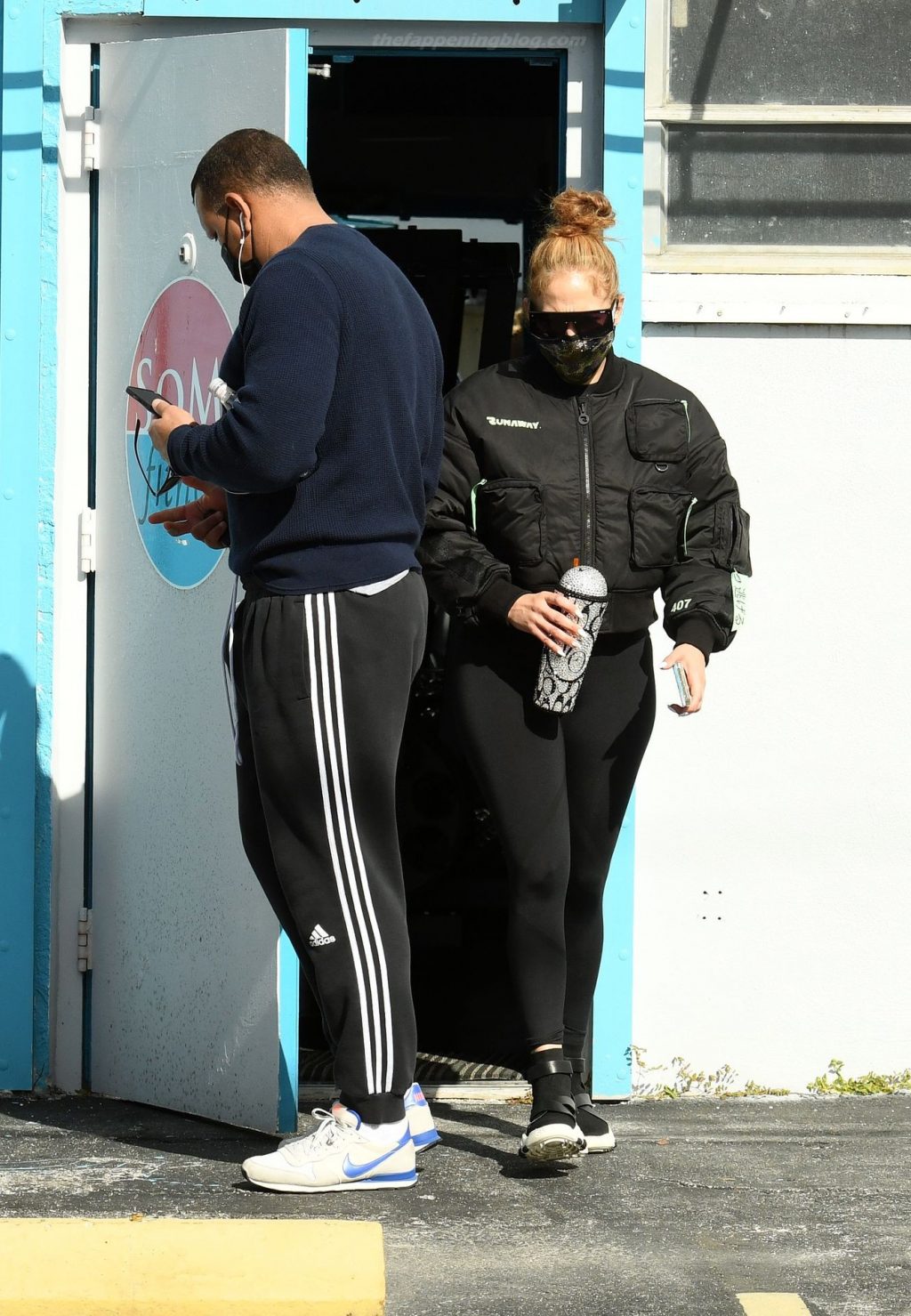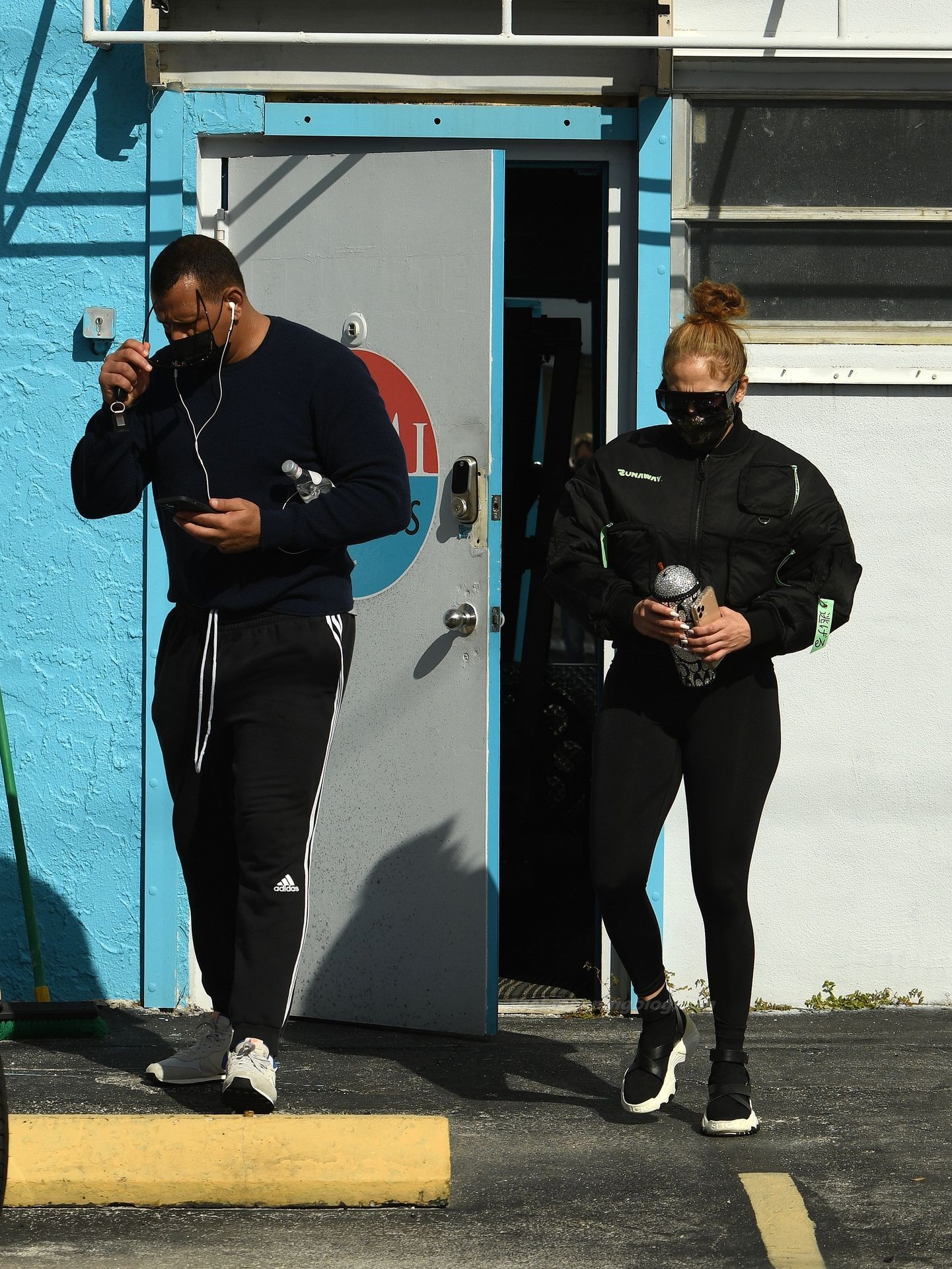 Jennifer Lopez y Alex Rodriguez se mantienen en forma. La pareja sale del gimnasio después de hacer su entrenamiento matutino tras la Navidad – Coral Gables, 26/12/2020.
